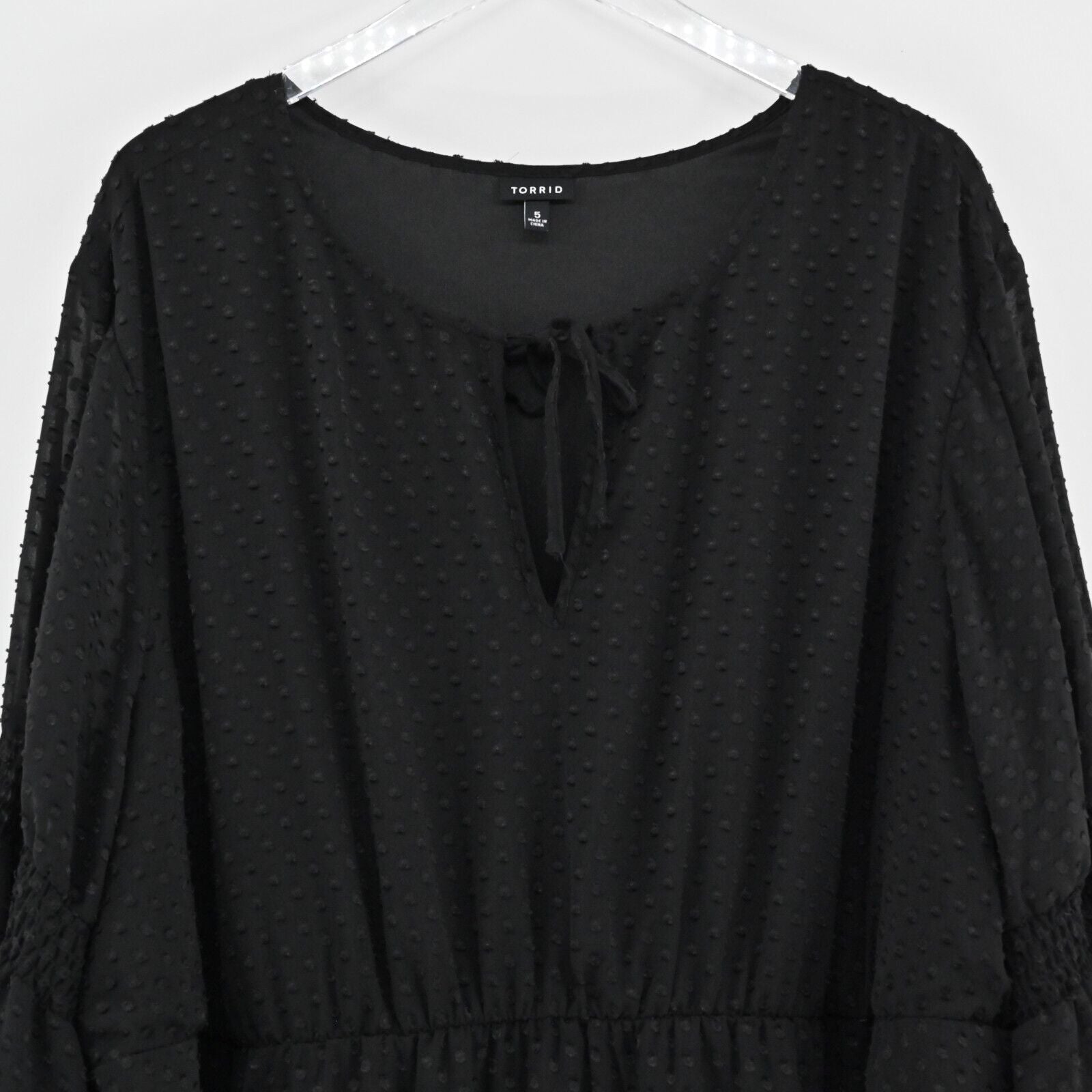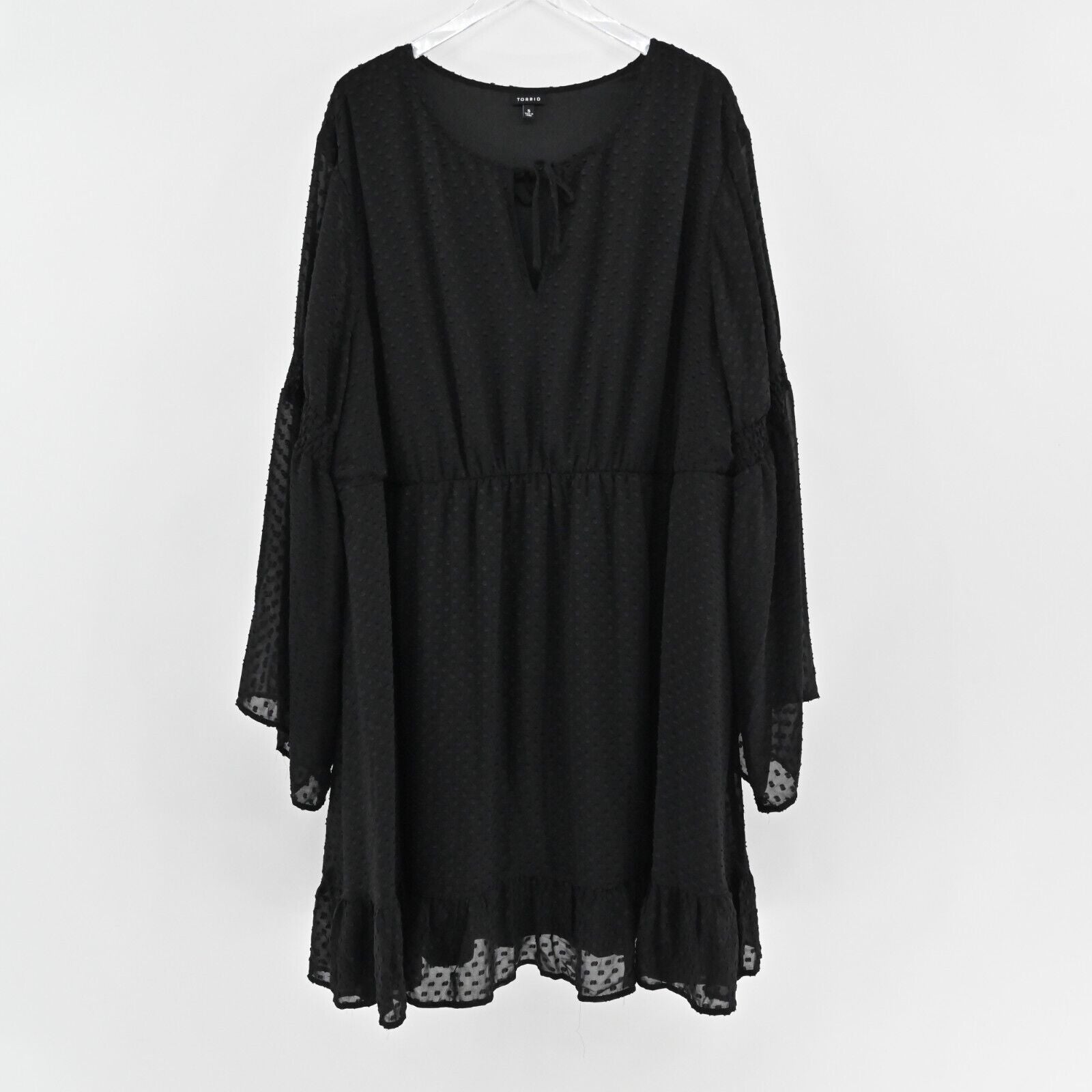TORRID Dress Size 5X Black Bell Sleeve Swiss Dot Chiffon Skater Vamp Whimsgoth