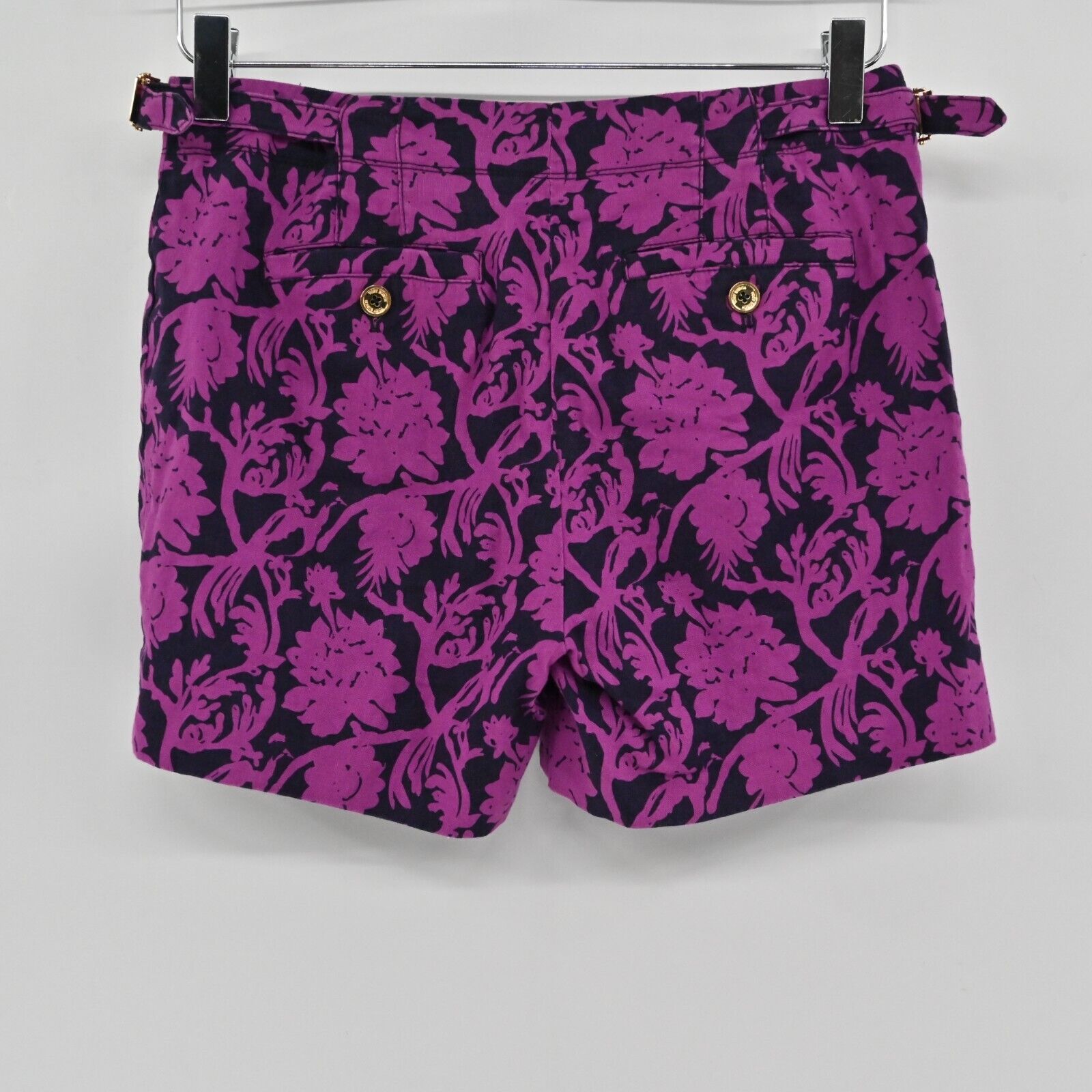 TORY BURCH Shorts Womens Size 0 Cotton Linen Blend Purple Navy Floral Print