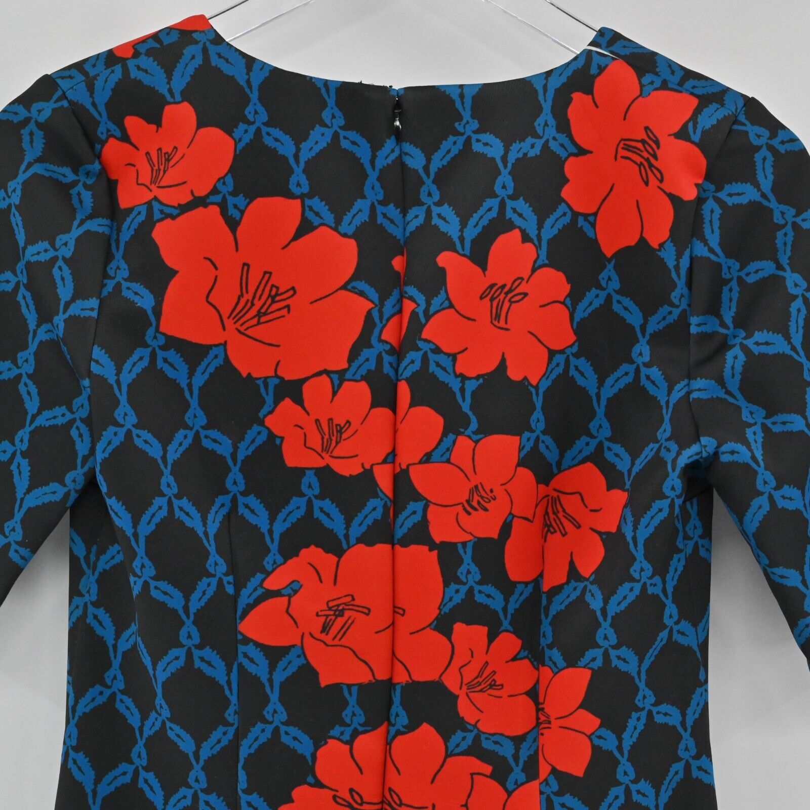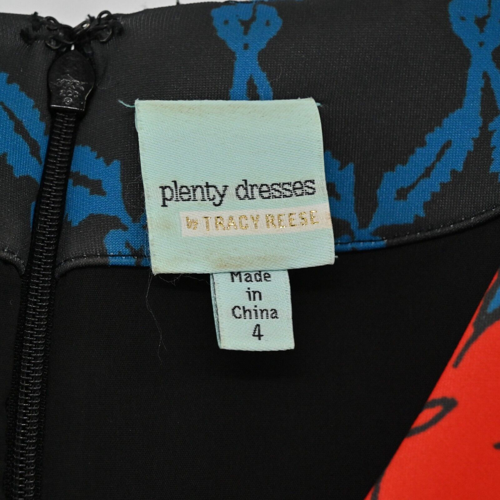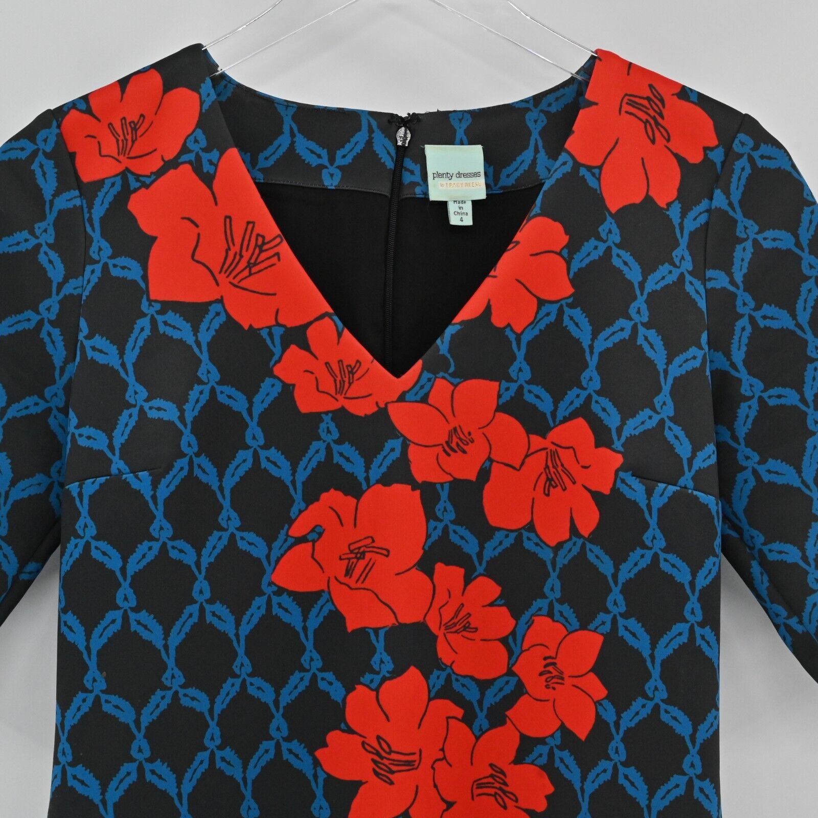 PLENTY DRESSES By TRACY REESE Dress Women's Size 4 Juana Floral Multicolor V-Neck Lined Trellis Trim Border Blue Red Navy Flower Fall Spring Vacation Office Work Classic Contemporary