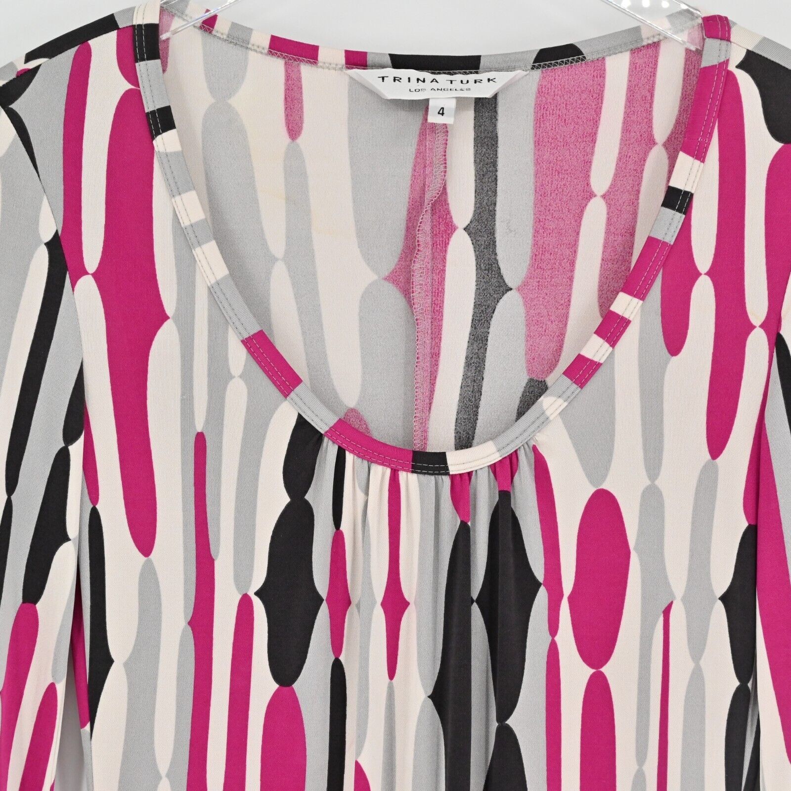TRINA TURK Dress Womens Size 4 Pink Silk Shift Mini Geometric Retro Print USA