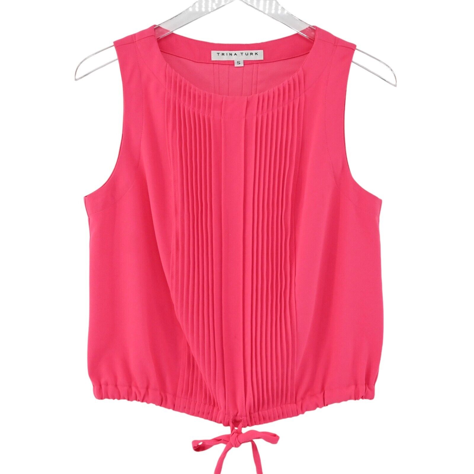 TRINA TURK Los Angeles Top Women's Size Small Pleated Sleeveless Hot Pink Tie Front Tank Solid Chic Classic Vacation Travel Casual BarbieCore Bright Color Resort Cruise Spring Summer Preppy Lightweight