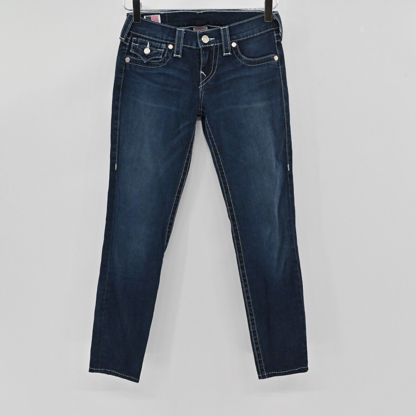 TRUE RELIGION Jeans Women's Size 25 Dark Wash Low Rise Misty Skinny Leg Stretch Zip Fly Button Closure Made In USA Retro 00s Y2K