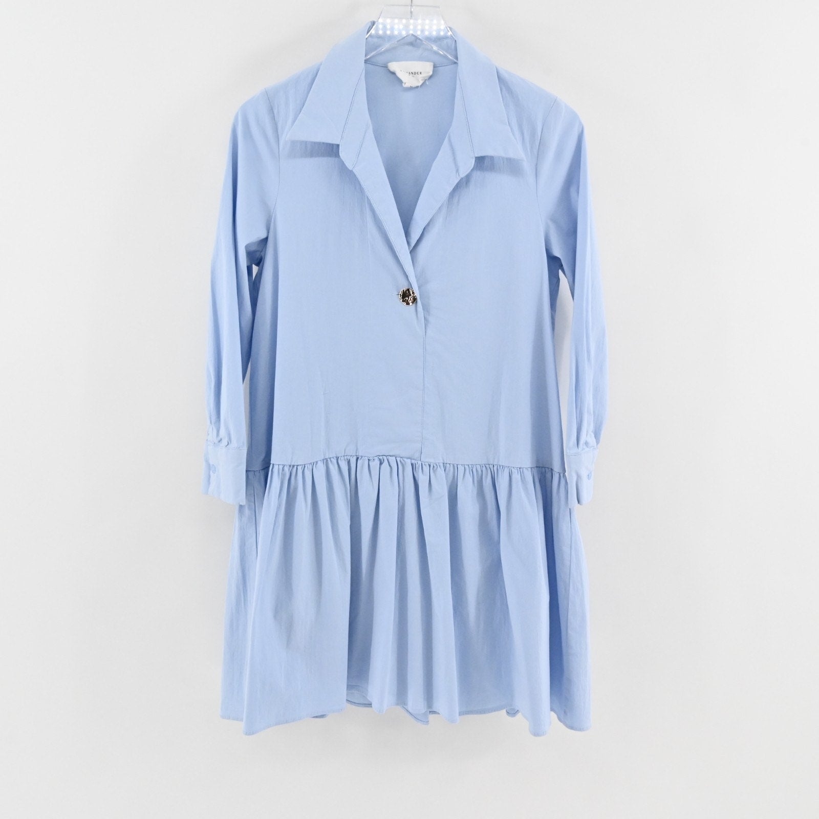 Tuckernuck Cleia Dress Size M Drop Waist Pomander Place Light Blue Swing Collar