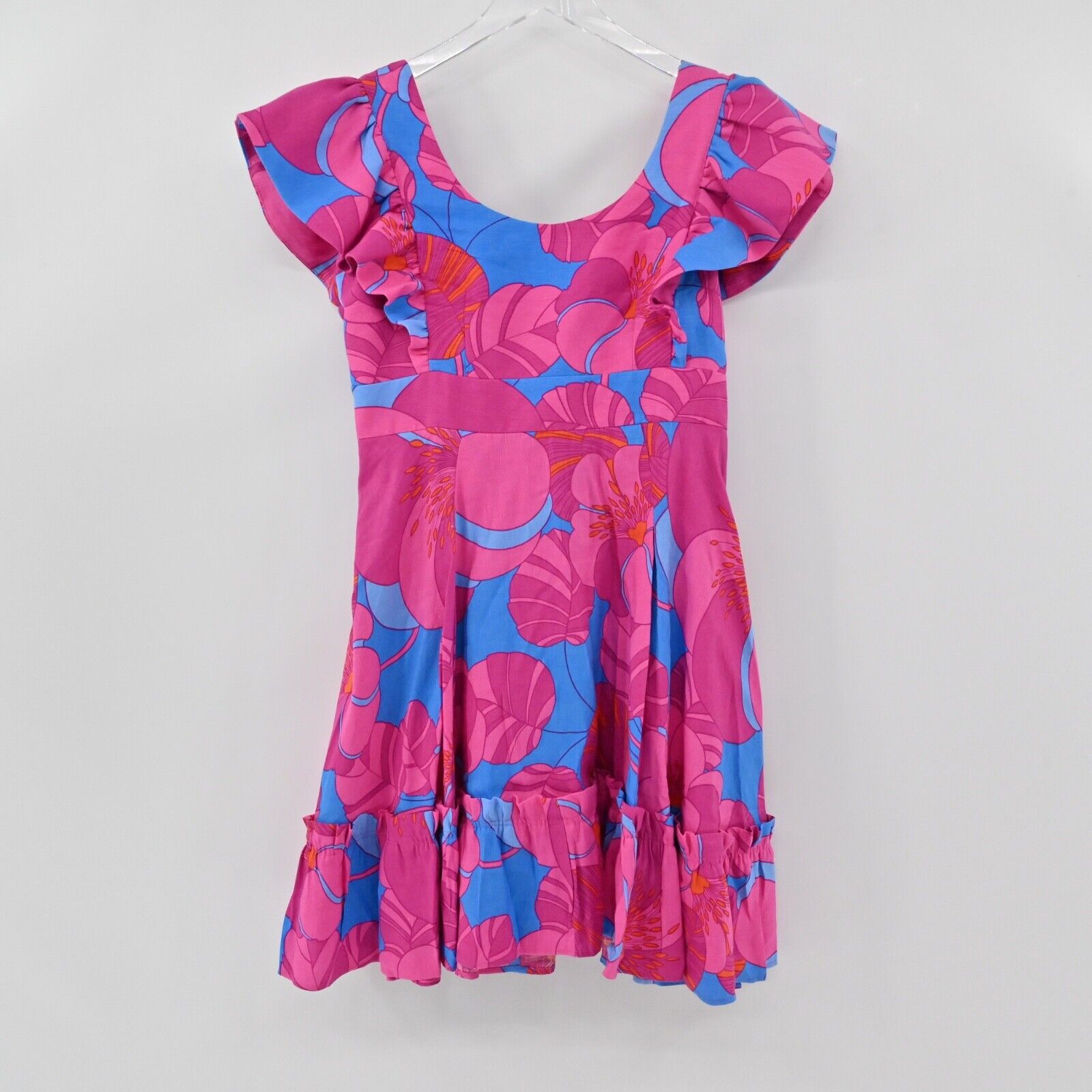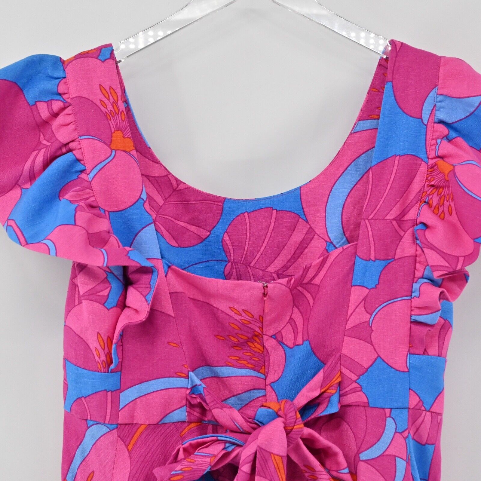 TUCKERNUCK Dress Womens Size S Pink Wild Azalea Linen Blend Ruffle Edisto Mini