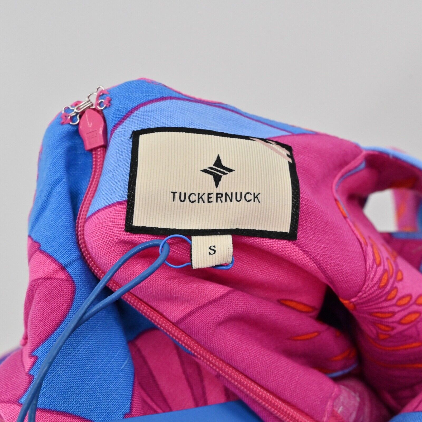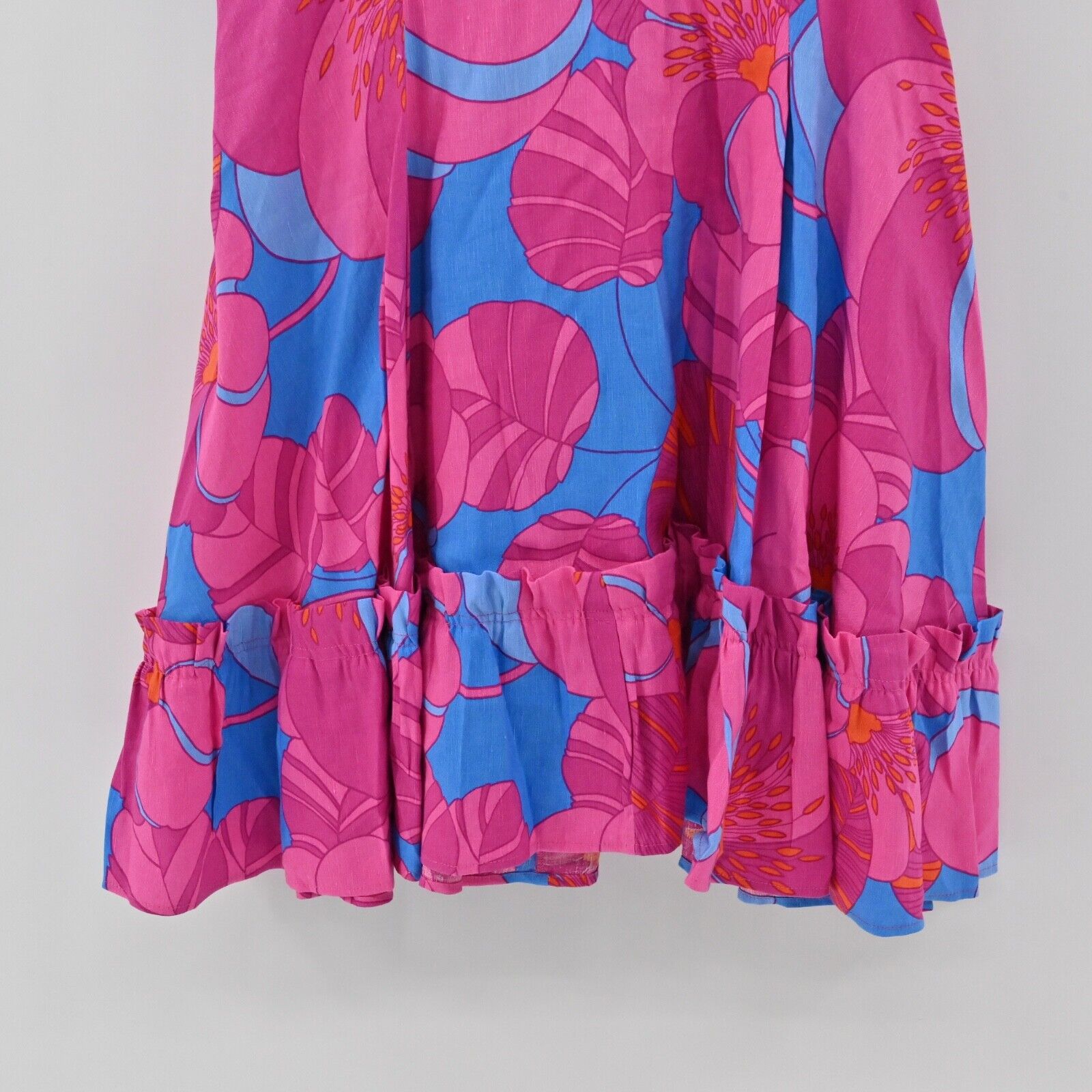 TUCKERNUCK X CAMERAN EUBANKS WIMBERLY Dress Women’s Size Small Pink, Blue, & Orange Wild Azalea Floral Linen Blend Scoop Neck Square Back Empire Waist Flutter Ruffle Short Sleeve Ruffle Hem Edisto Mini Concealed Back Zipper Hook & Eye Closure Back Tie NWT Retro Preppy Cottagecore Bohemian Boho Beach Vacation Garden Party