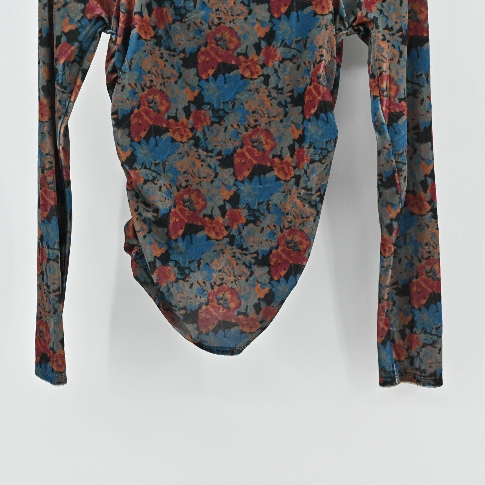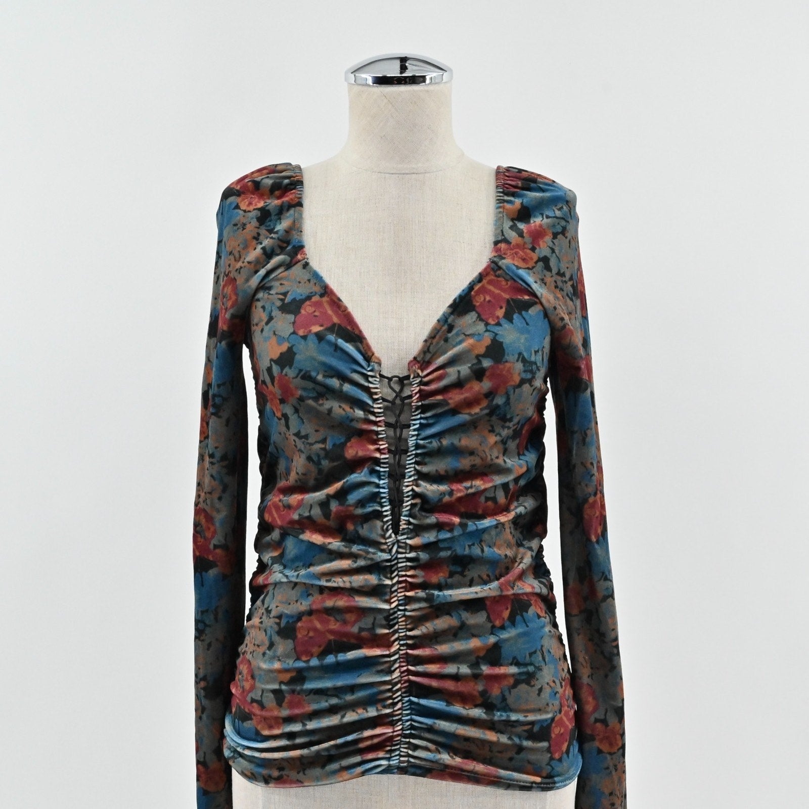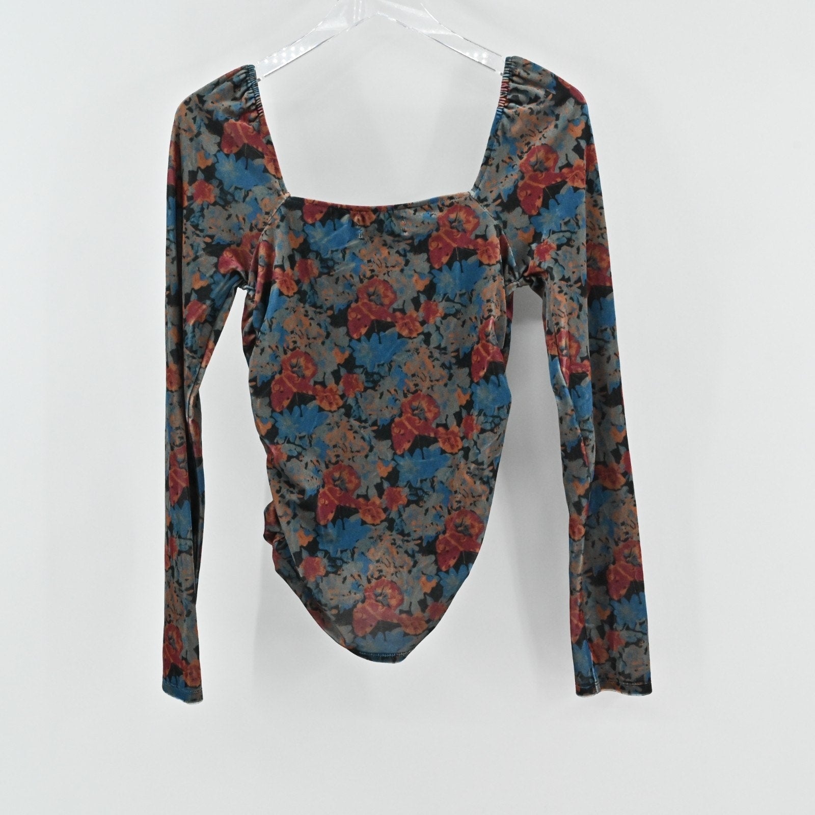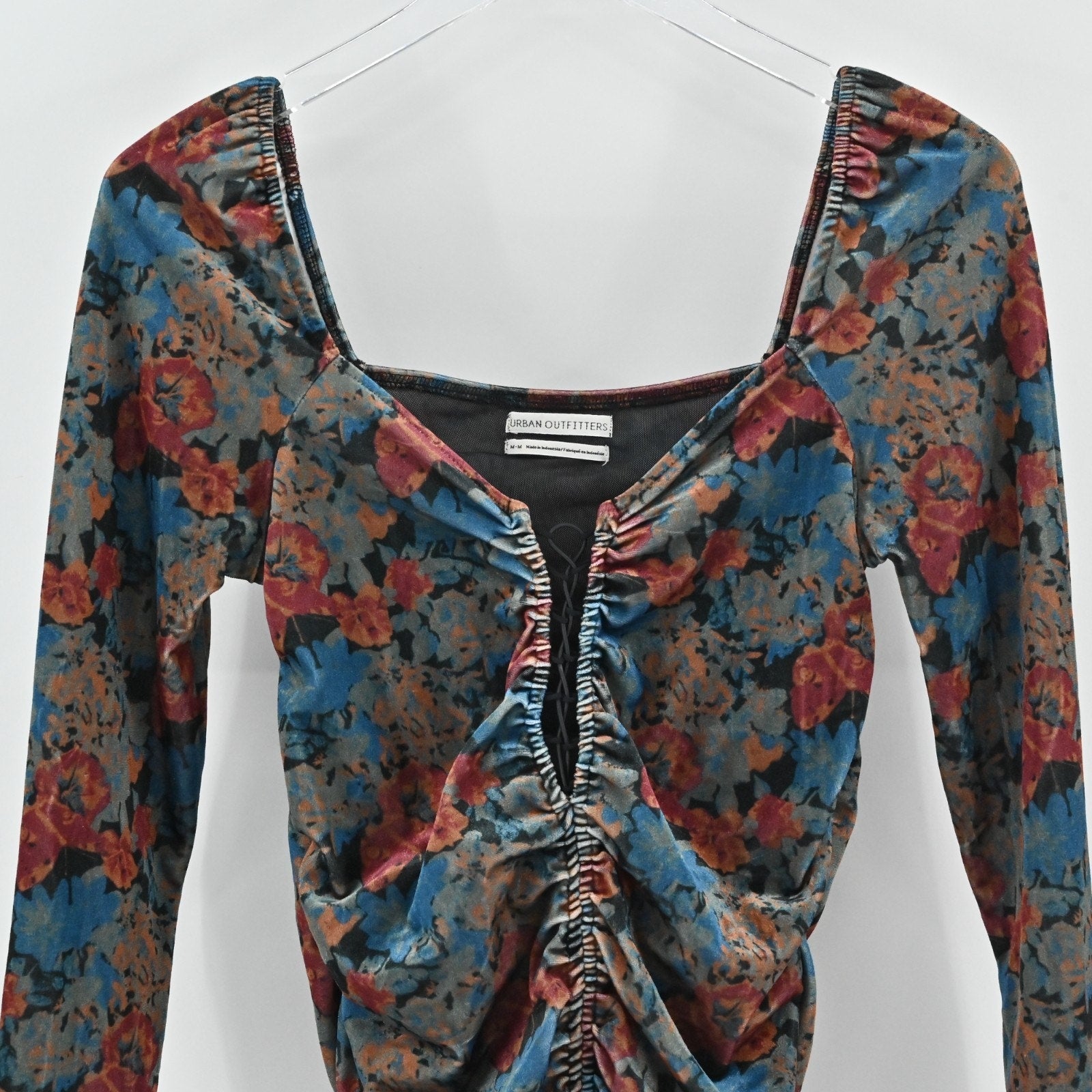 Urban Outfitter Womens Georgia Velvet Lace-Up Top Size M Dark Romantic Floral