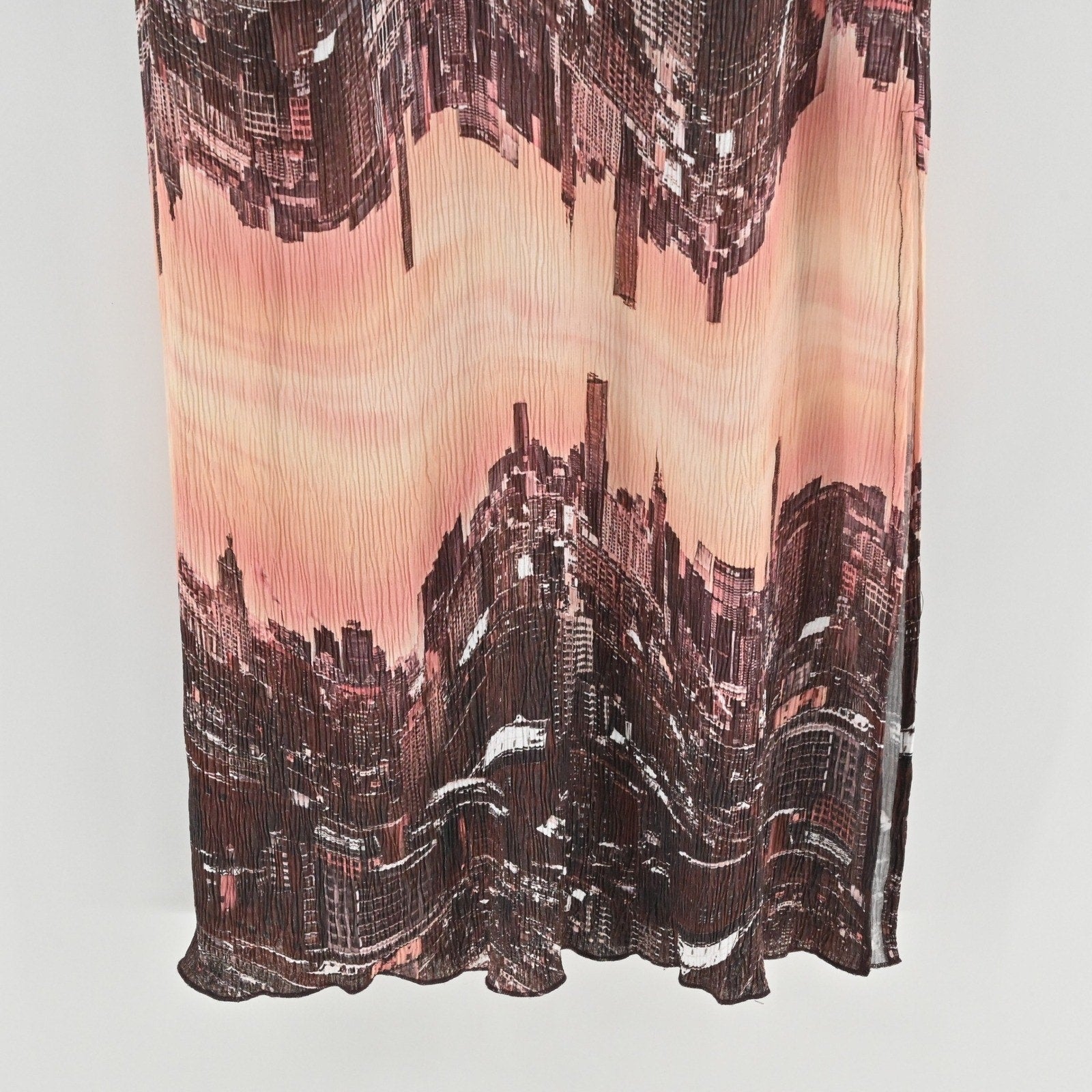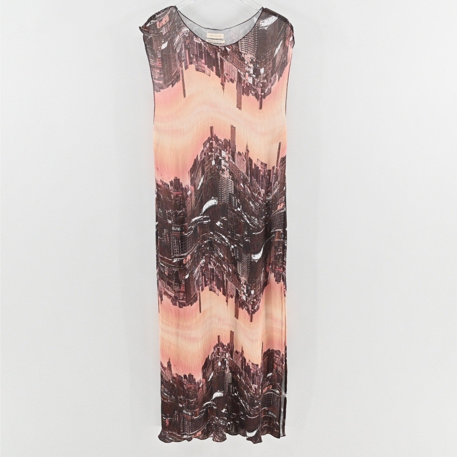 Urban Outfitters Lowkey Sleeveless Midi Dress Sz XL Crinkle Stretch City Skyline