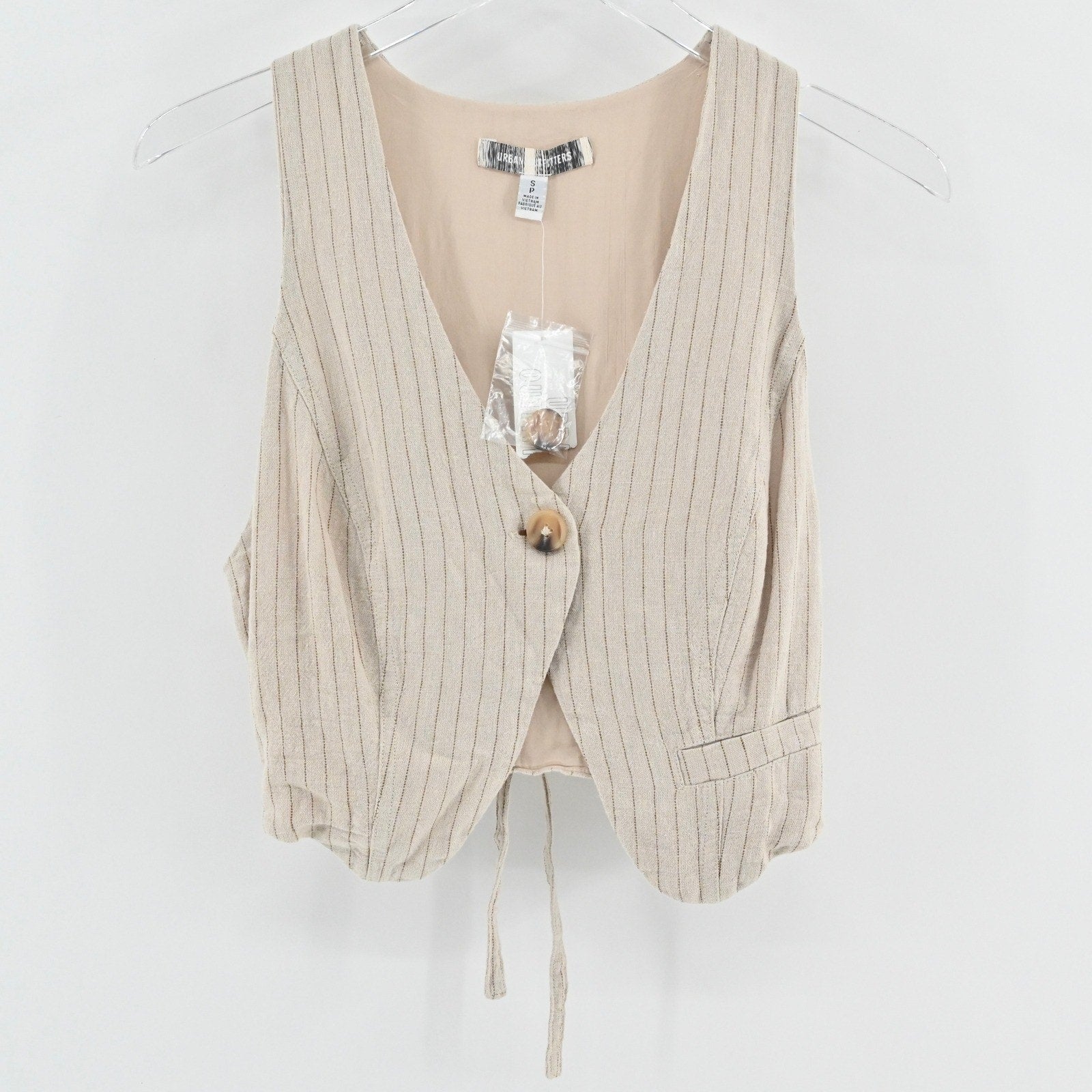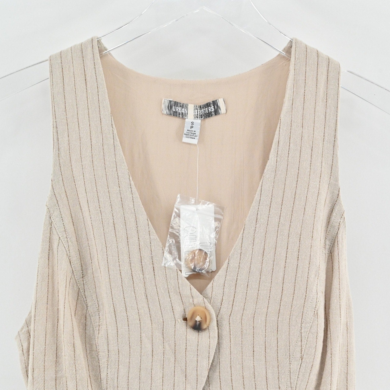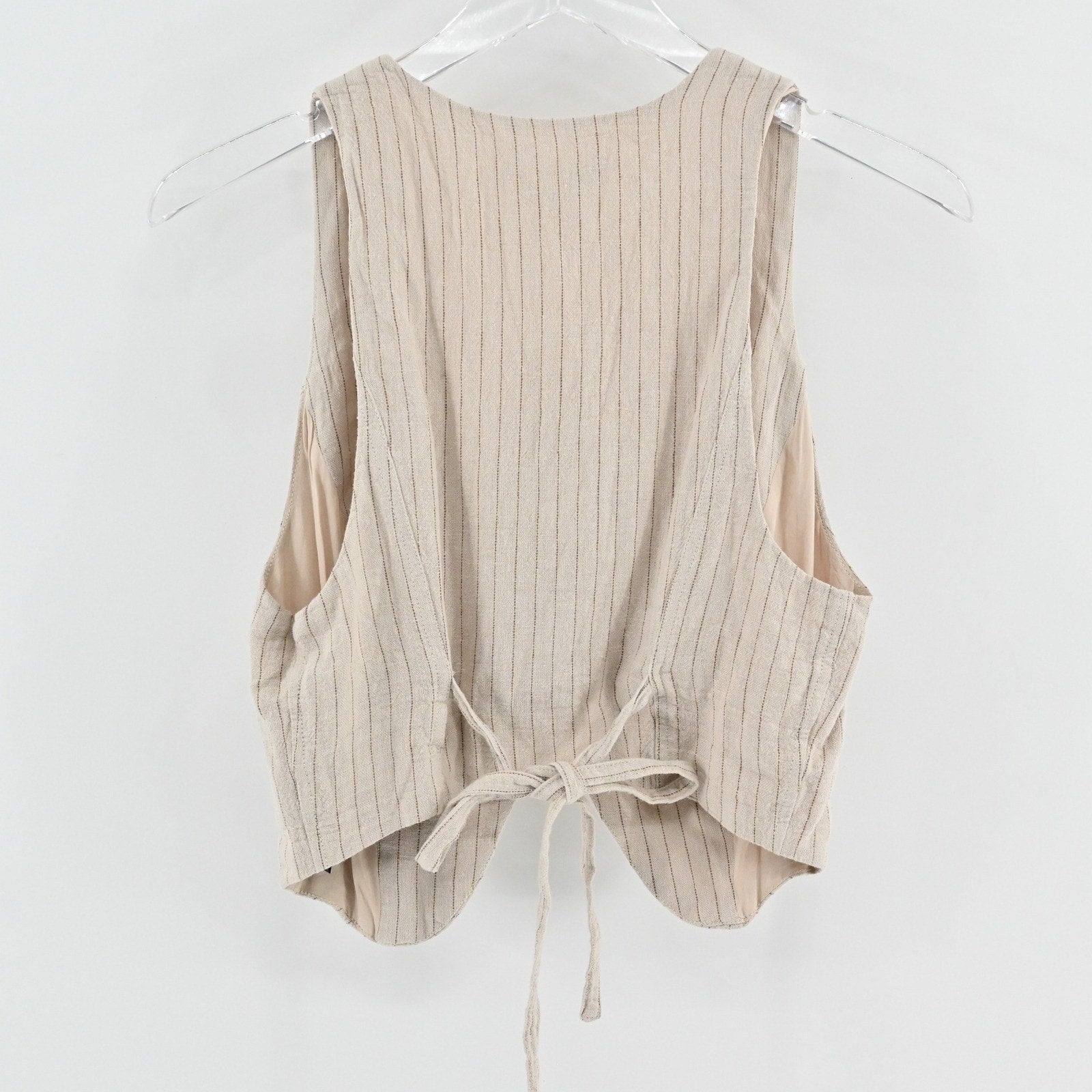 Urban Outfitters Womens Vest Top Size S Pinstripe Academia Preppy Linen Button