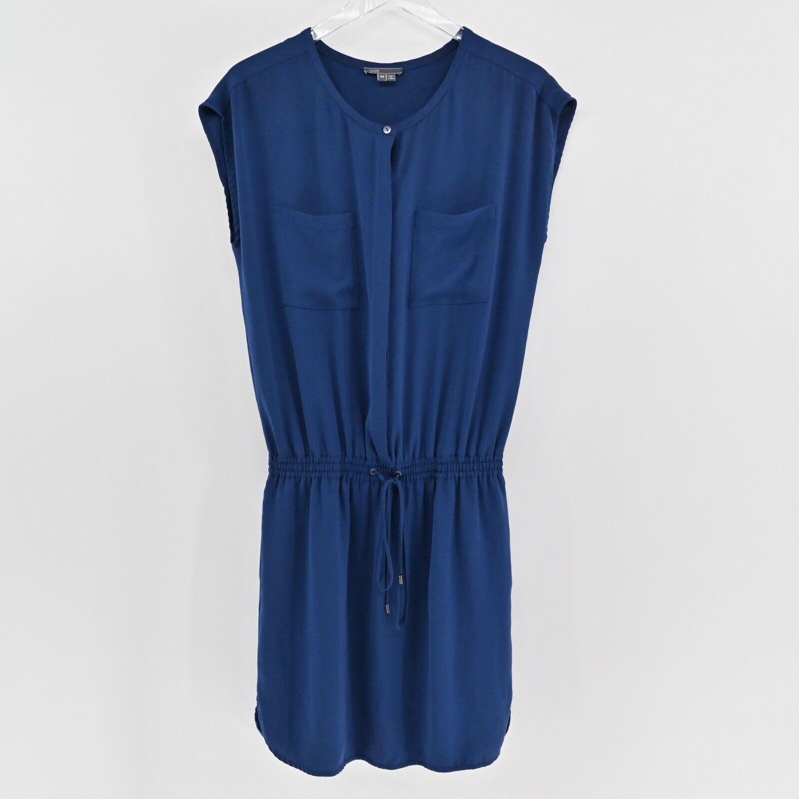 VINCE Dress Size XS Blue Cap Sleeve Drawstring Waist Shirt Capsule Quiet Luxury
