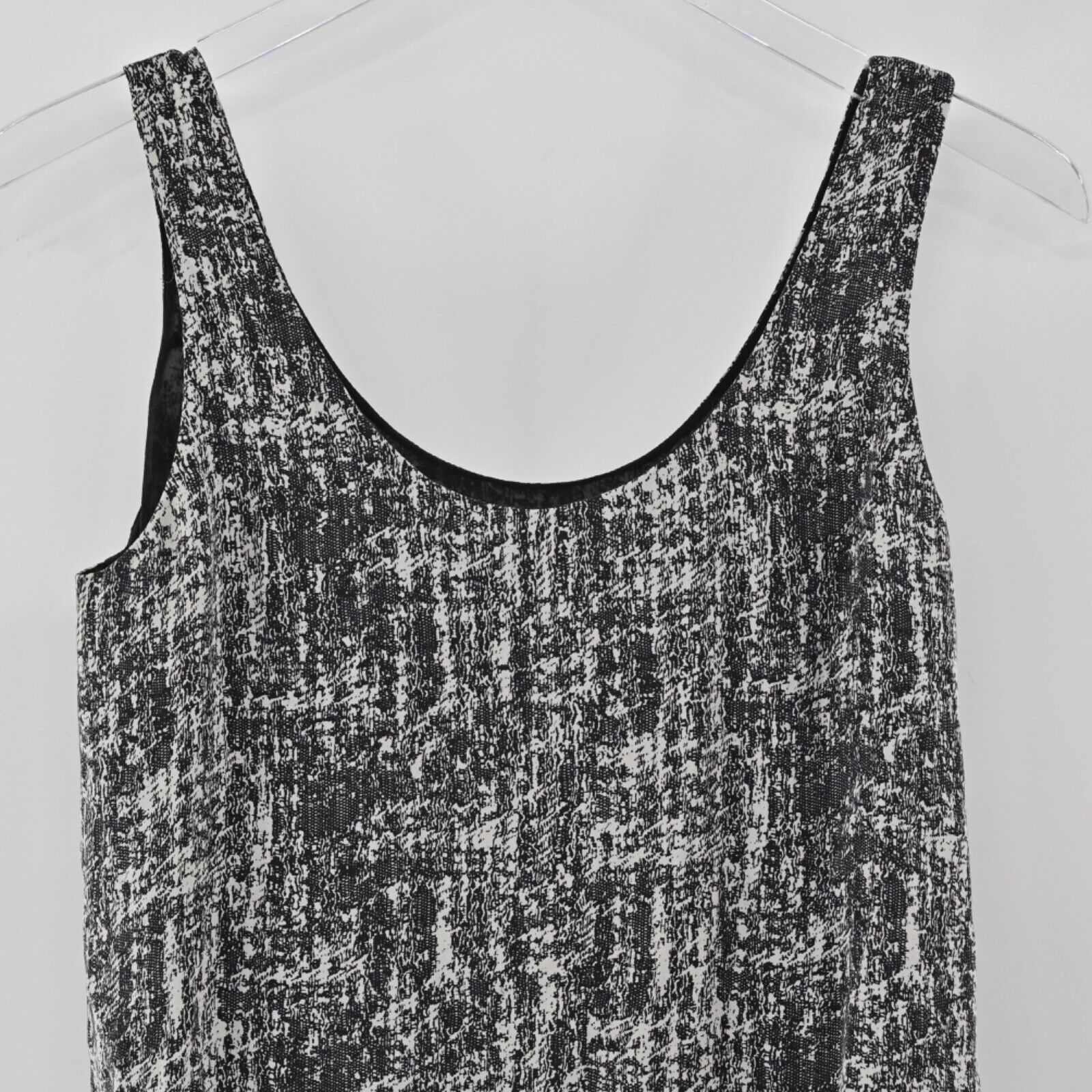 VINCE Top Women’s Size Small Black & White Burnout Print 100% Silk Chiffon Scoop Neck & Back Wide Strap Tank Pullover Lined Minimalist Office Career