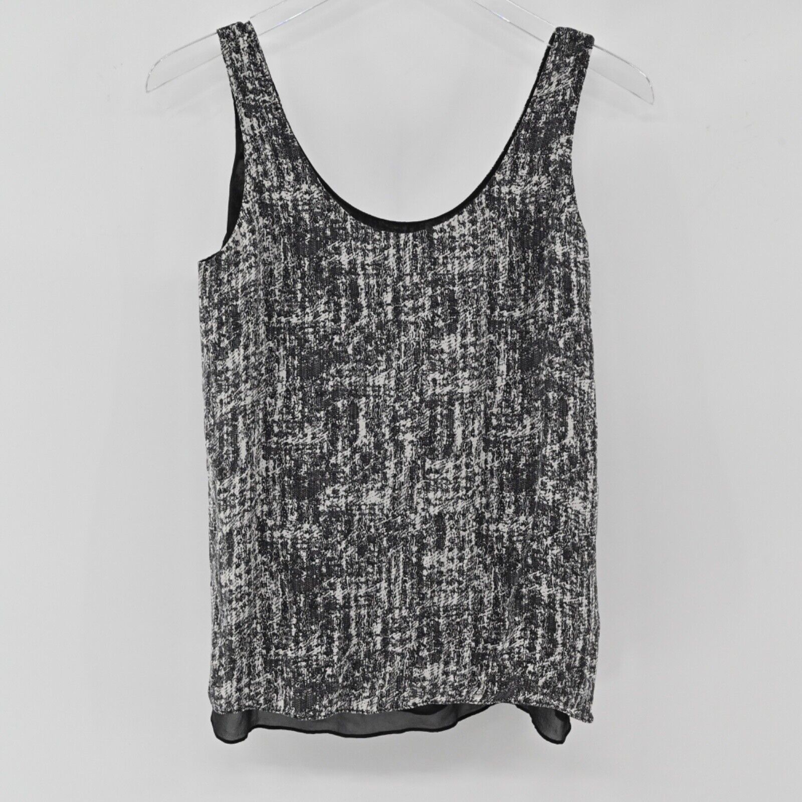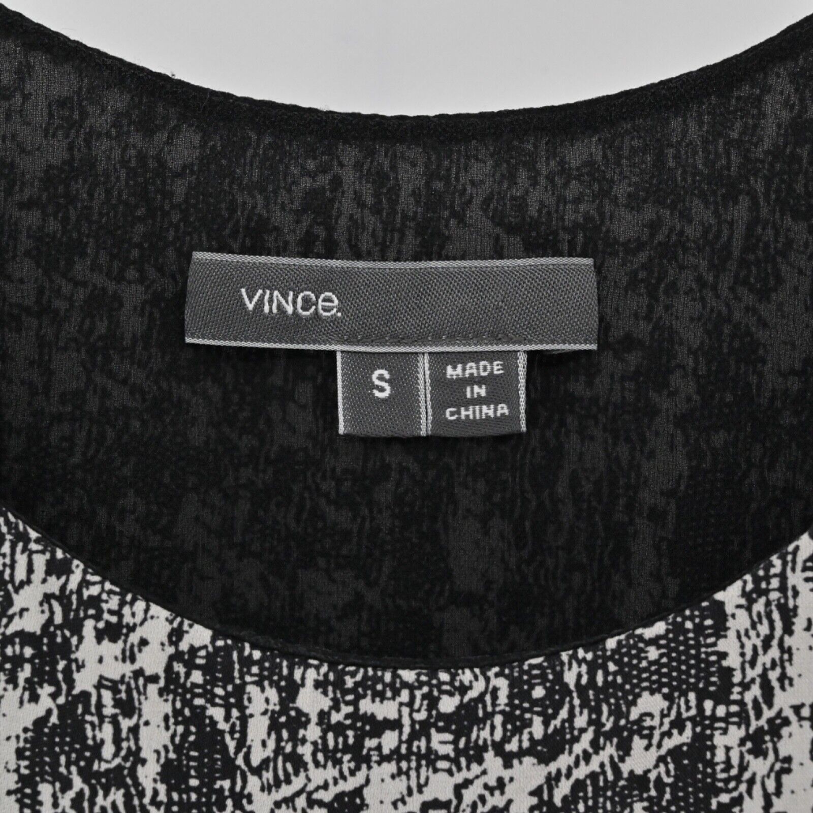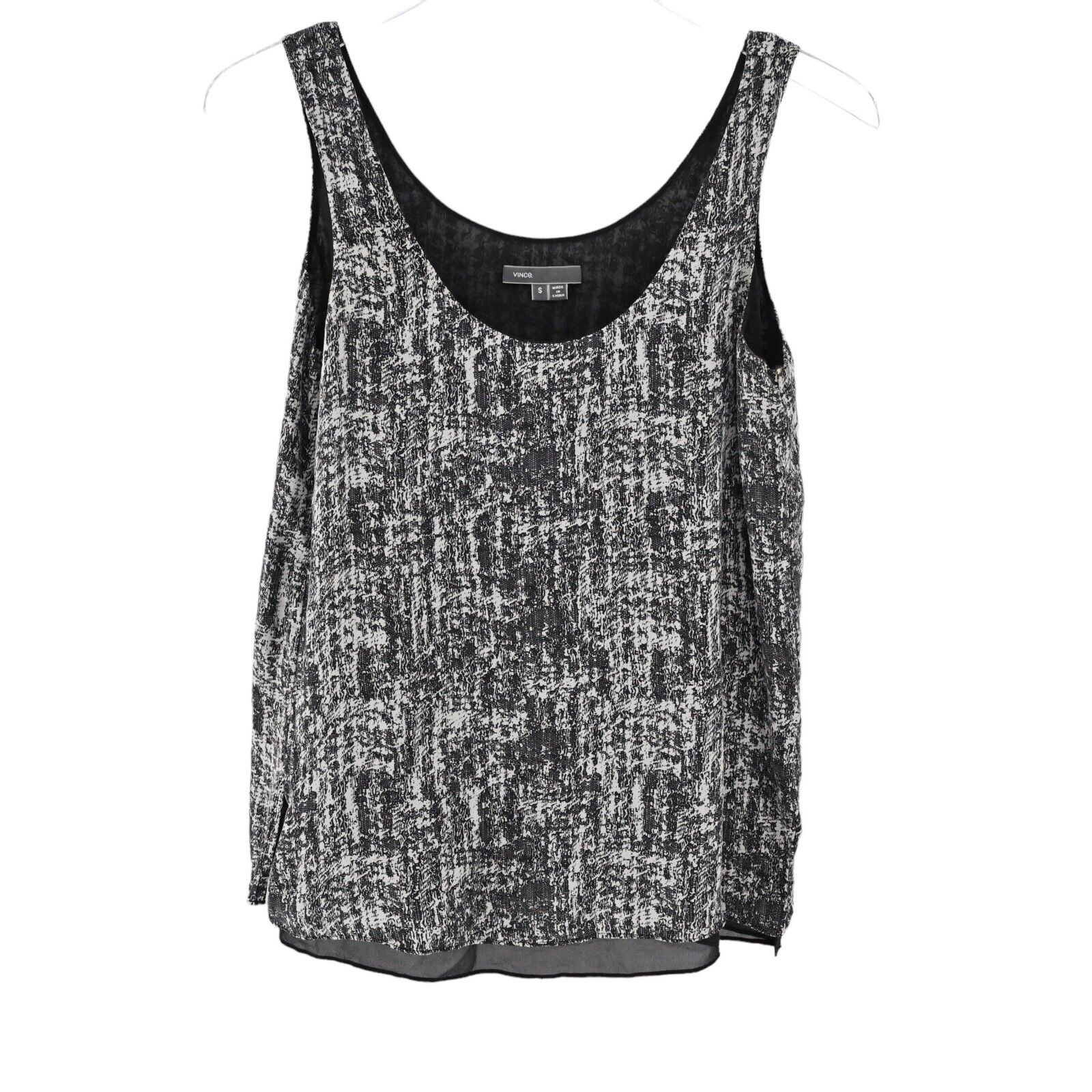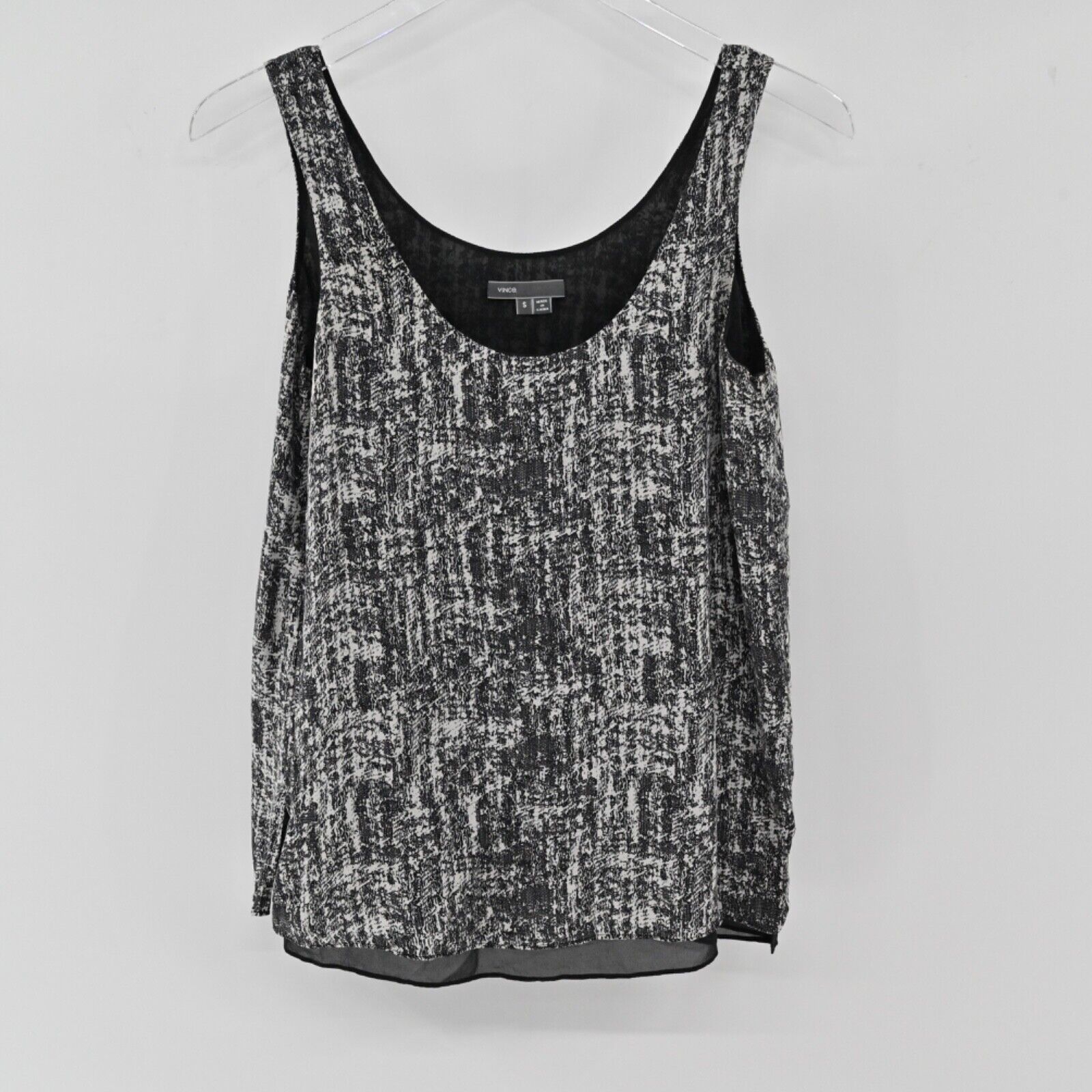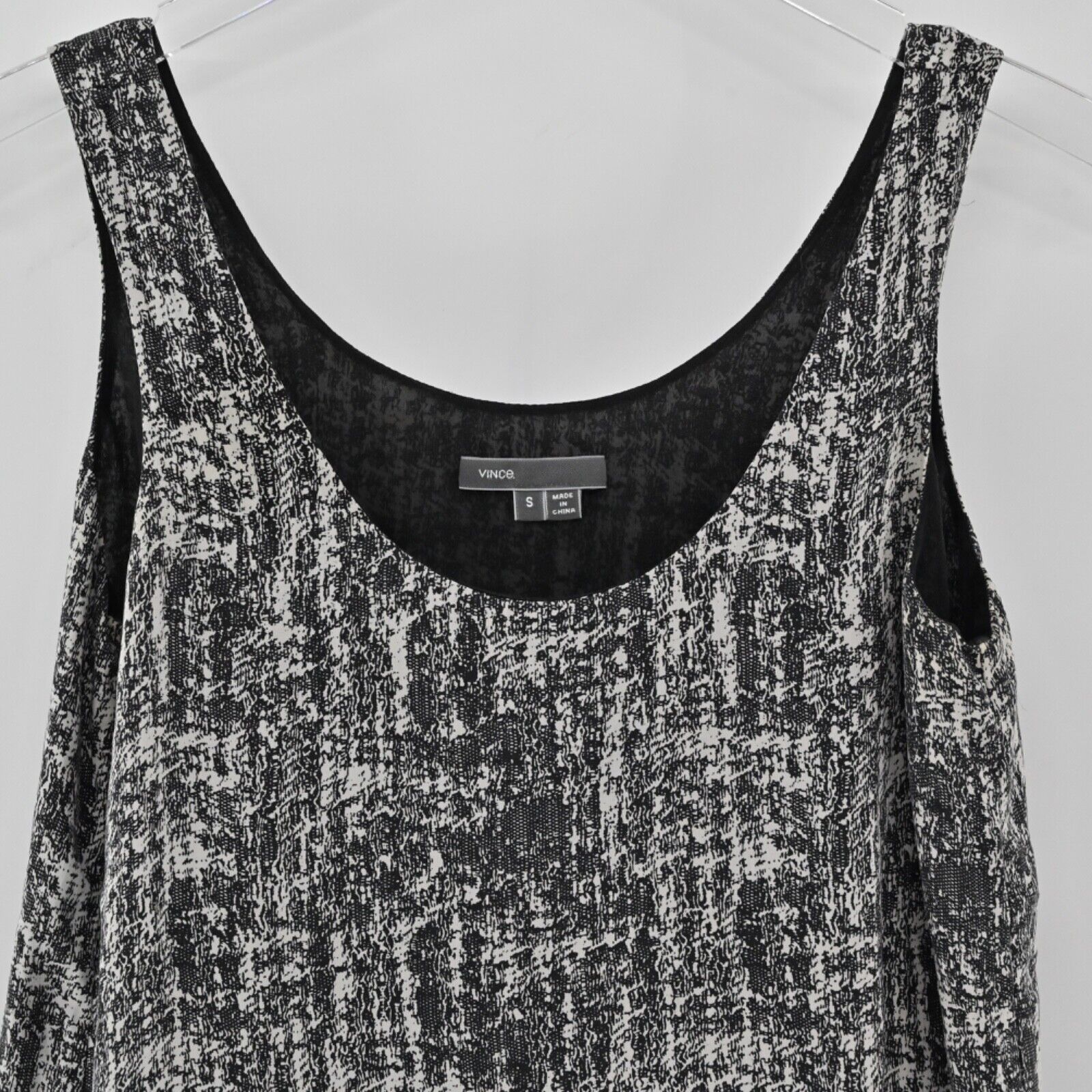 VINCE Top Women Sz S Black White Burnout Print 100% Silk Chiffon Tank Minimalist