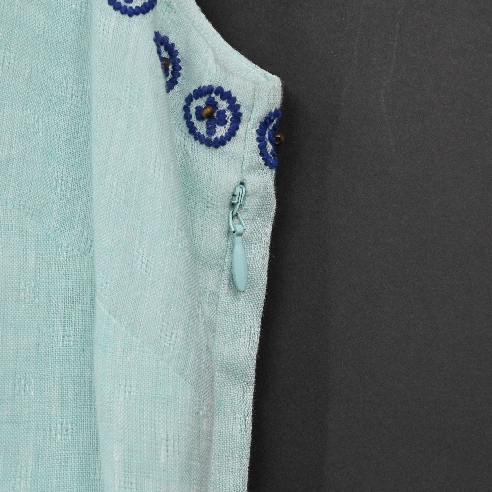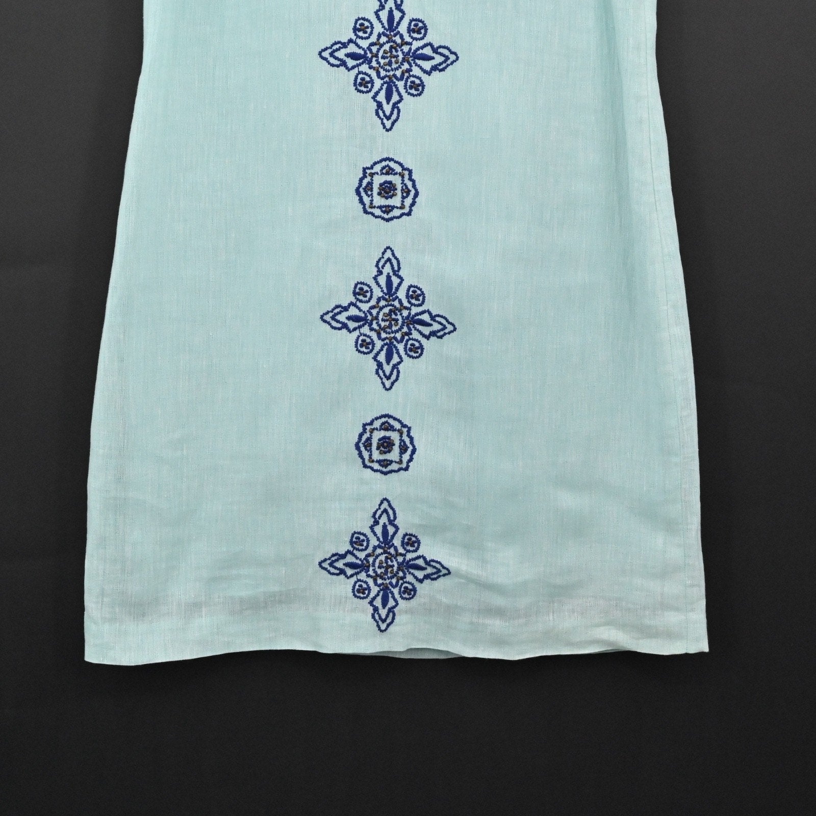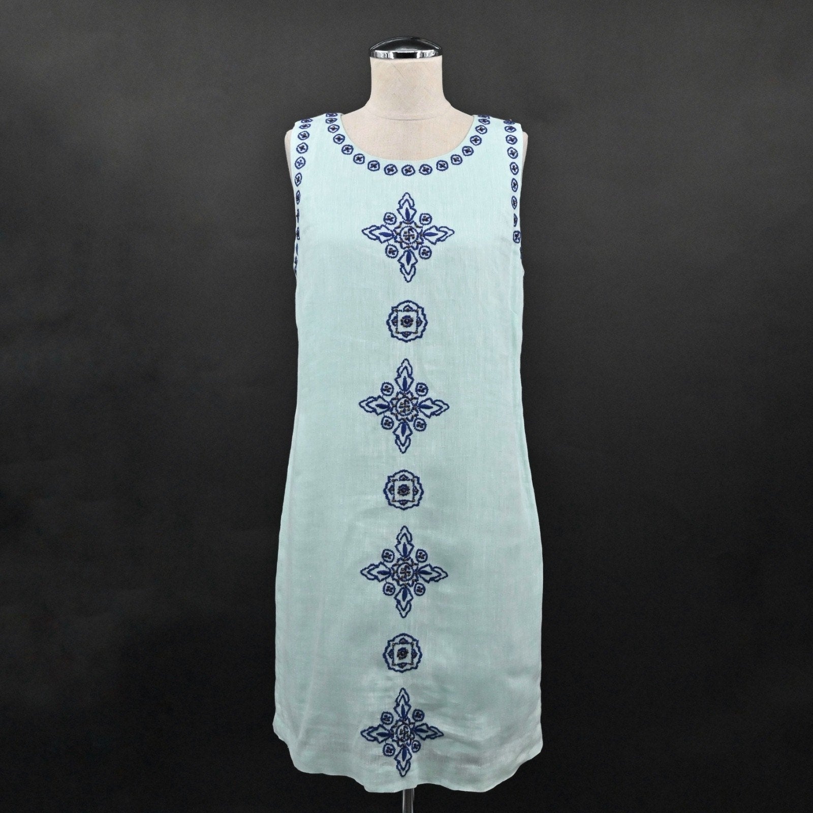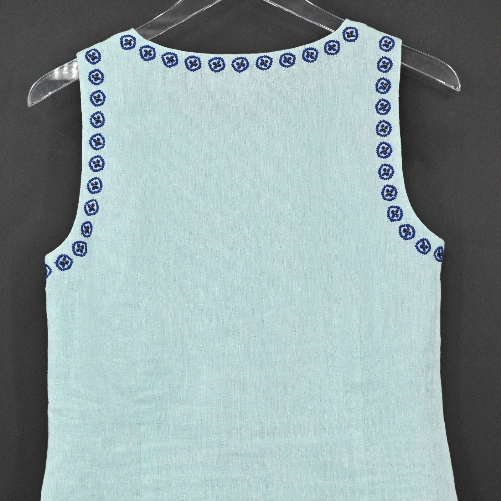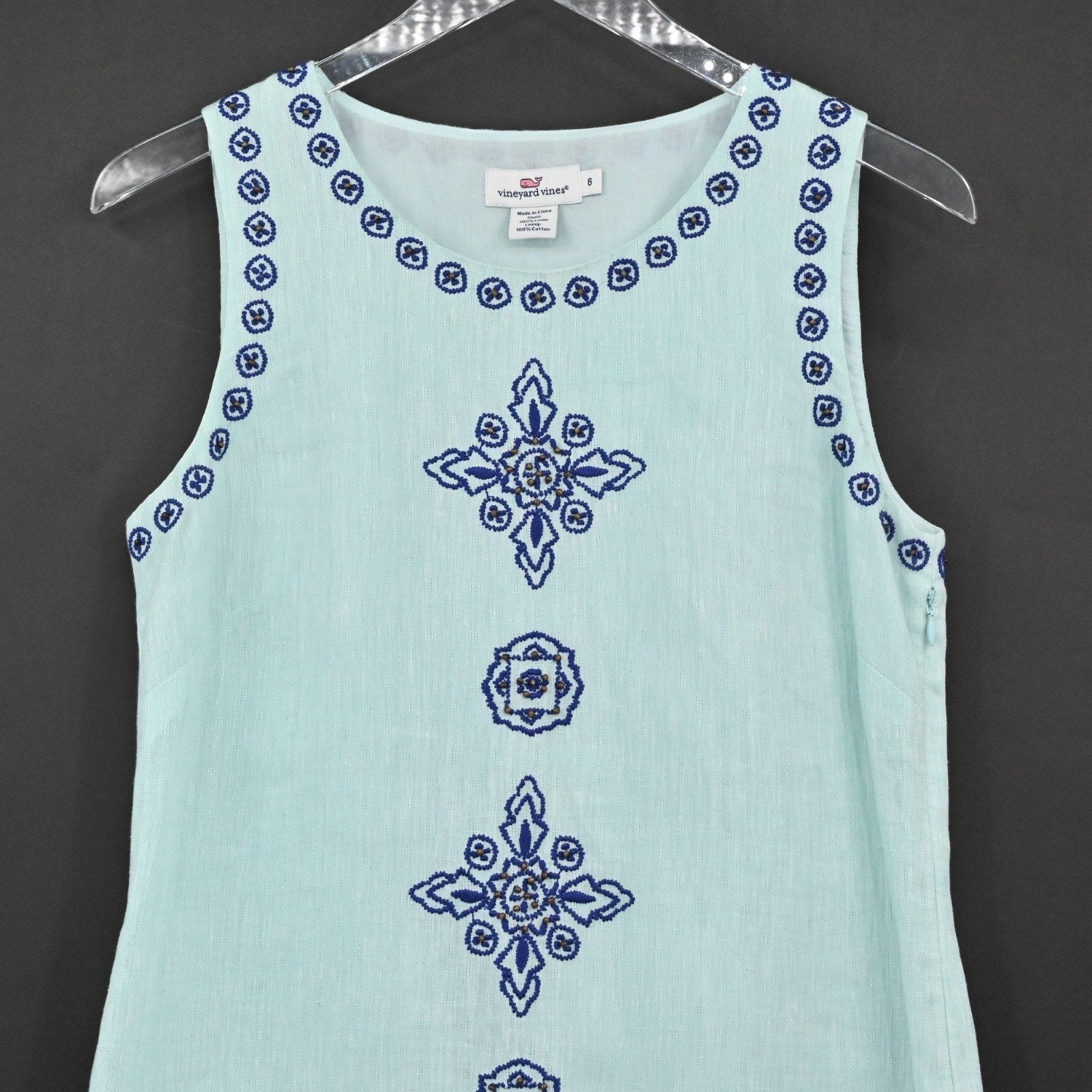 VINEYARD VINES Embroidered Beaded Shift Dress Sz 6 Blue Linen Cotton Sleeveless