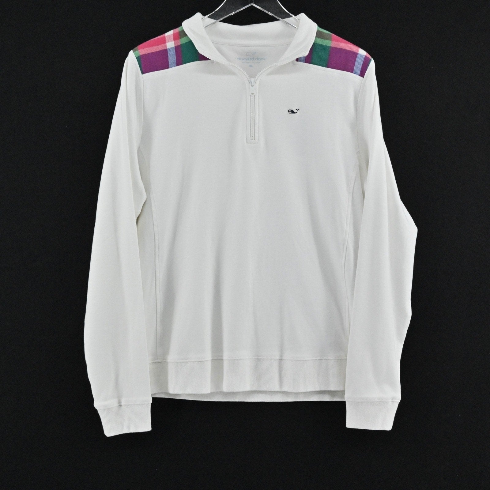 Vineyard Vines Womens Tiddings Tartan Pullover Size XL Preppy Jersey 1/4 Zip