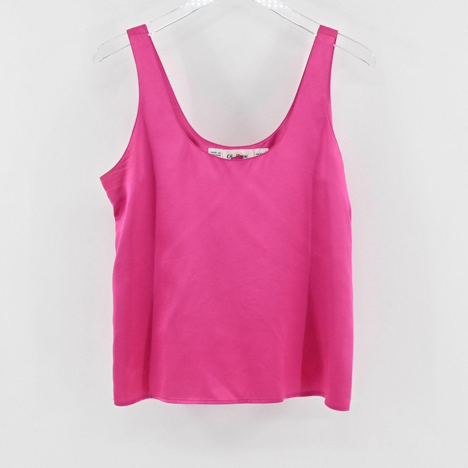 Vintage Oleg Cassini Womens Pink Silk Tank Top Size 12 Satin Scoop Neck Blouse