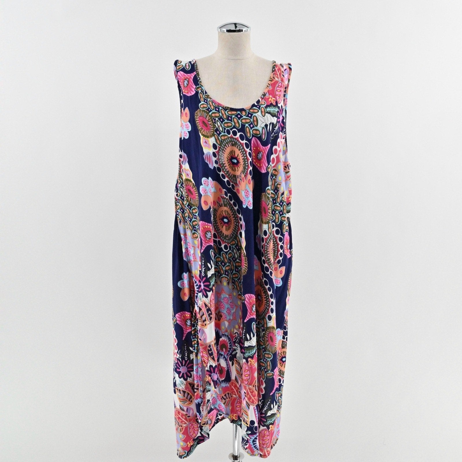 Vtg 90s Floral Midi Dress Size 1X Wanderlust Vibrant Sleeveless Bloomcore Boho