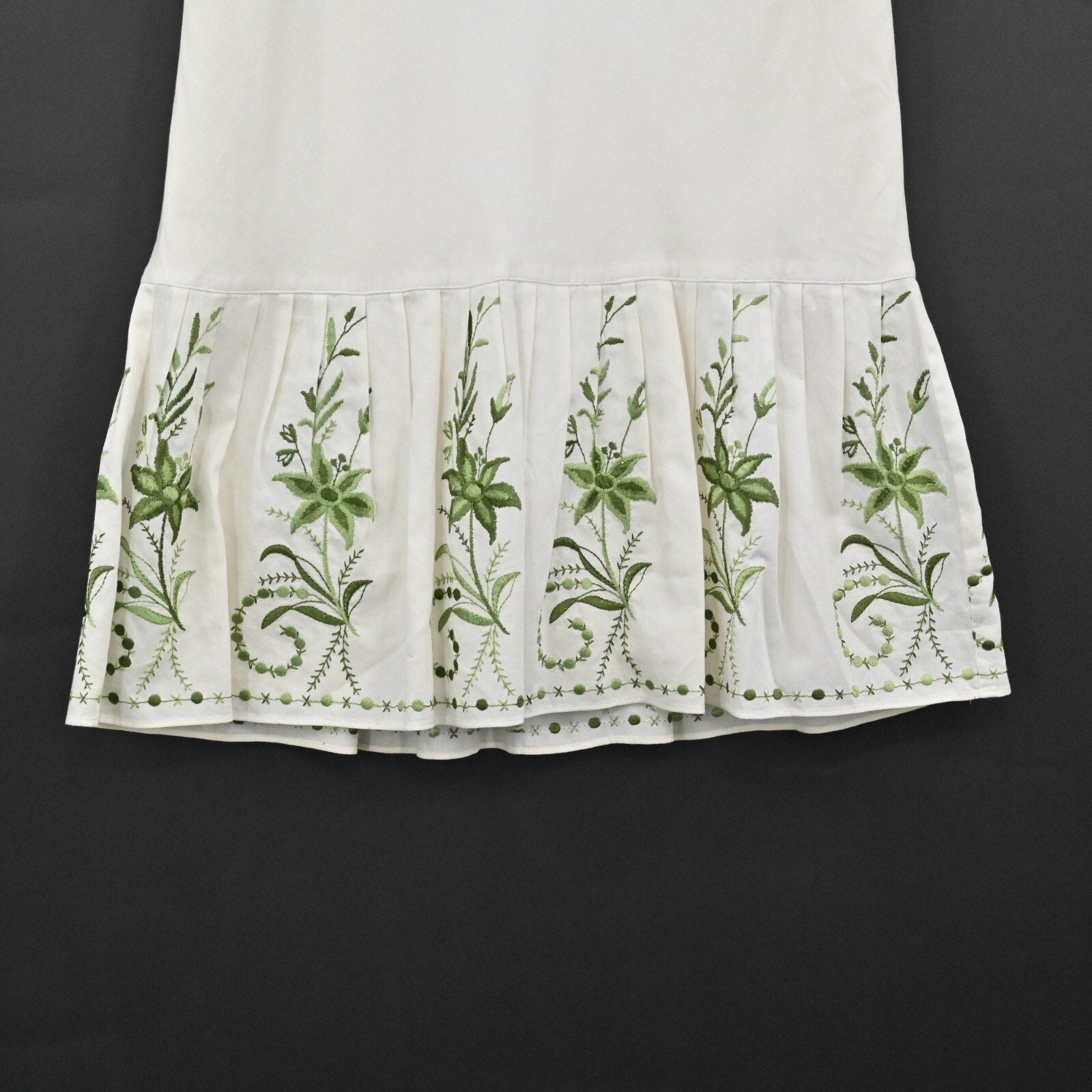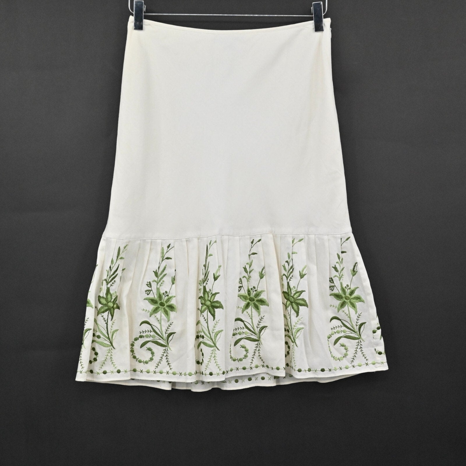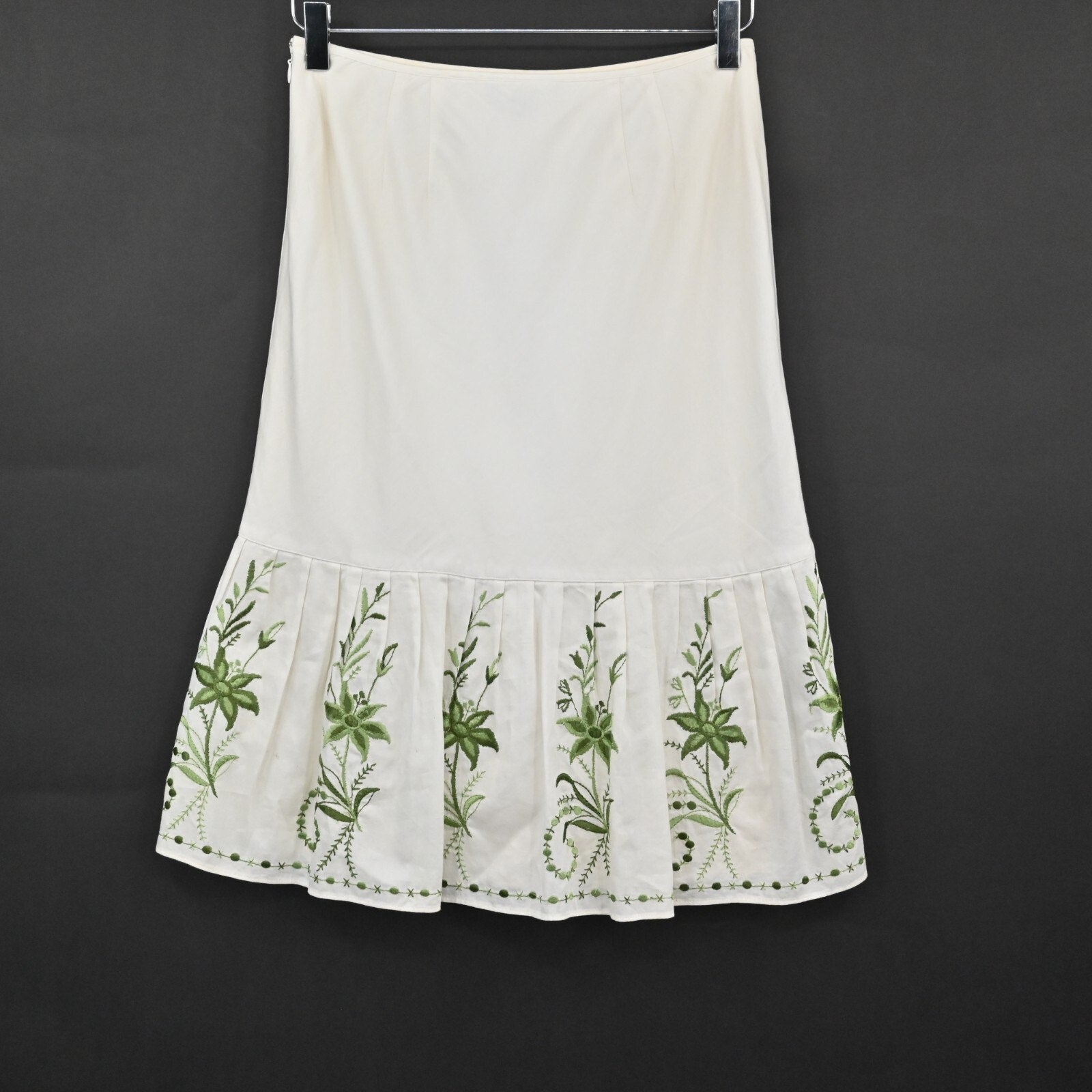 Vtg ANN TAYLOR Embroidered Skirt Size 4P Petites Ivory Green Flower Tiered ALine