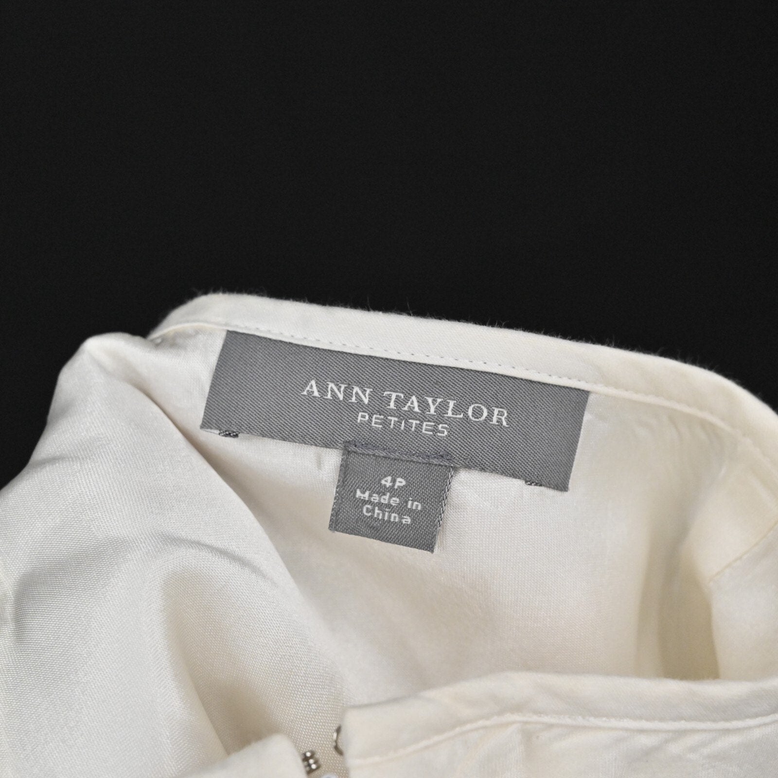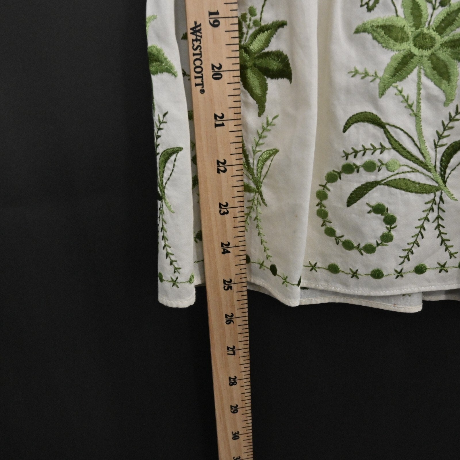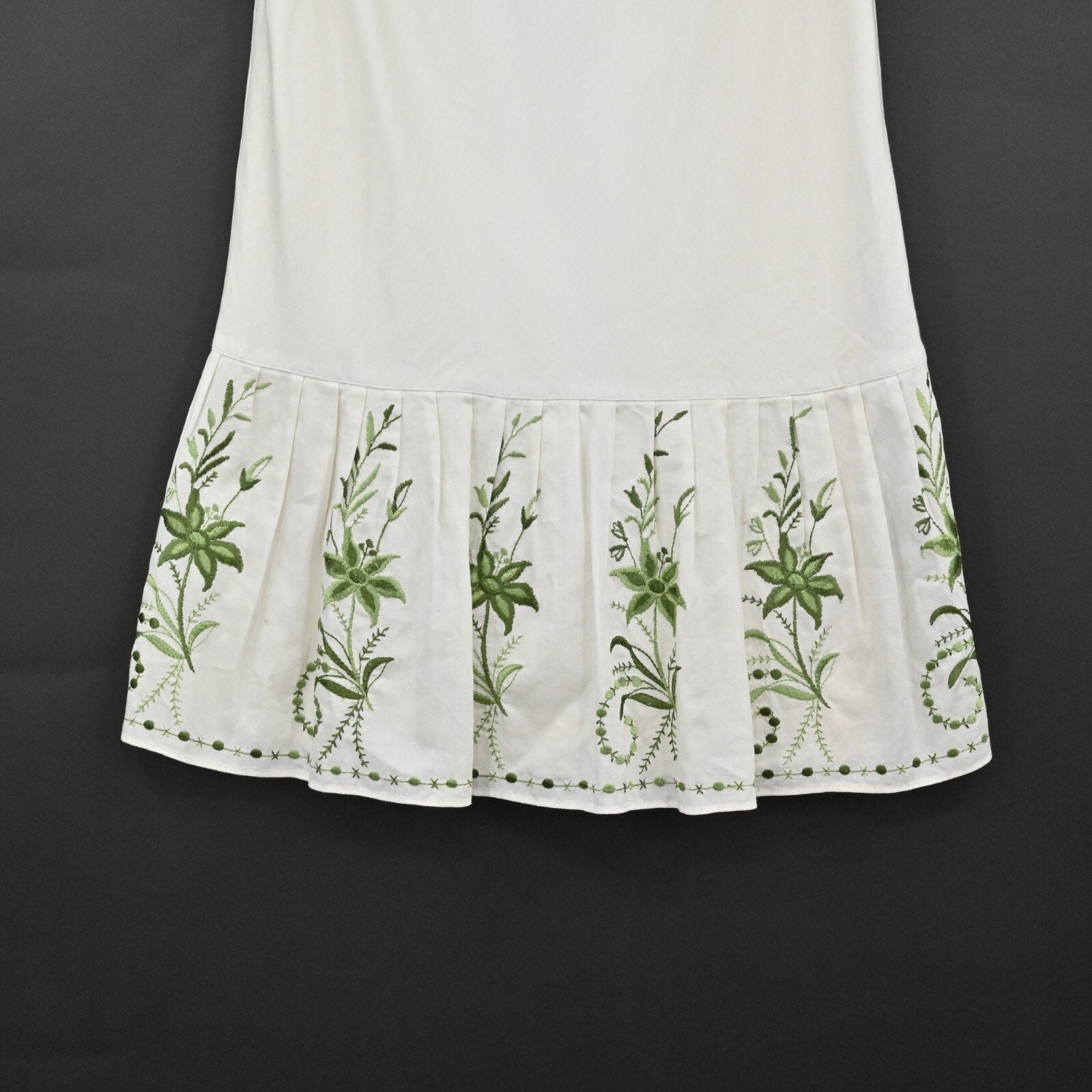 Vtg ANN TAYLOR Embroidered Skirt Size 4P Petites Ivory Green Flower Tiered ALine