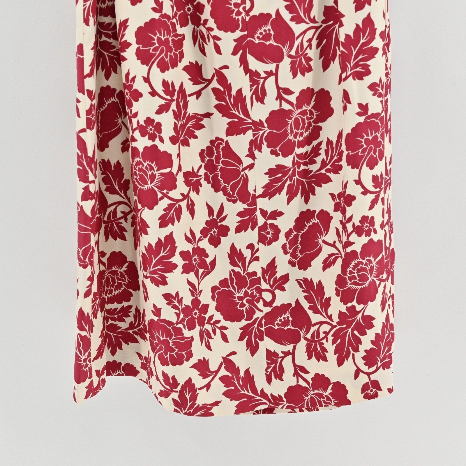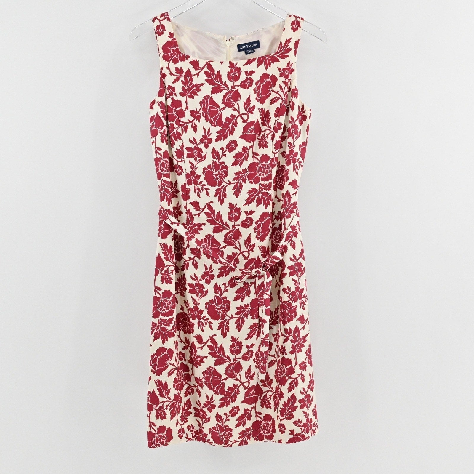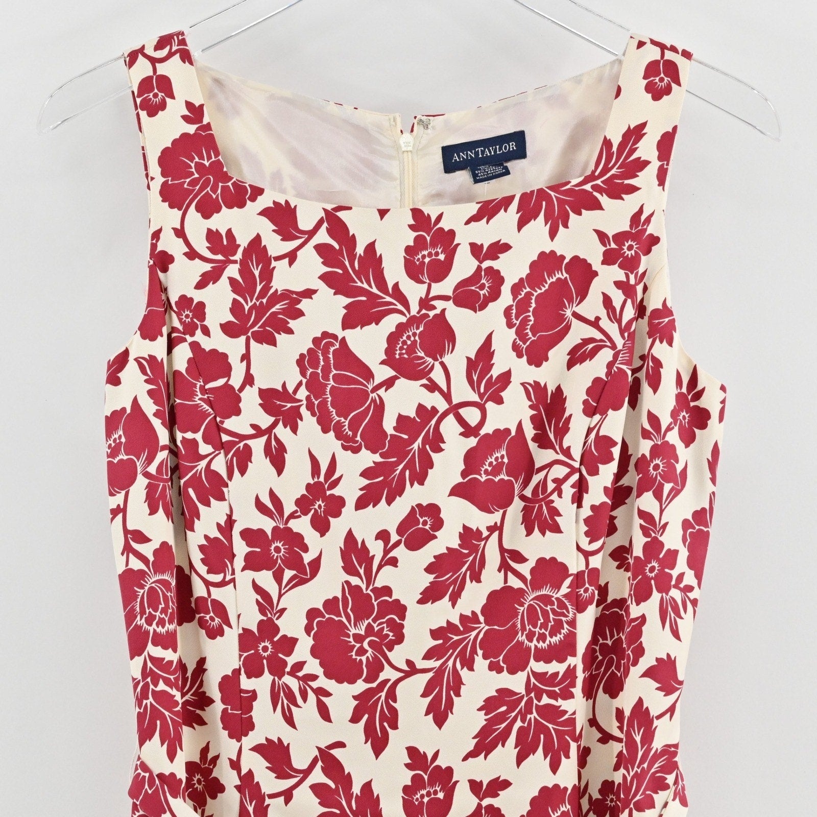 Vtg Ann Taylor Silk Floral Dress Size 6 Sleeveless Red Romantic Garden Party