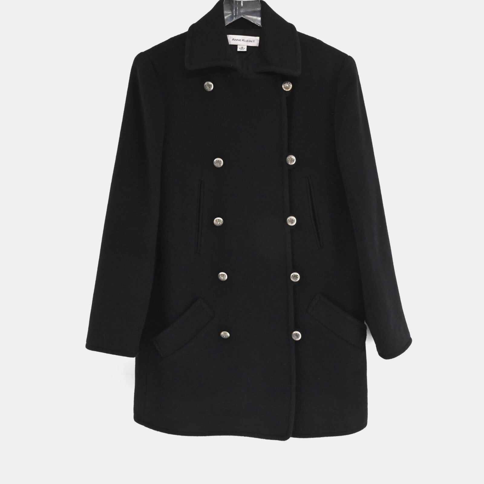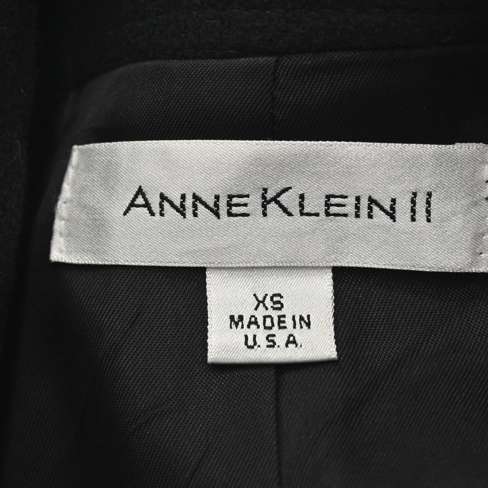Vtg ANNE KLEIN Womens Wool Pea Coat Size XS Black Mid Double Breasted USA 90s