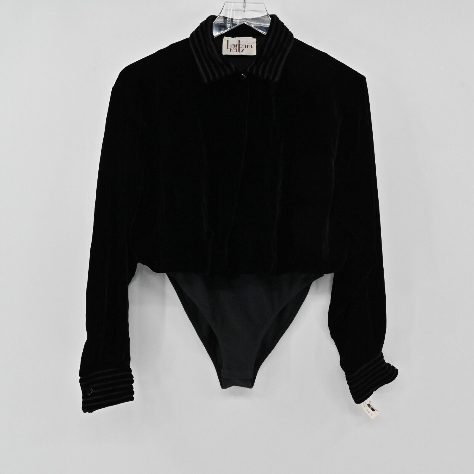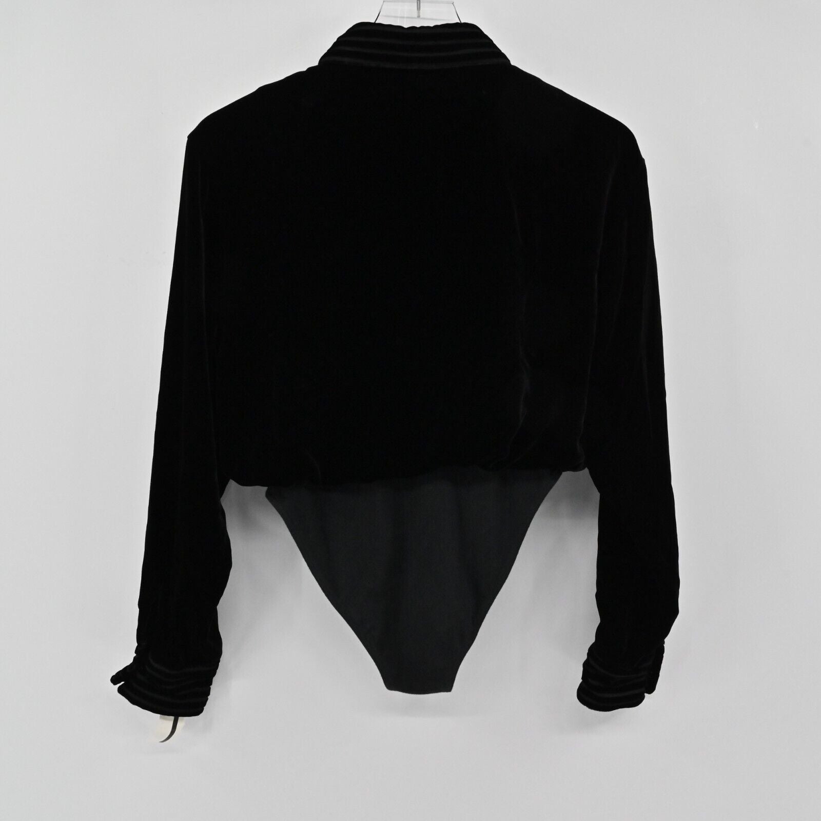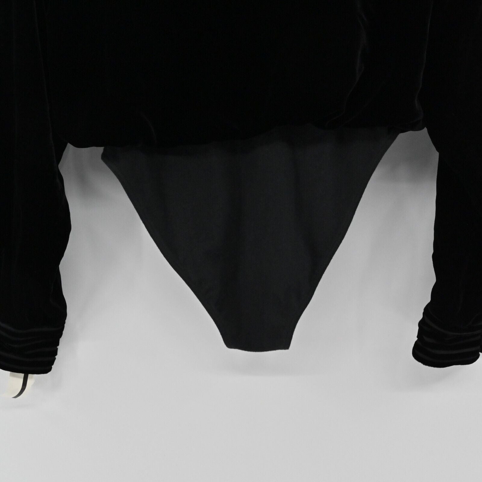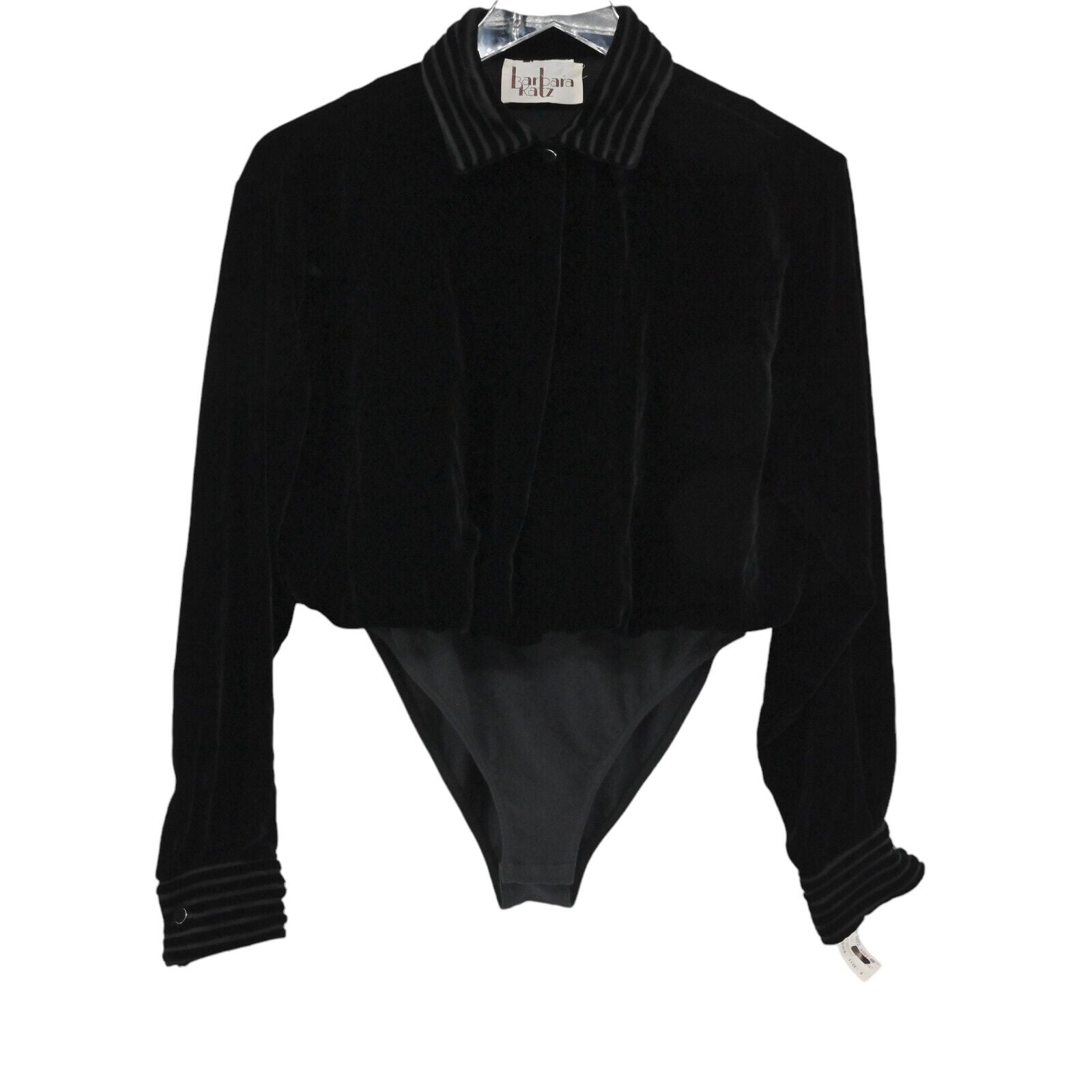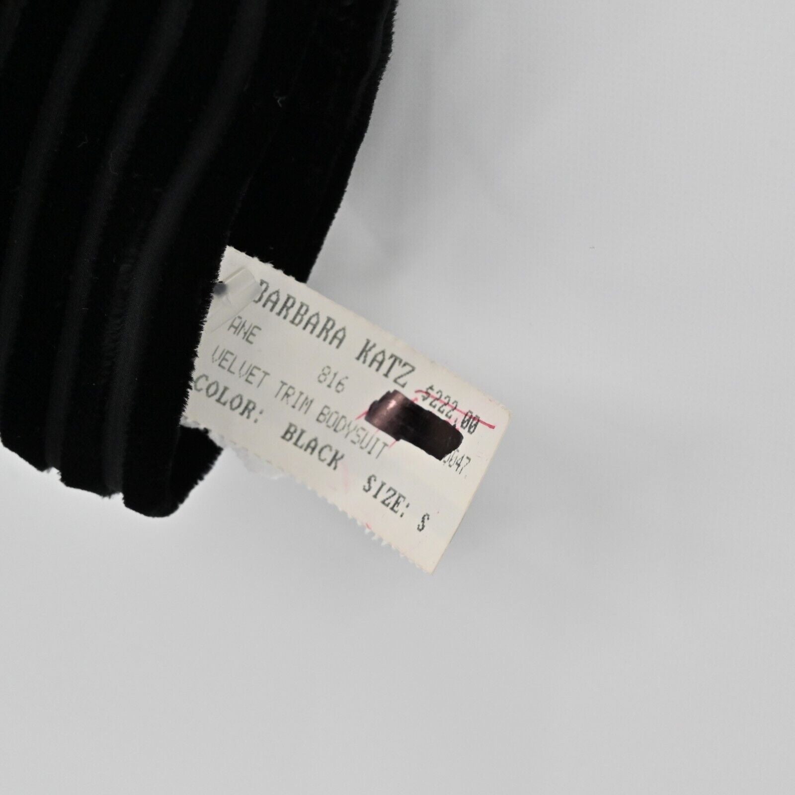 Vtg BARBARA KATZ Velvet Bodysuit Womens Size S Black Long Sleeve 80s Deadstock