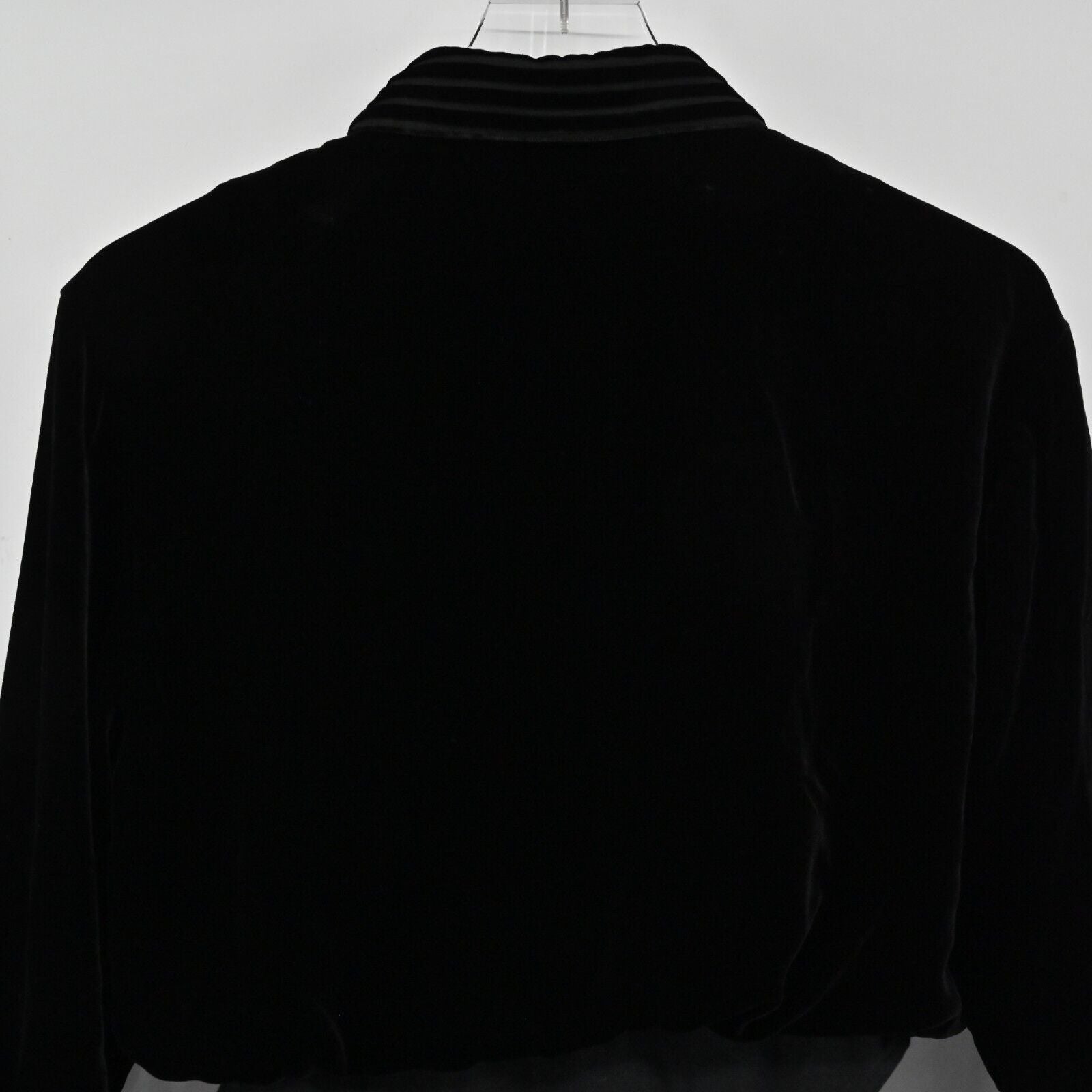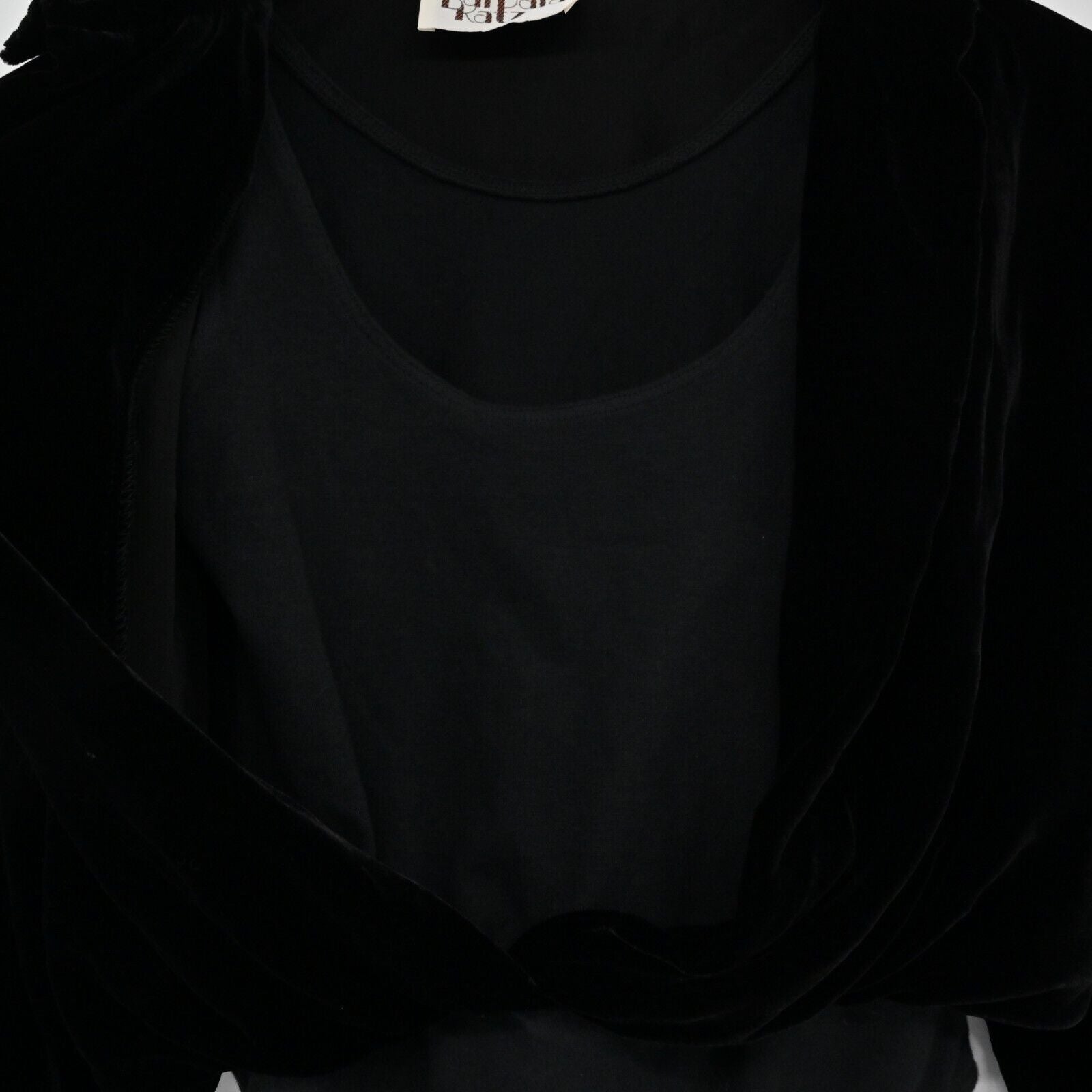 Vintage BARBARA KATZ Bodysuit Women's Size Small Black Velvet Trim Long Sleeve Top NEW NWT Deadstock Silk Blend Vacation Travel Chic Versatile Layering Onesie