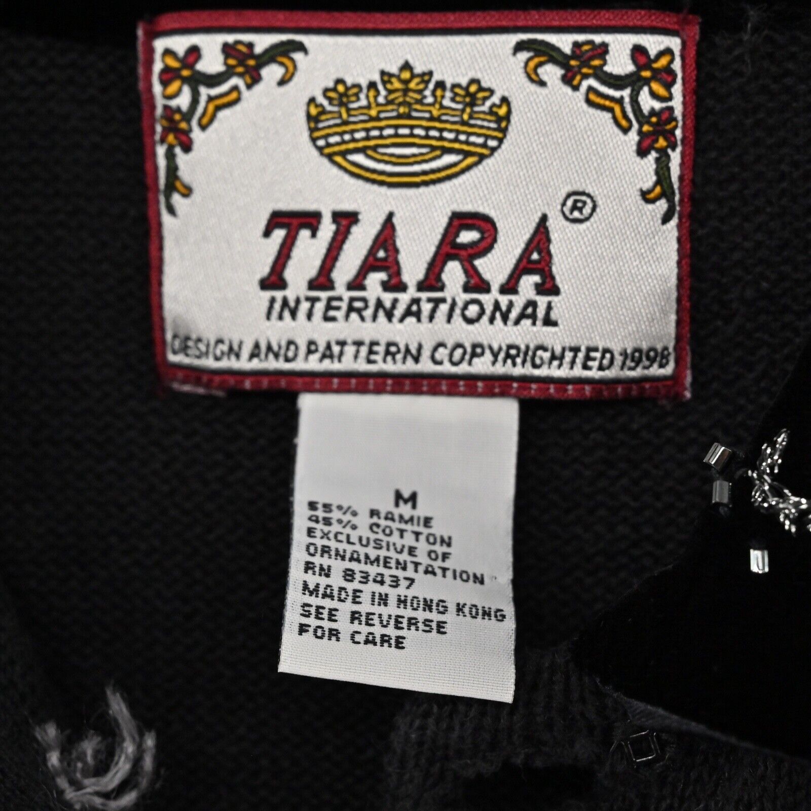Vtg Beaded Cardigan Women Sz M Black Embroidered Paisley 90s TIARA INTERNATIONAL
