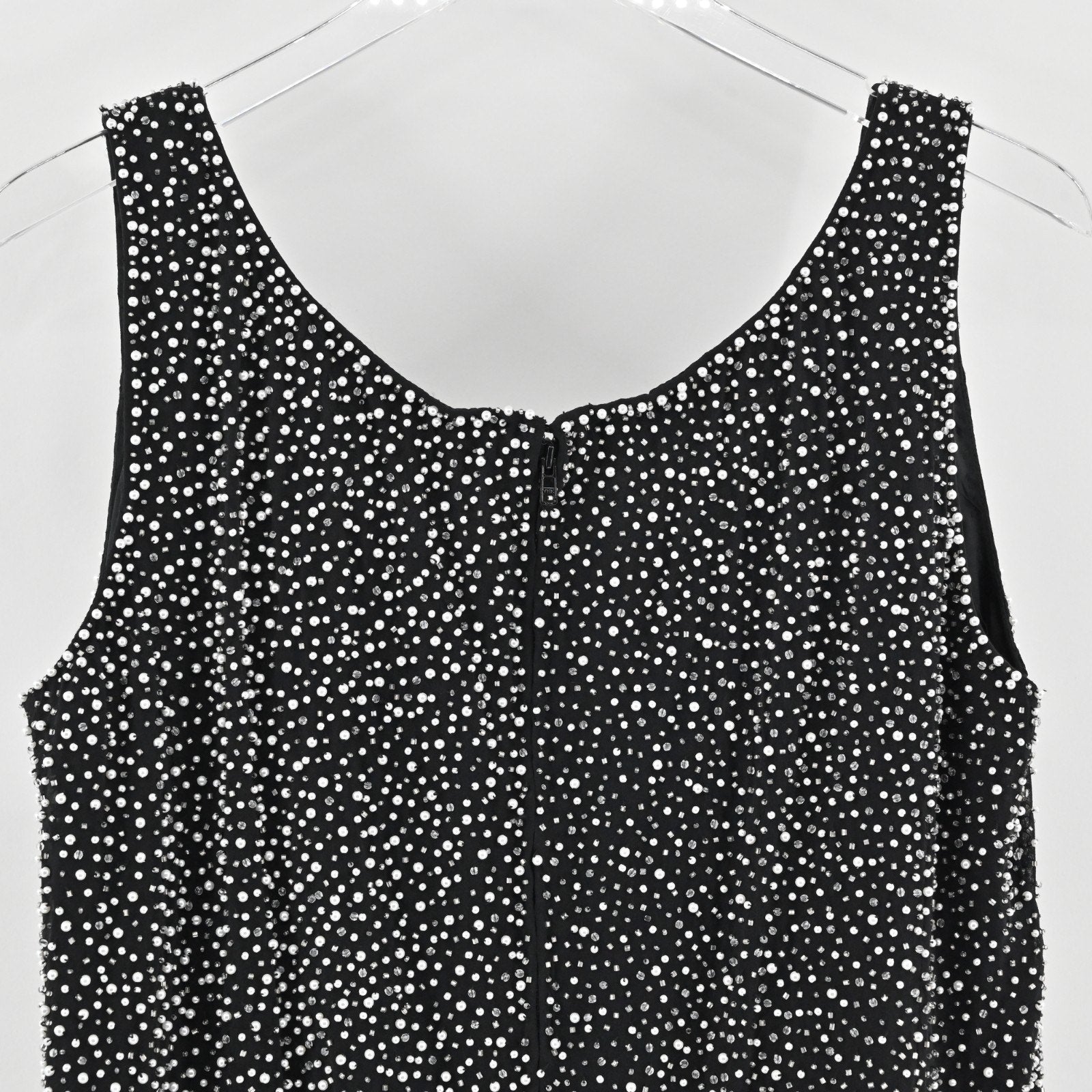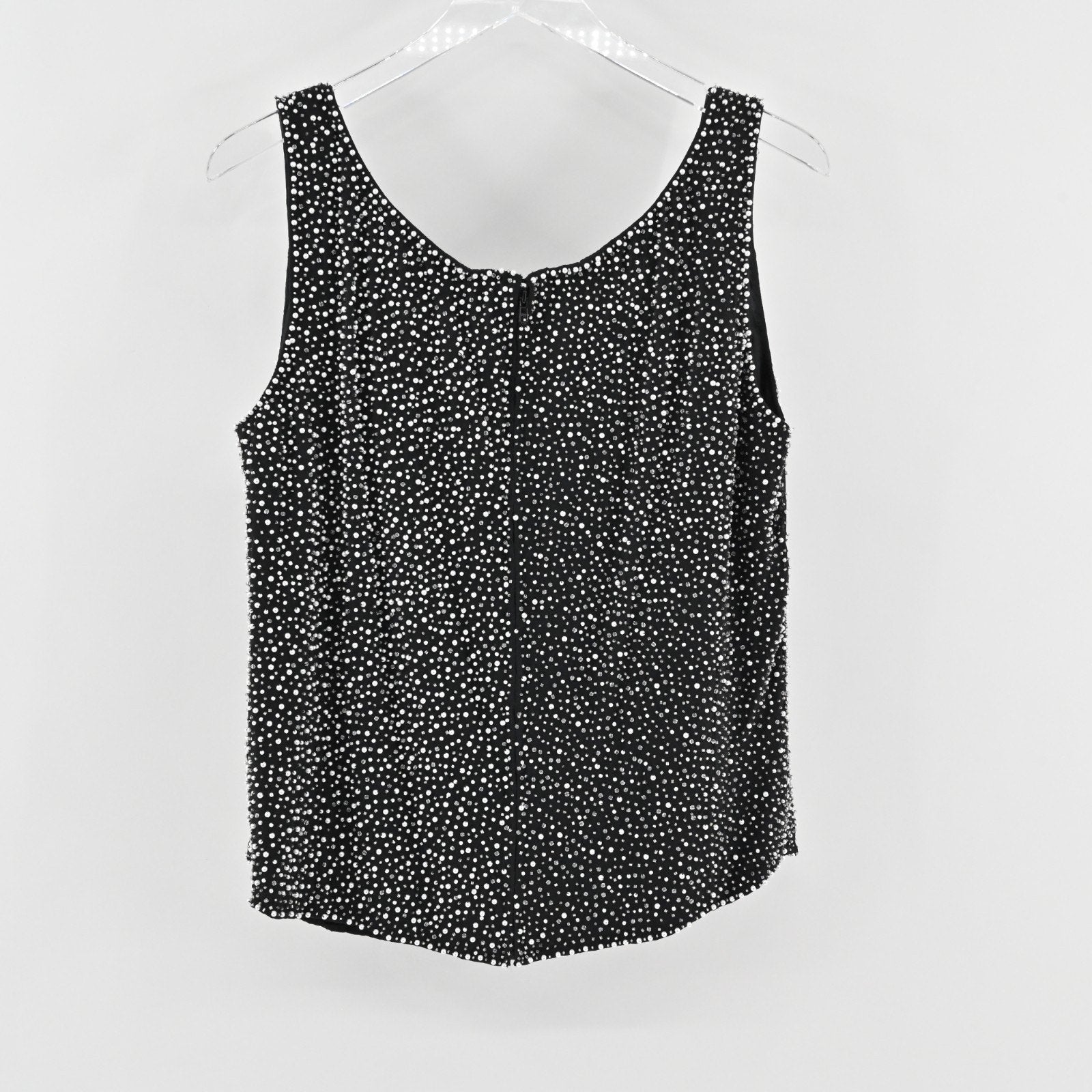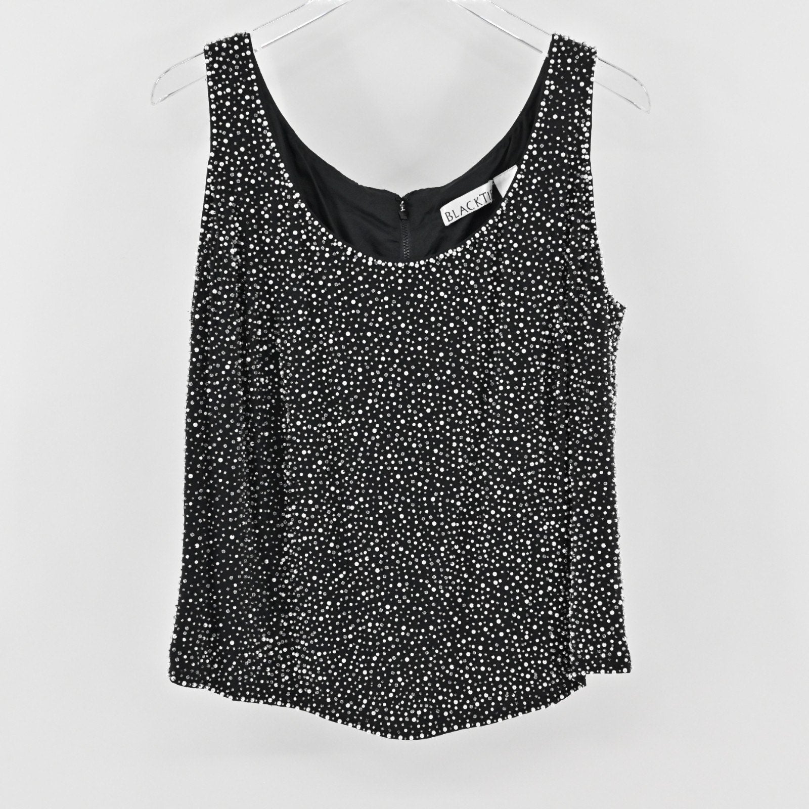 Vtg Beaded Silk Top Womens Size 2X Sleeveless Embellished Oleg Cassini Black Tie