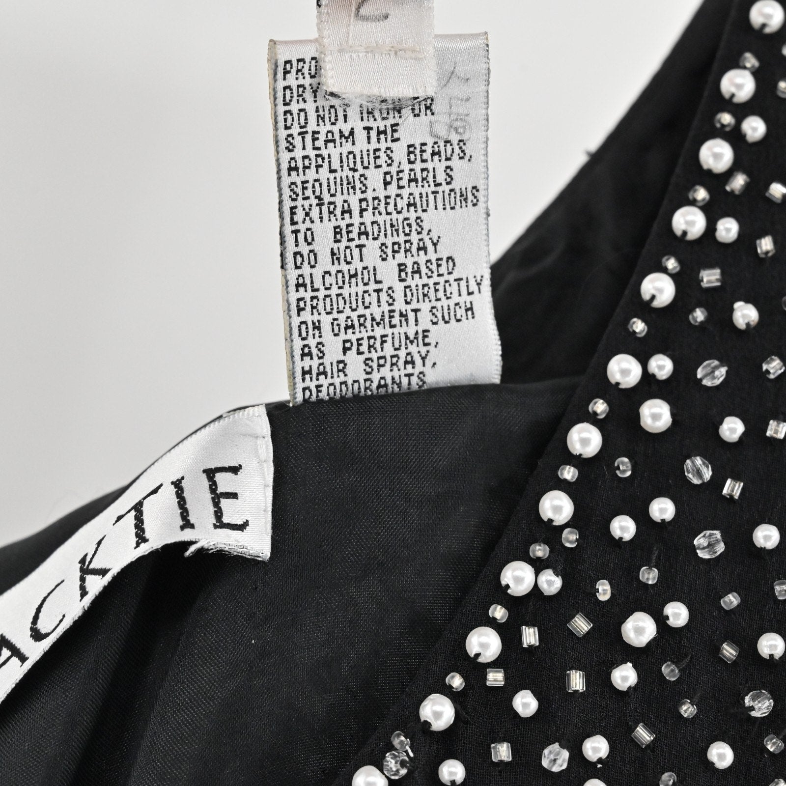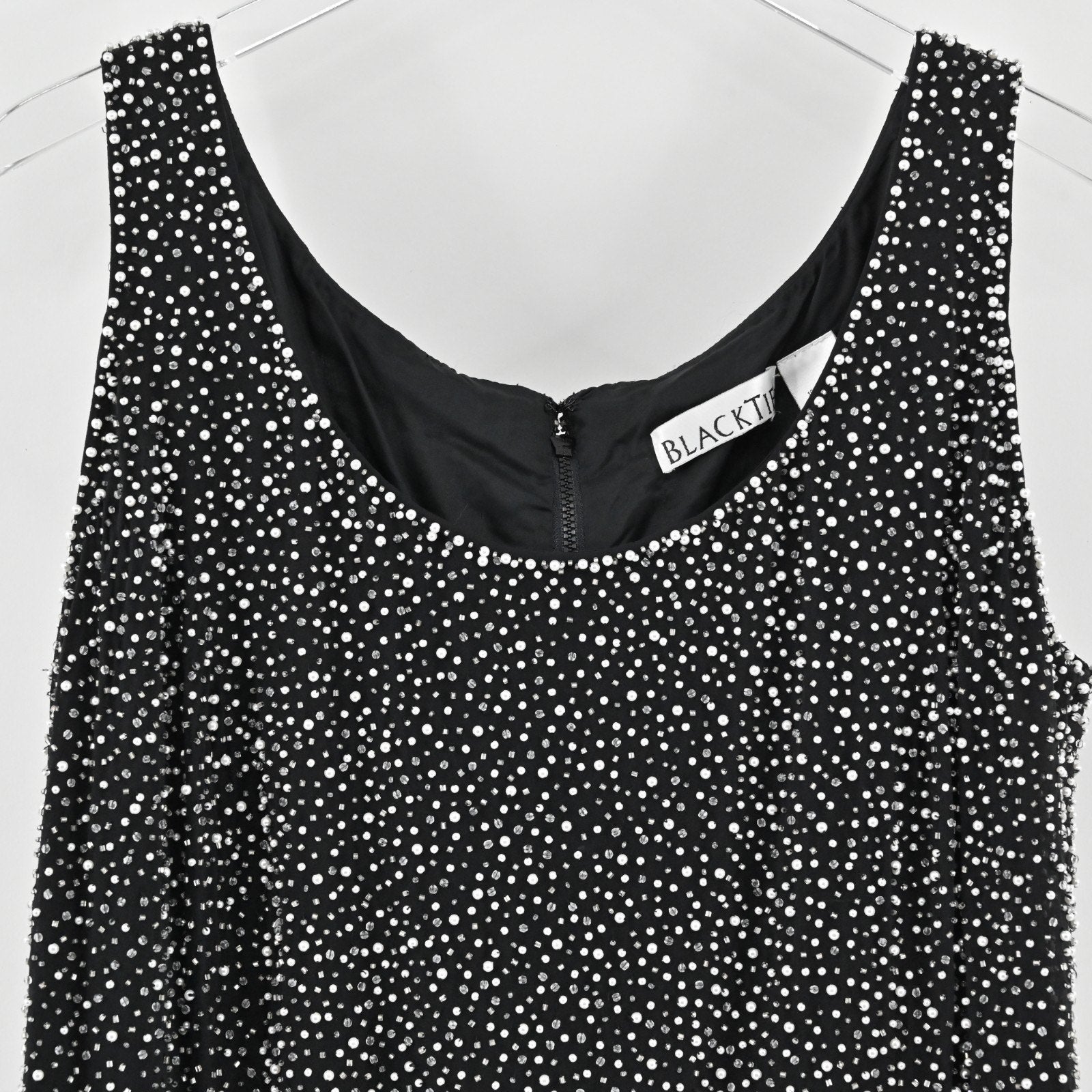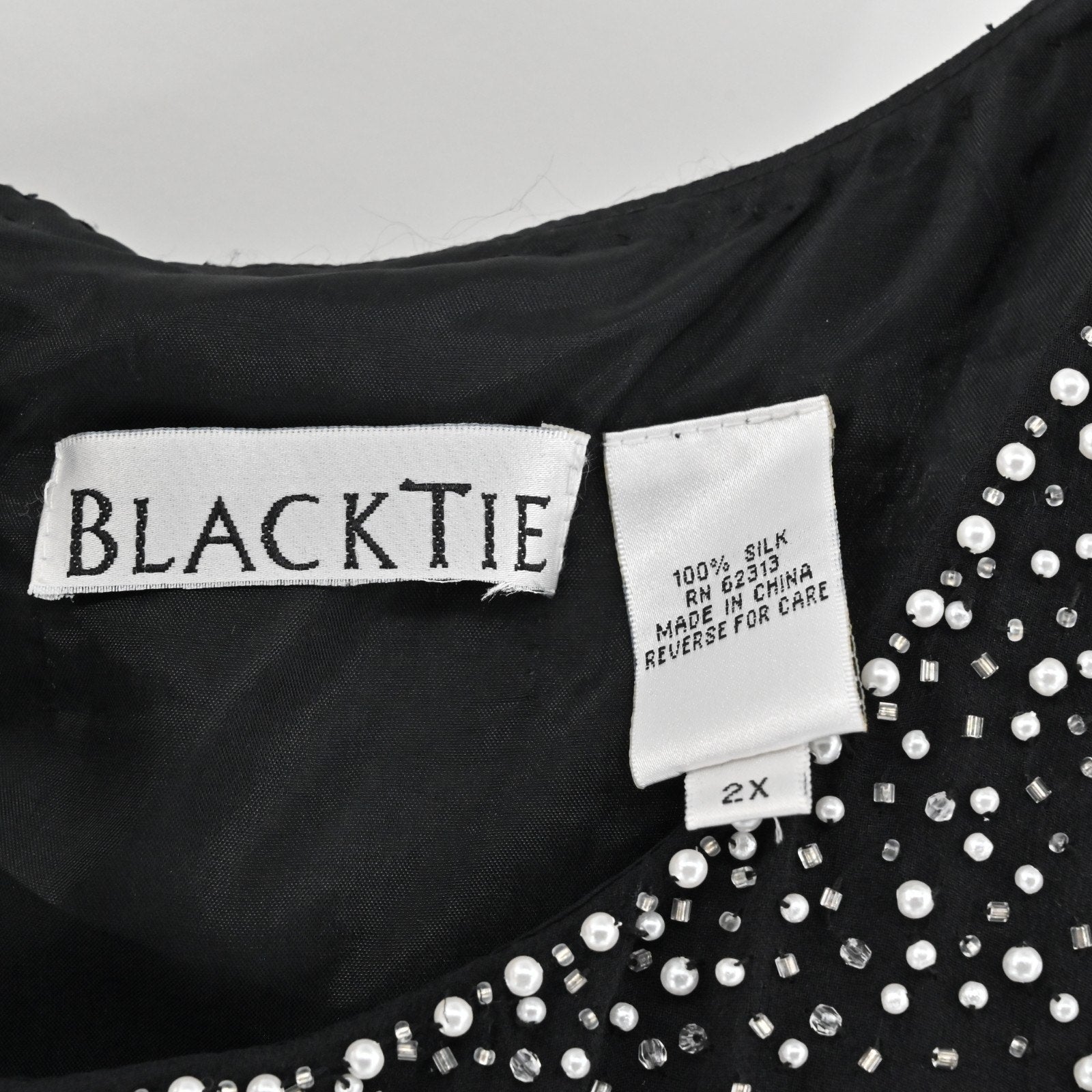Vtg Beaded Silk Top Womens Size 2X Sleeveless Embellished Oleg Cassini Black Tie