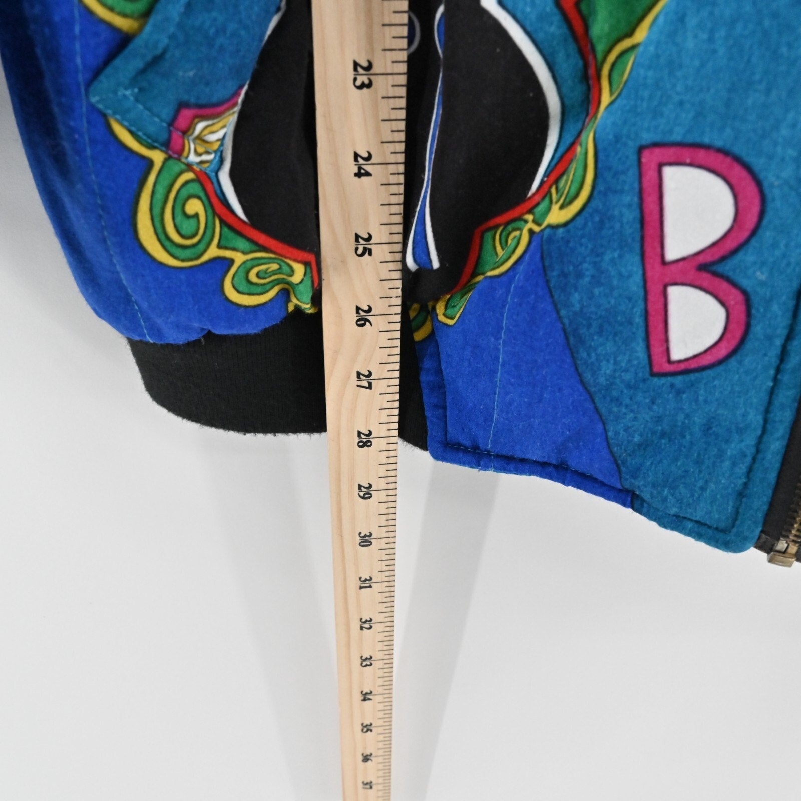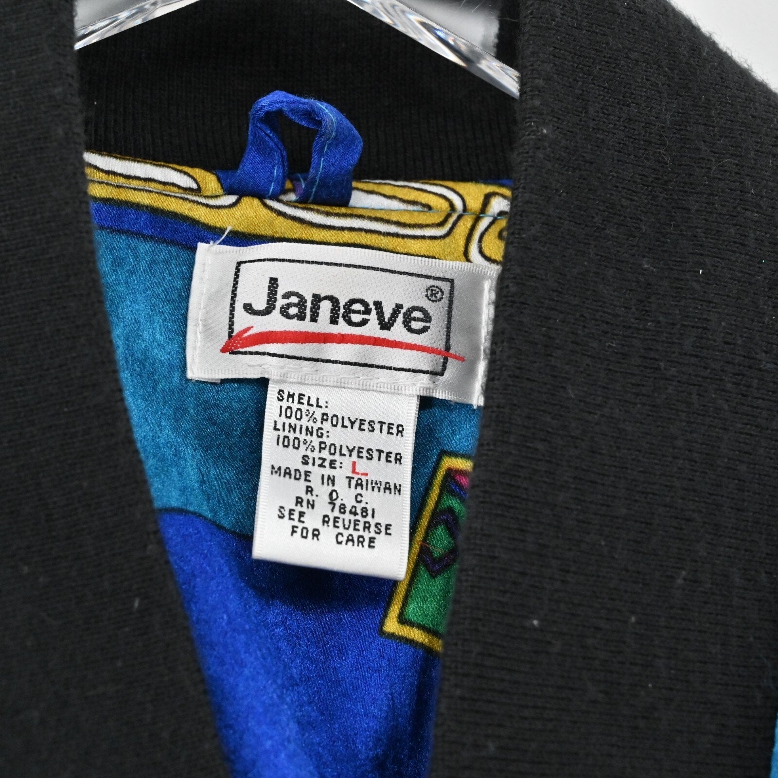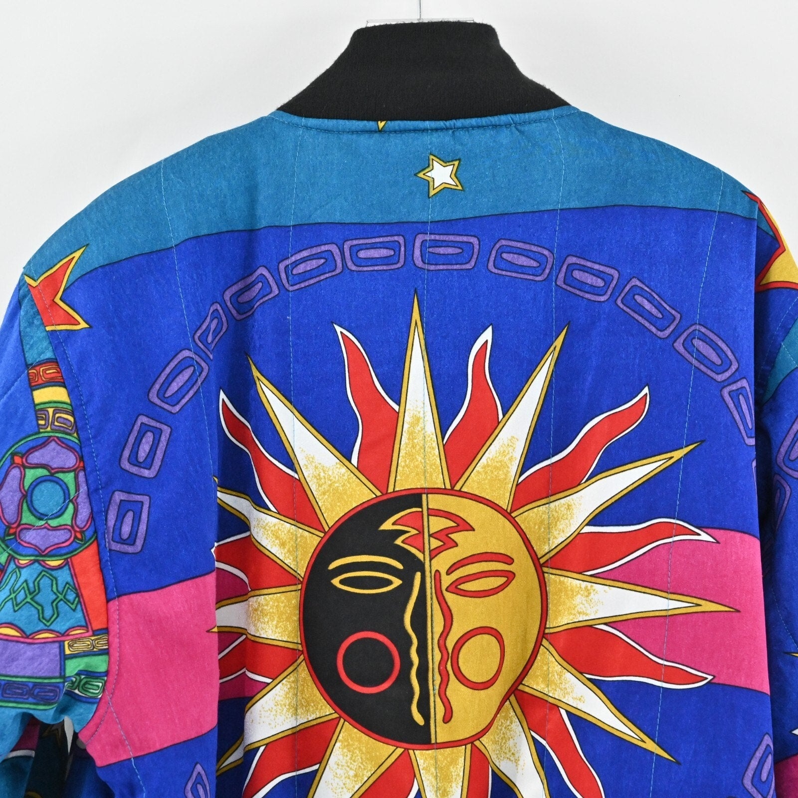 Vtg Bomber Jacket Womens Size L Dopamine Maximalist Sun Star Print Janeve Boho