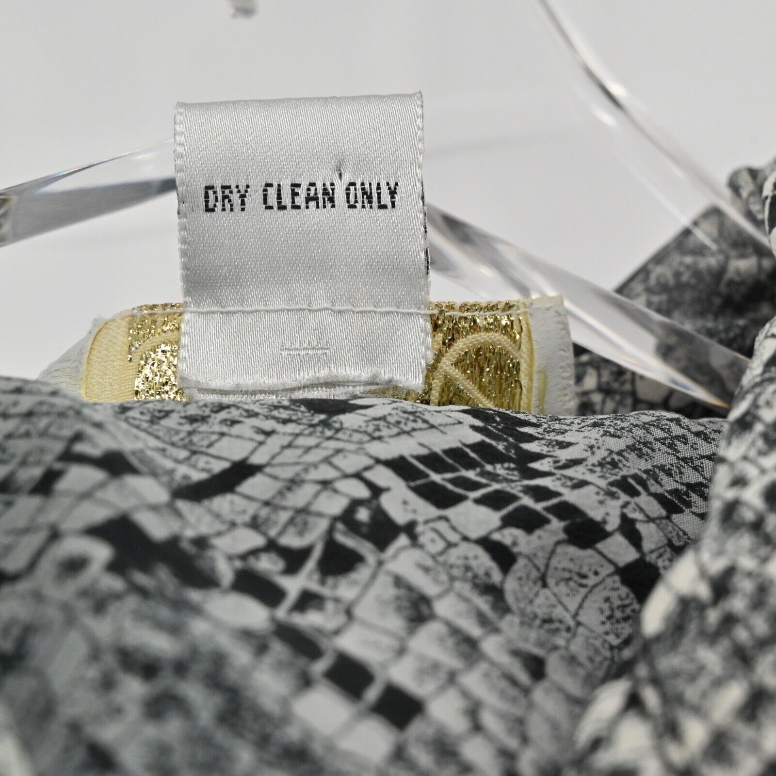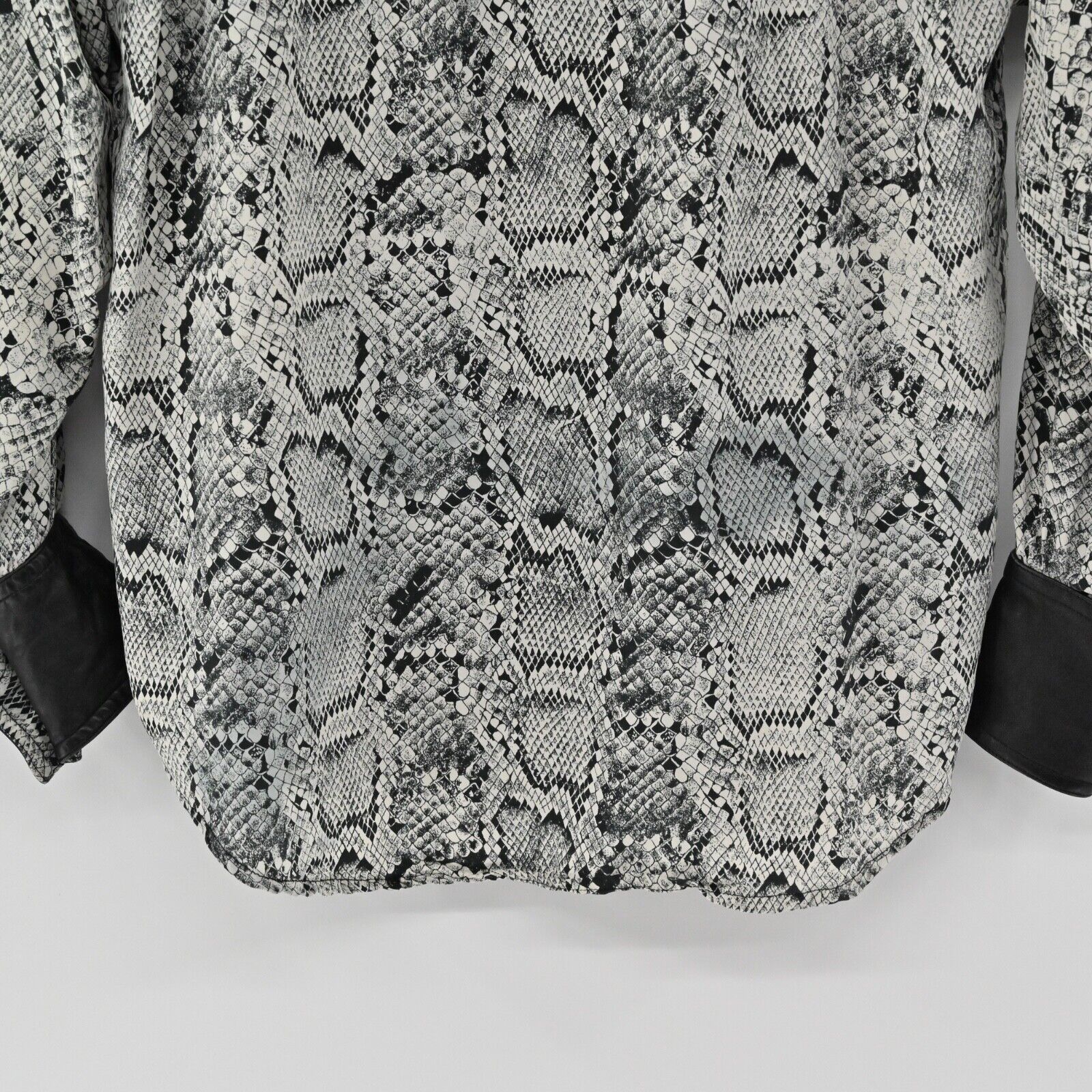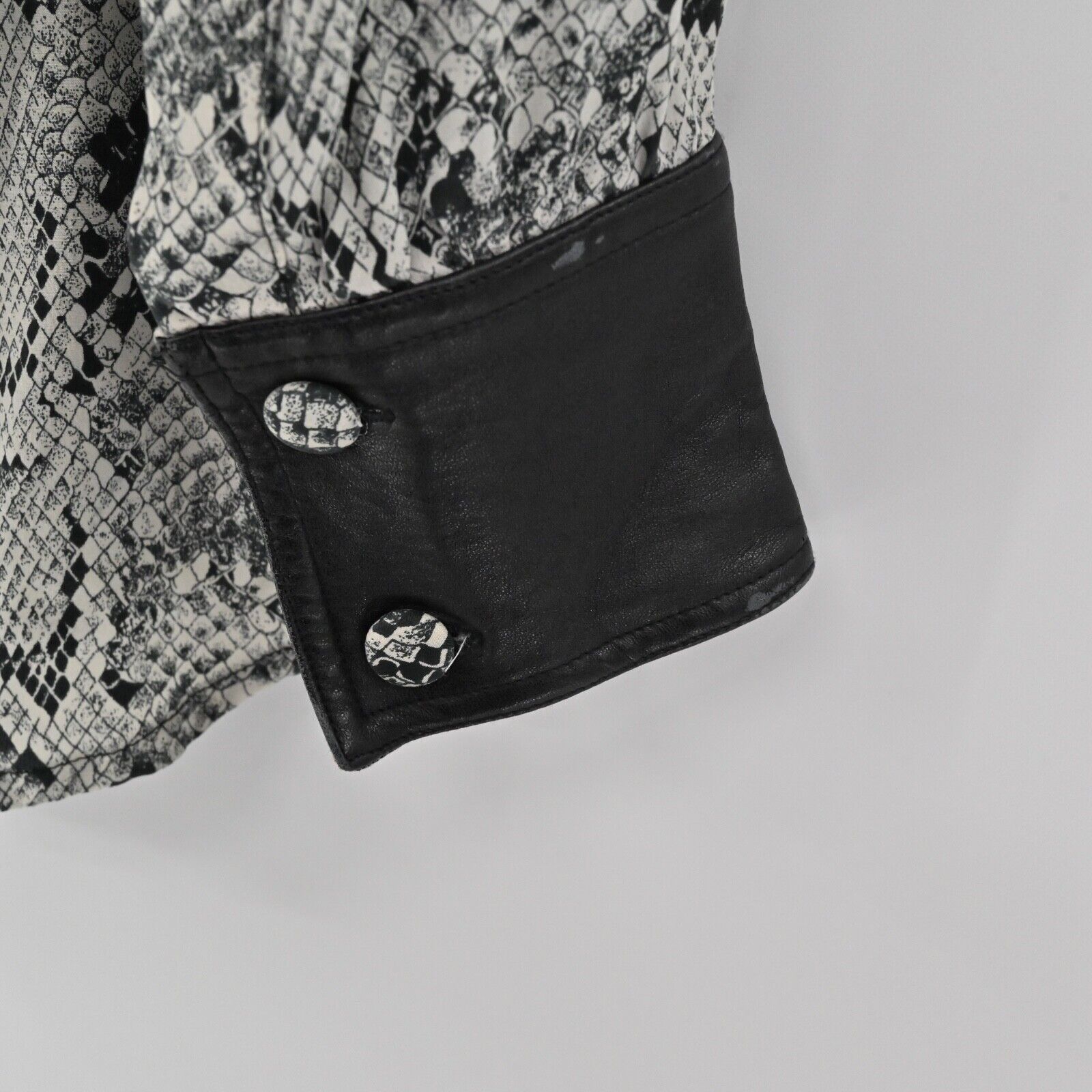 Vintage CACHE Top Women's Size Medium Black & White Snakeskin Print 100% Silk With Faux Leather Accents Collared Long Sleeve Button Cuffs Concealed Button Up Front Closure 90’s 1990’s Retro Grunge Glam Office Career