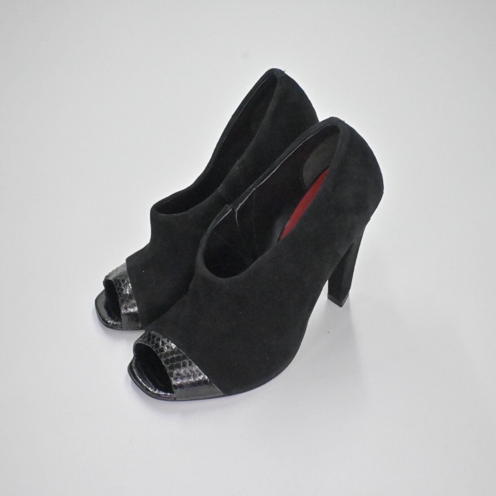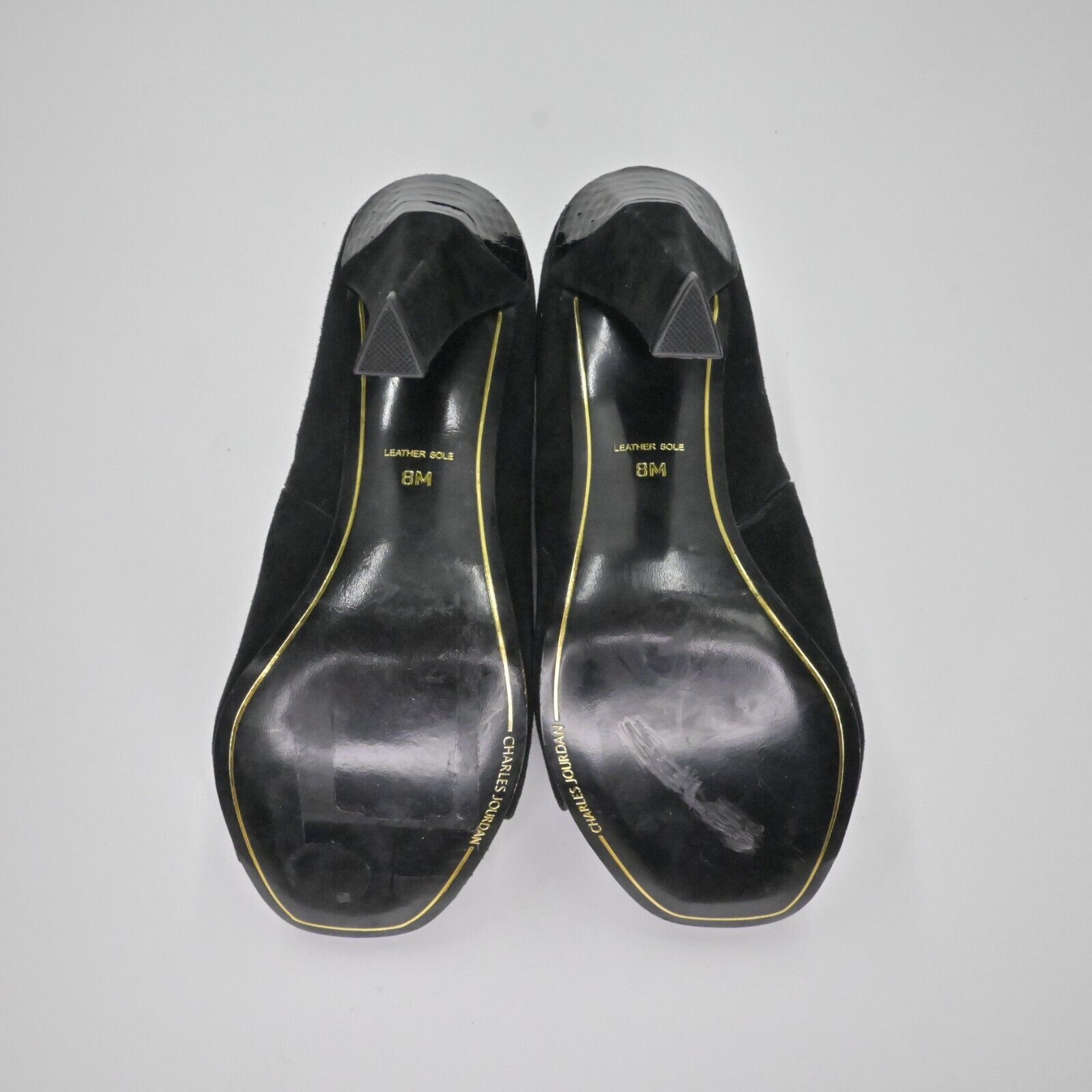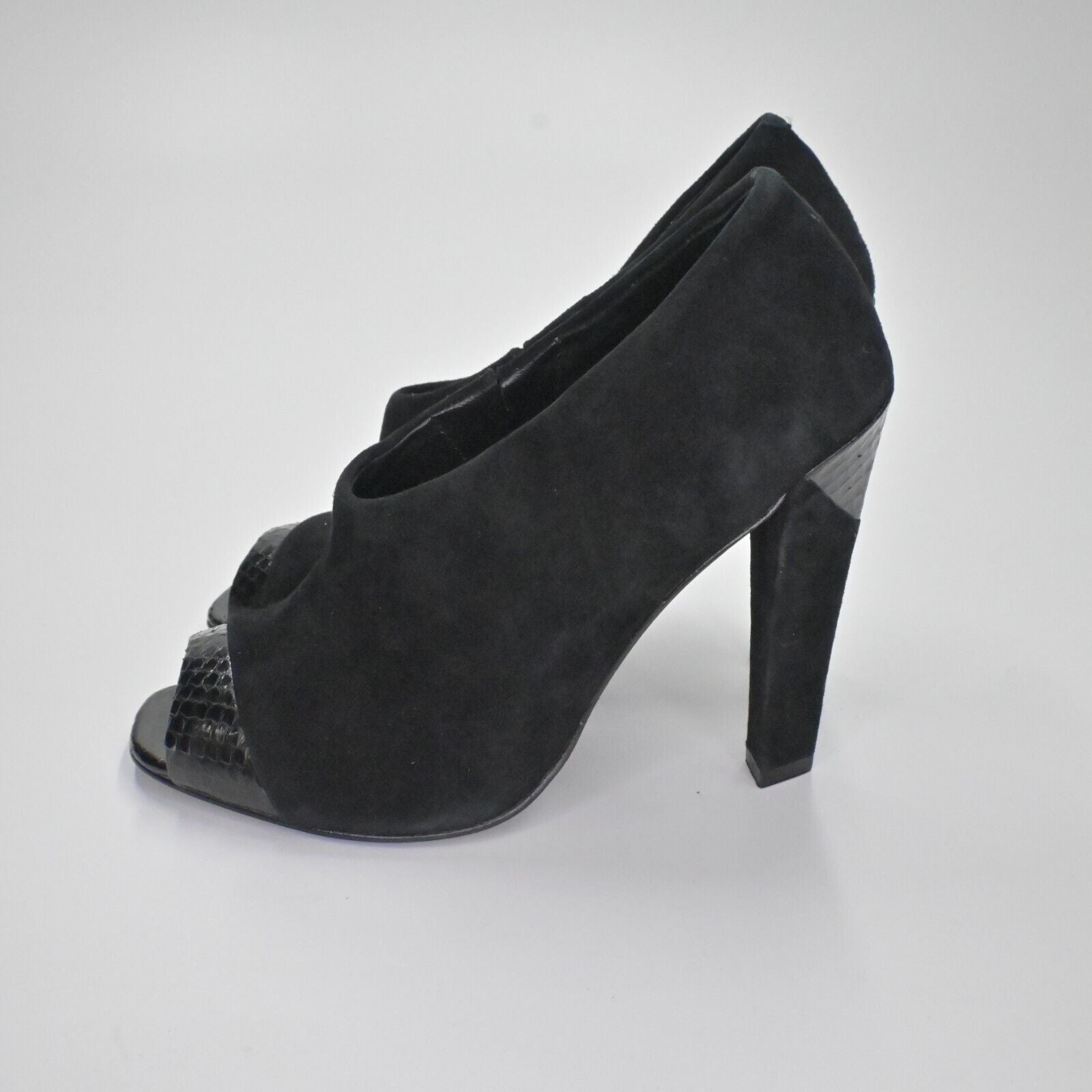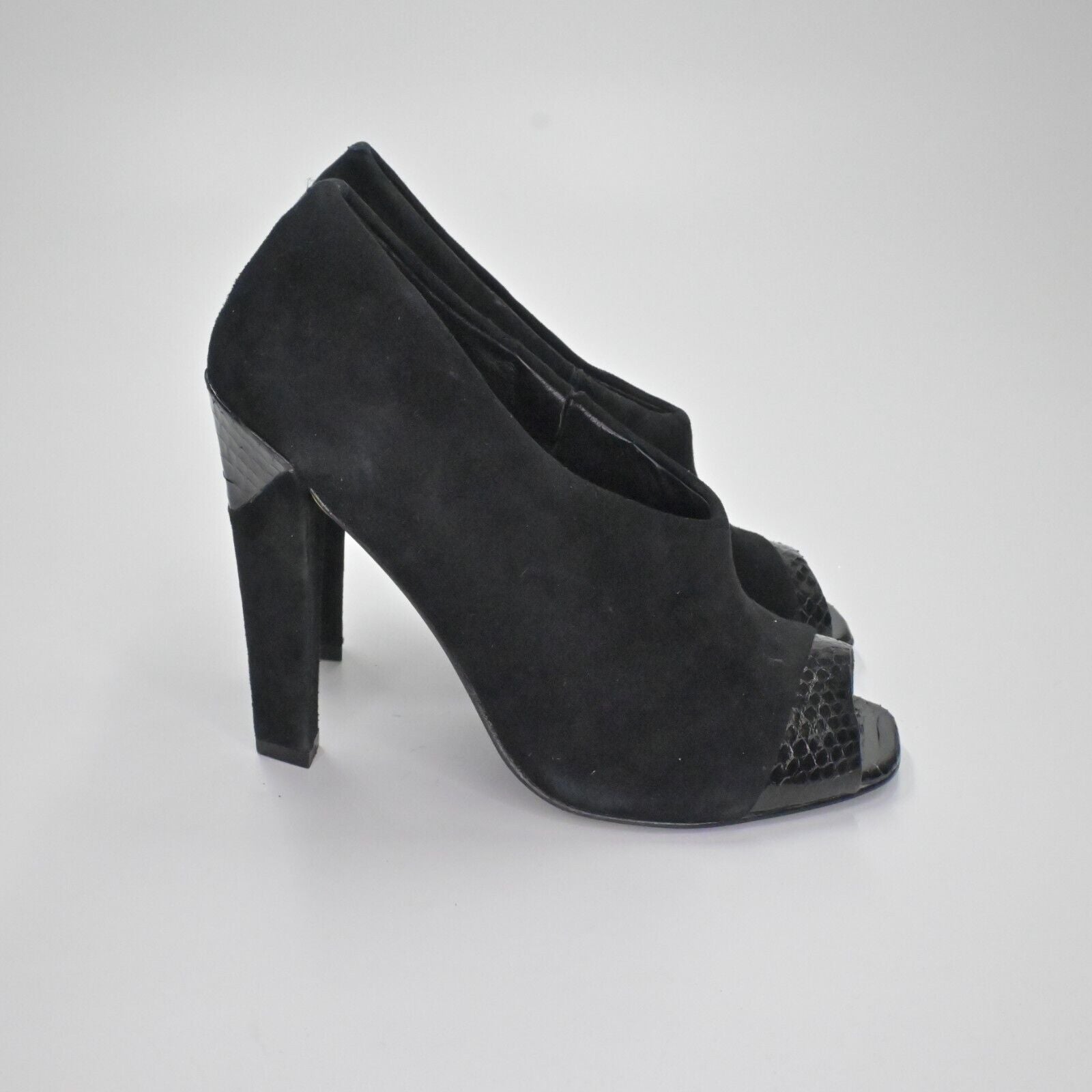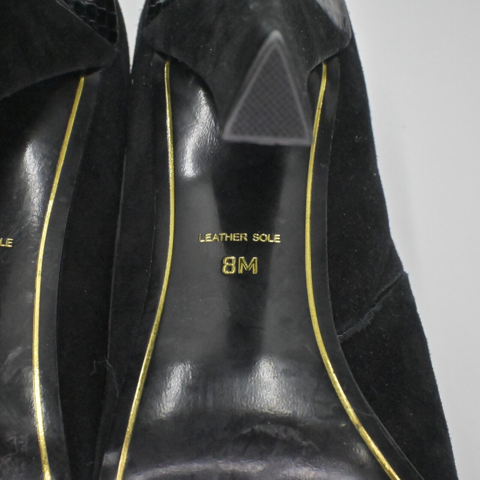 Vtg CHARLES JOURDAN Heels Womens Size 8 Black Suede Snakeskin Embossed Peep Toe