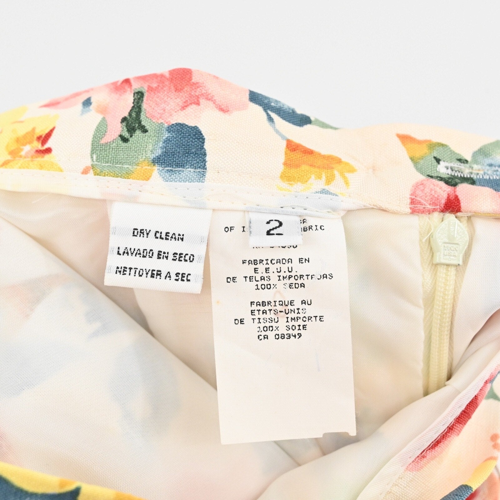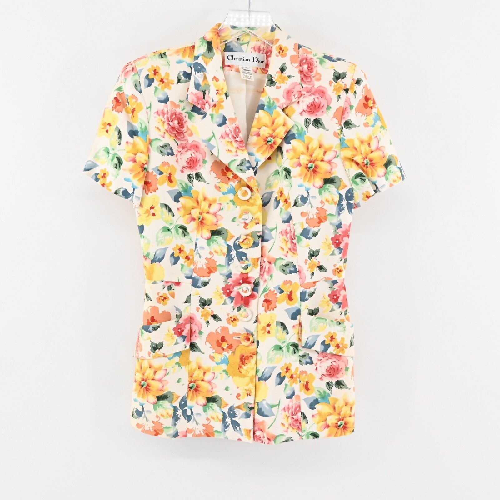 Vtg CHRISTIAN DIOR Womens Floral Skirt Suit Sz 2 Silk Short Sleeve Retro USA 80s