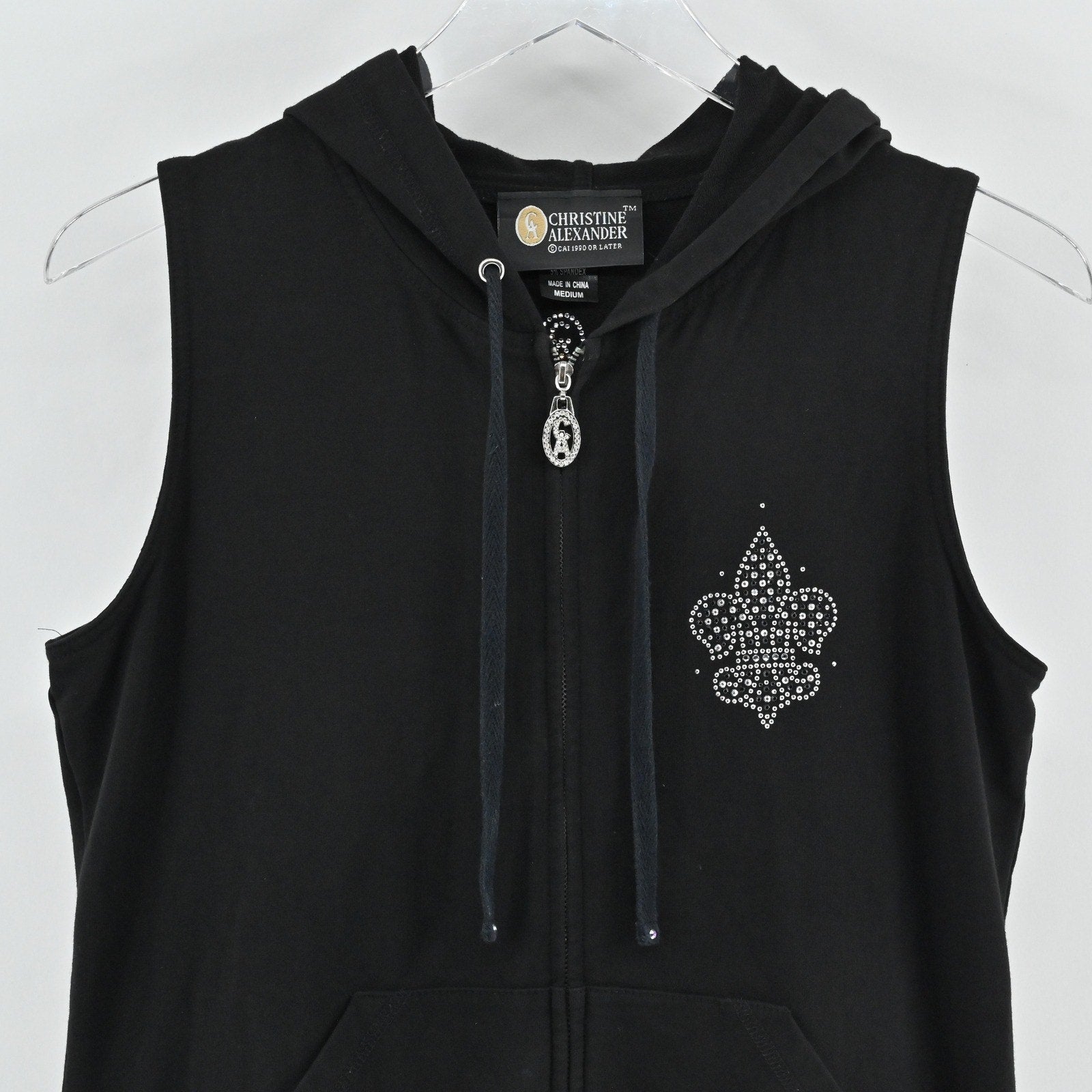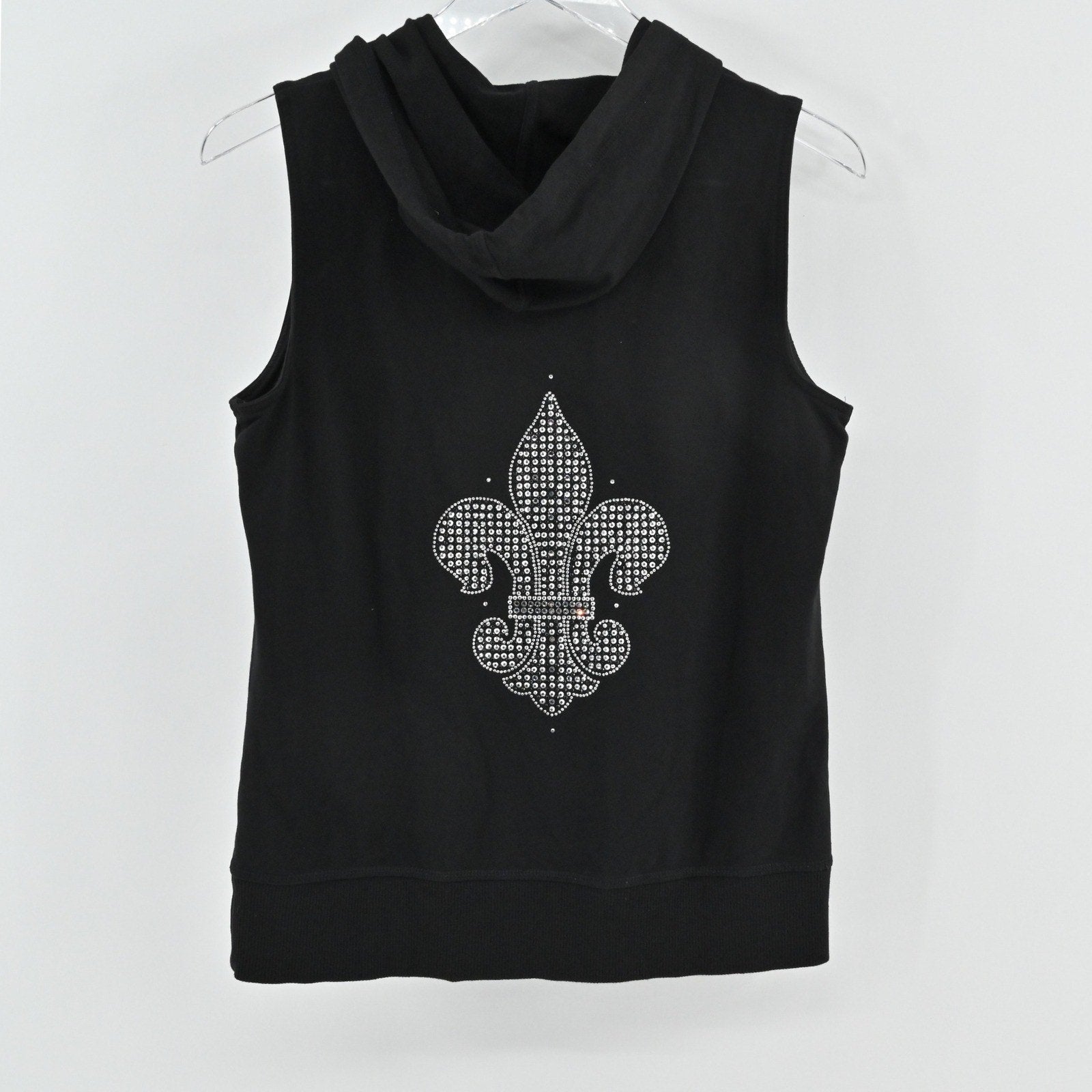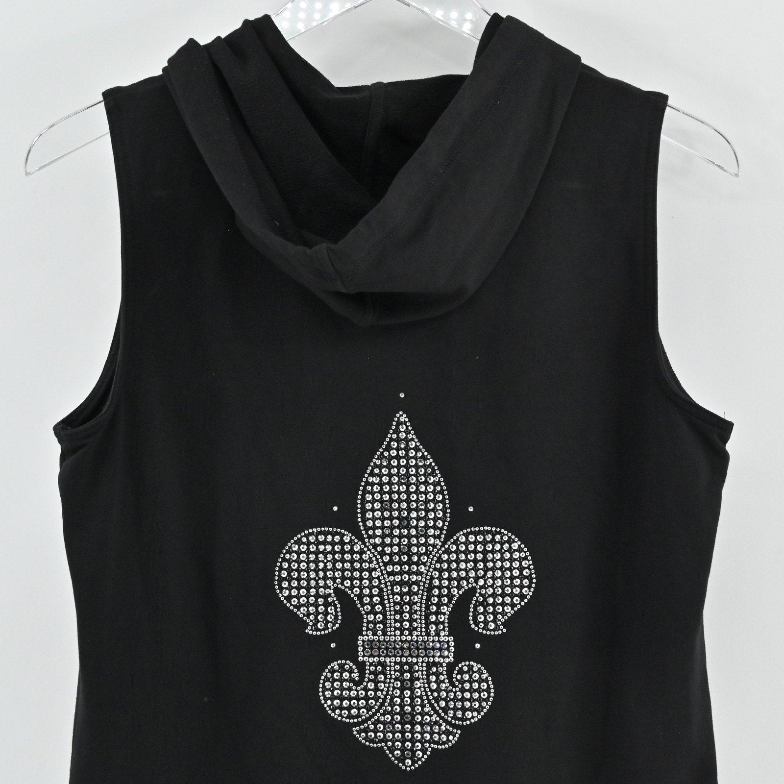 Vtg Christine Alexander Womens Rhinestone Hoodie Size M Fleur de Lis Sleeveless