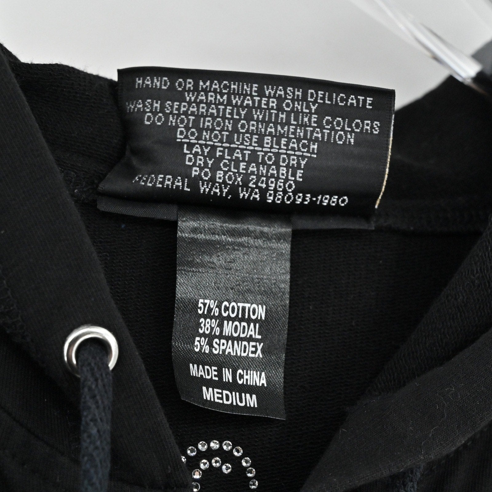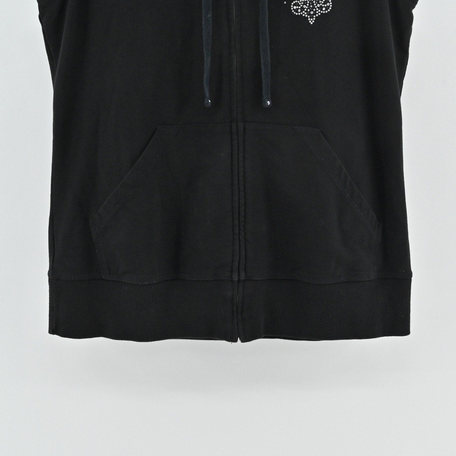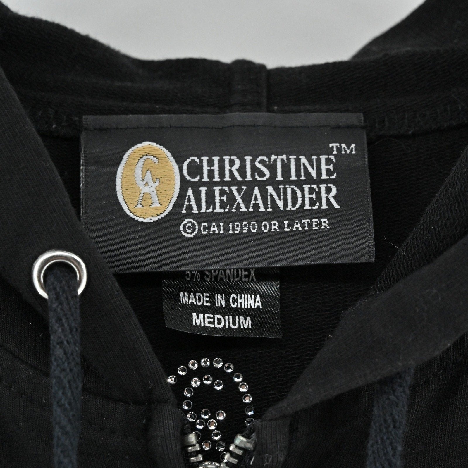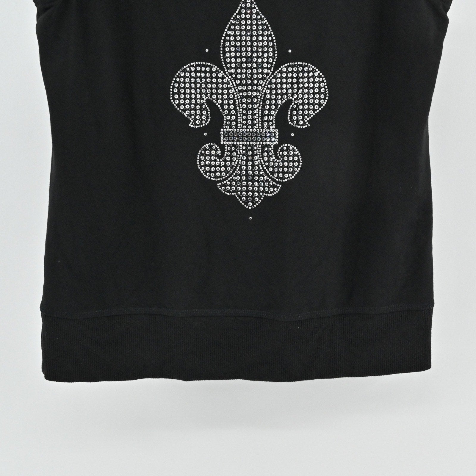 Vtg Christine Alexander Womens Rhinestone Hoodie Size M Fleur de Lis Sleeveless