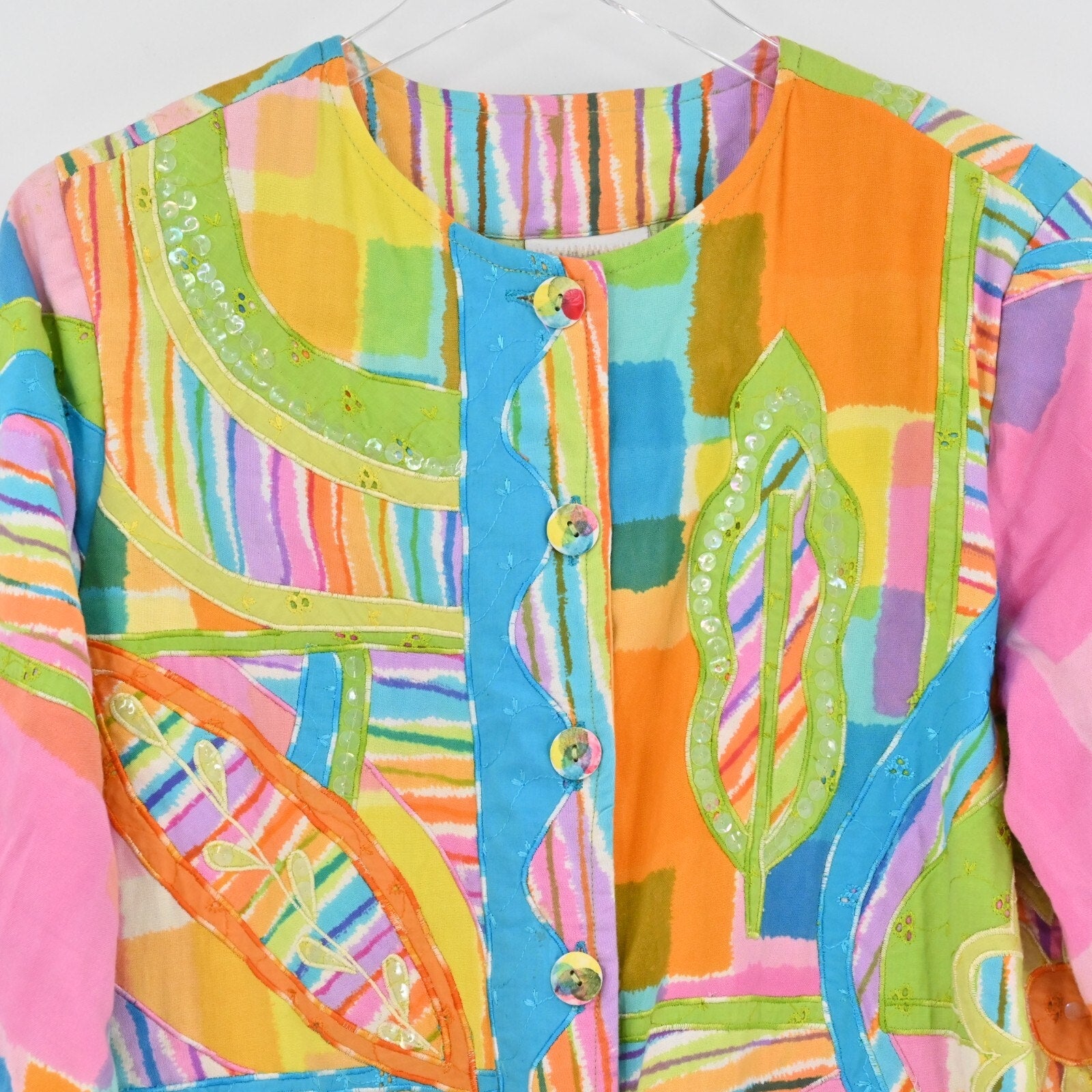 Vtg COLDWATER CREEK Floral Sequin Womens Jacket Size S Hippie Colorful Retro 90s