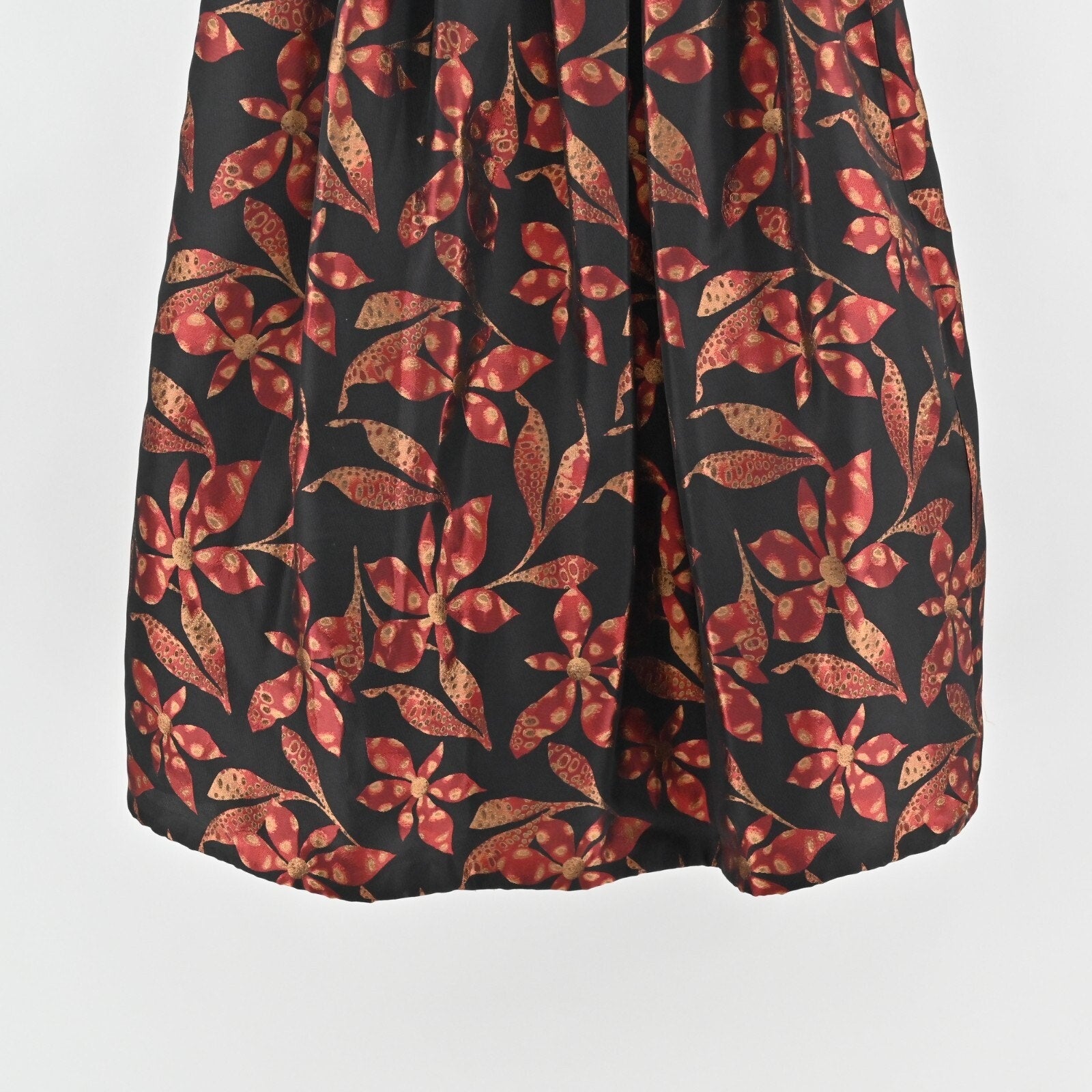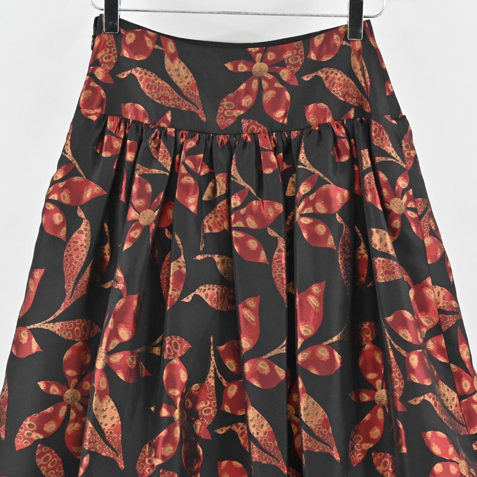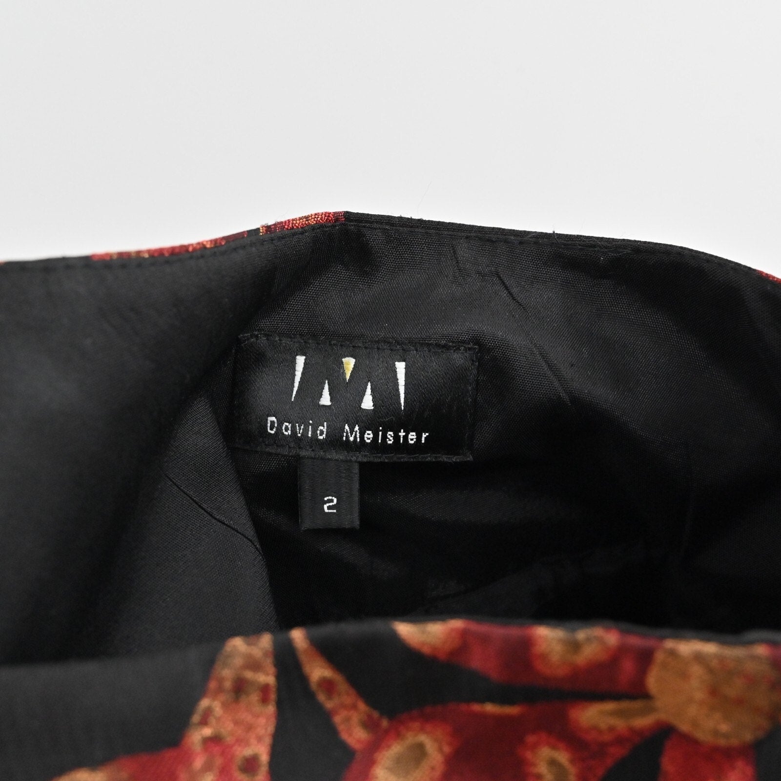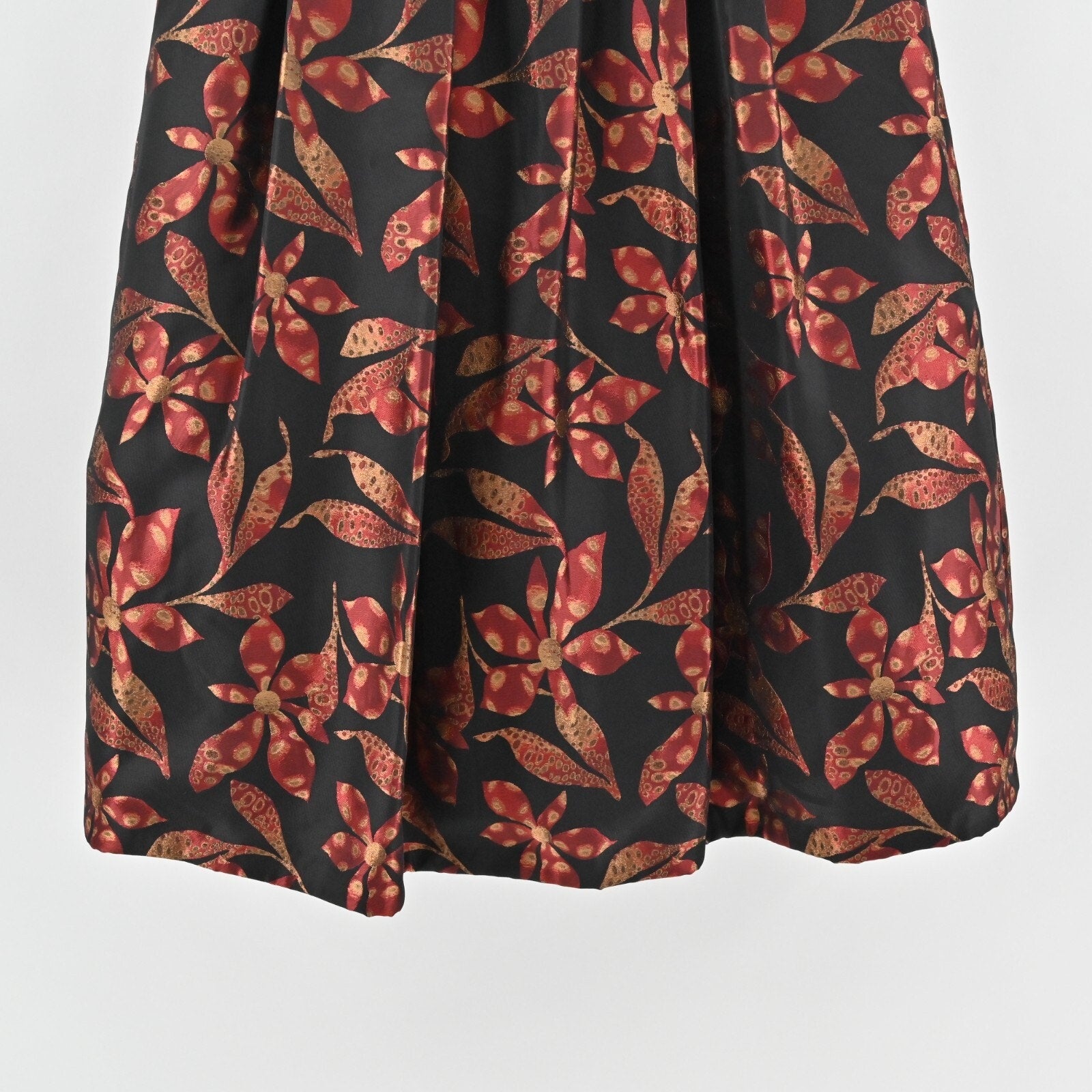 Vtg DAVID MEISTER Maxi Skirt Size 2 Pleated Black Red Floral Print High Waisted