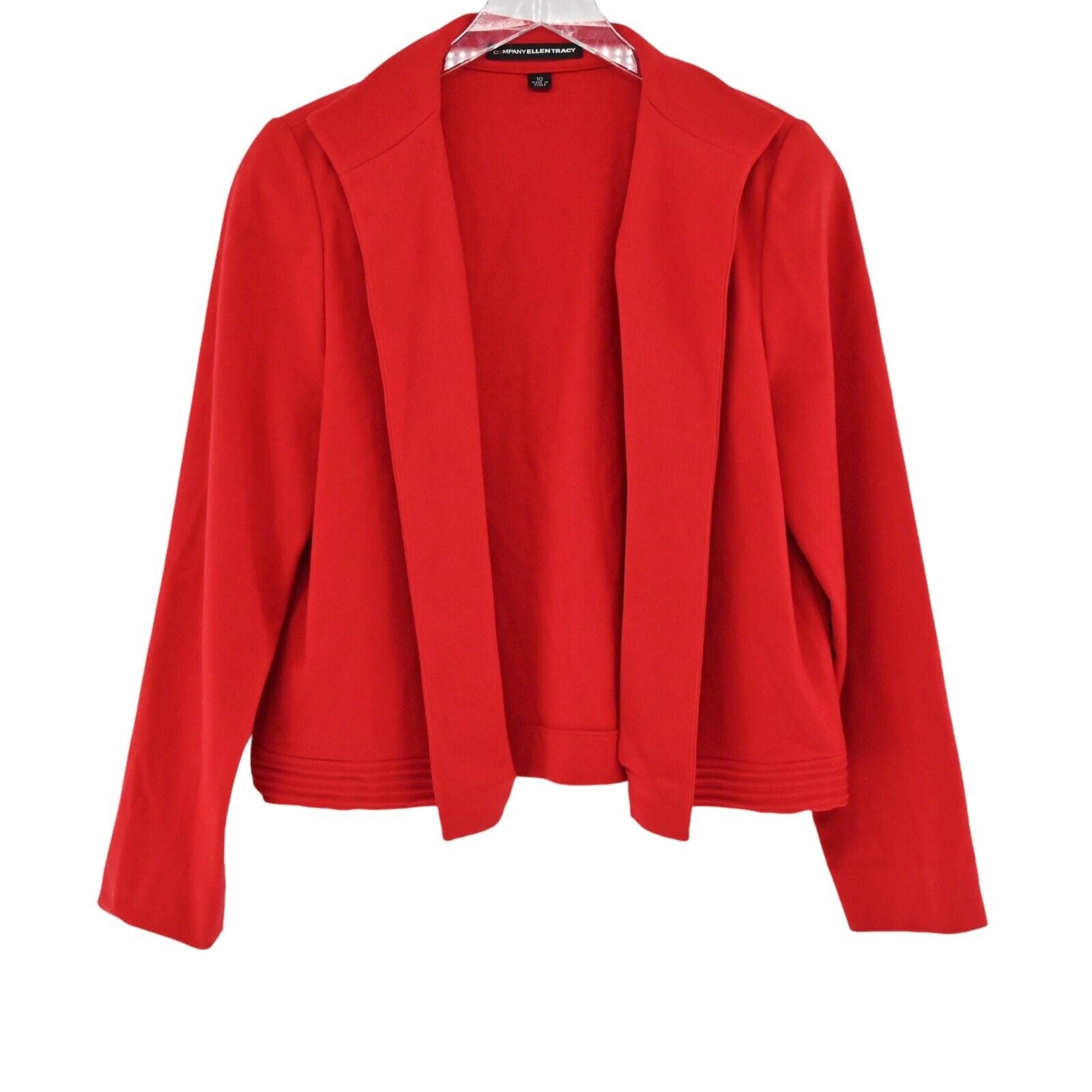Vtg ELLEN TRACY Jacket Womens Size 10 Red Wool Blend Drape Open Front Career 00s