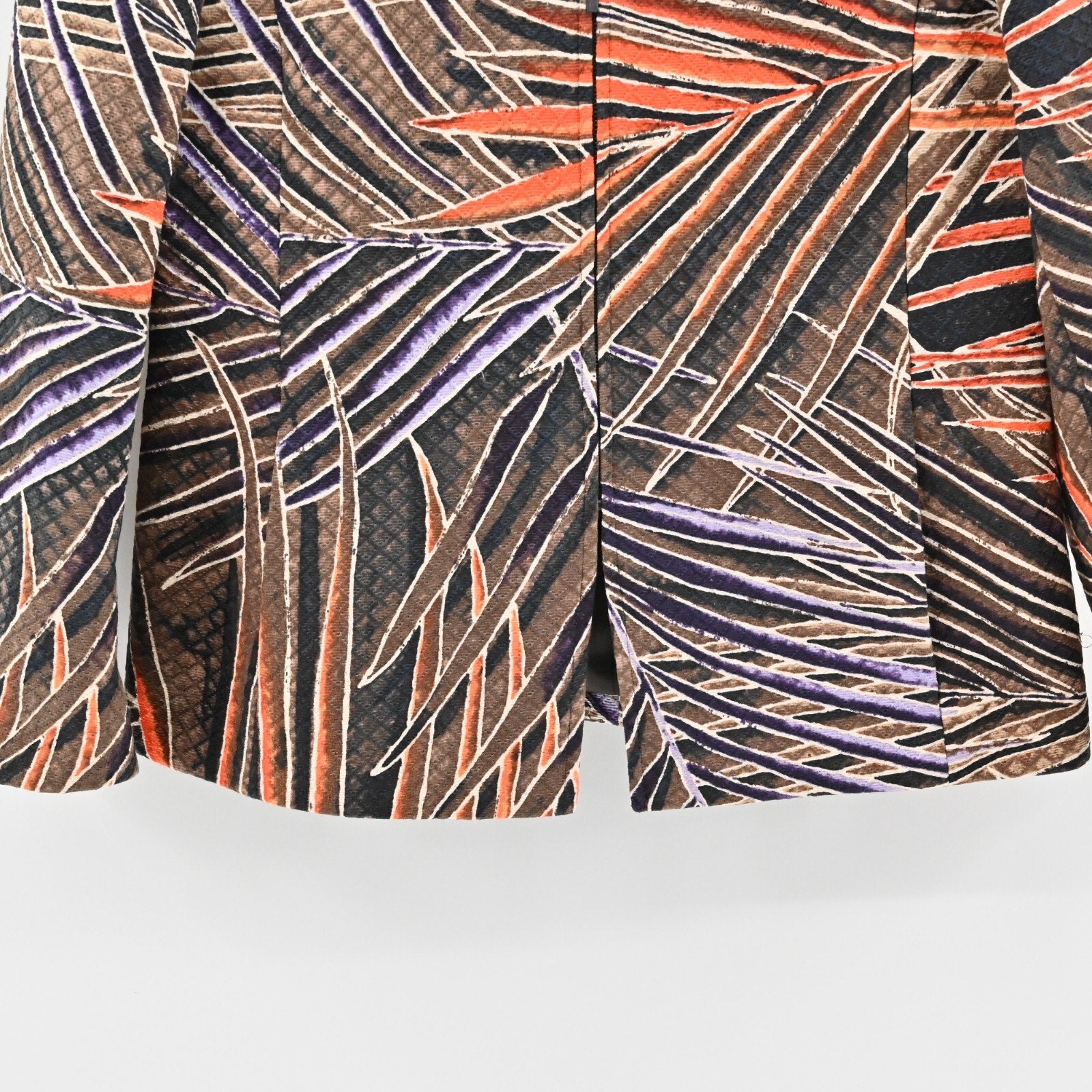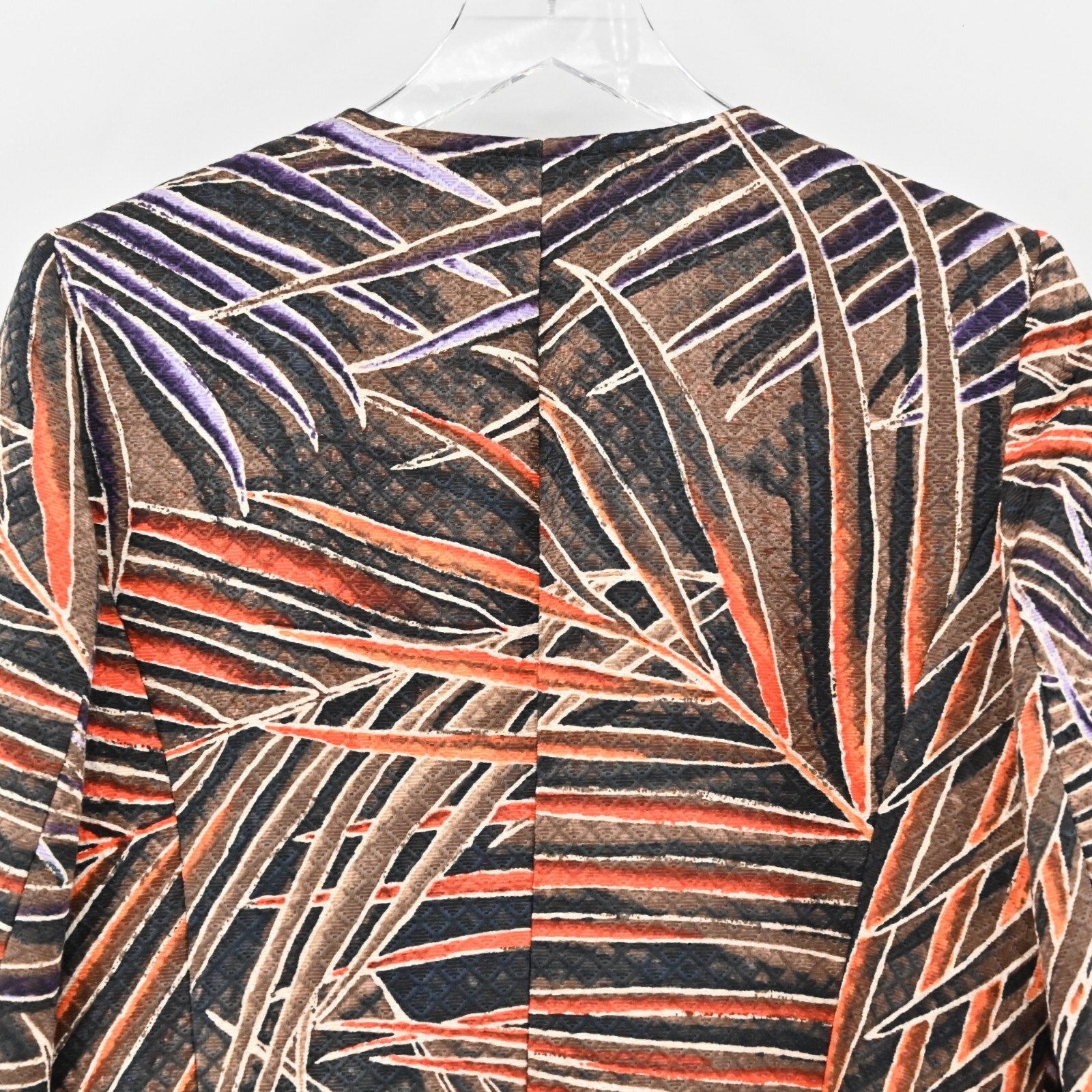Vtg ELLEN TRACY LINDA ALLARD Womens Silk Jacket Size 10 Leaf Print Collarless