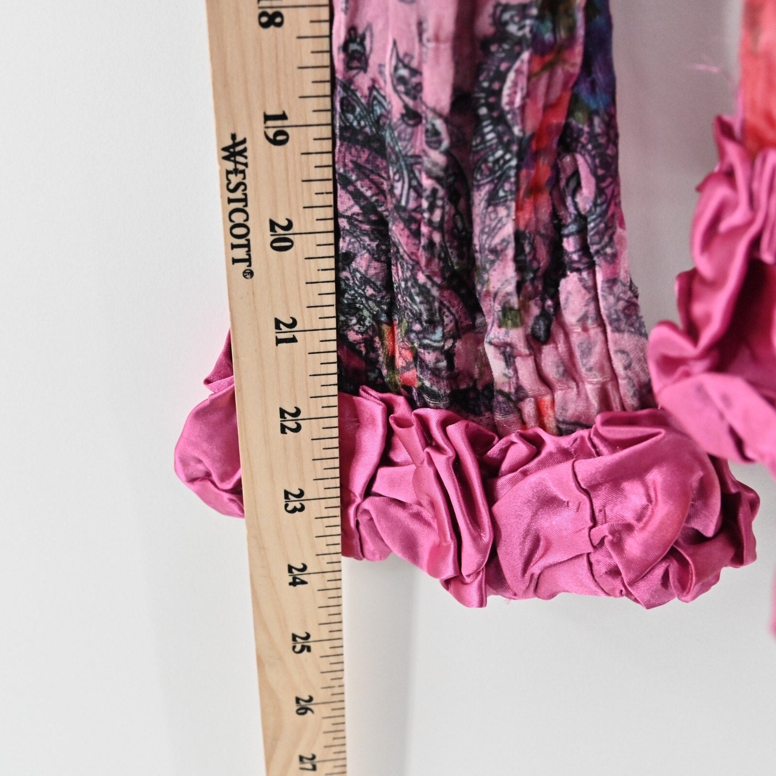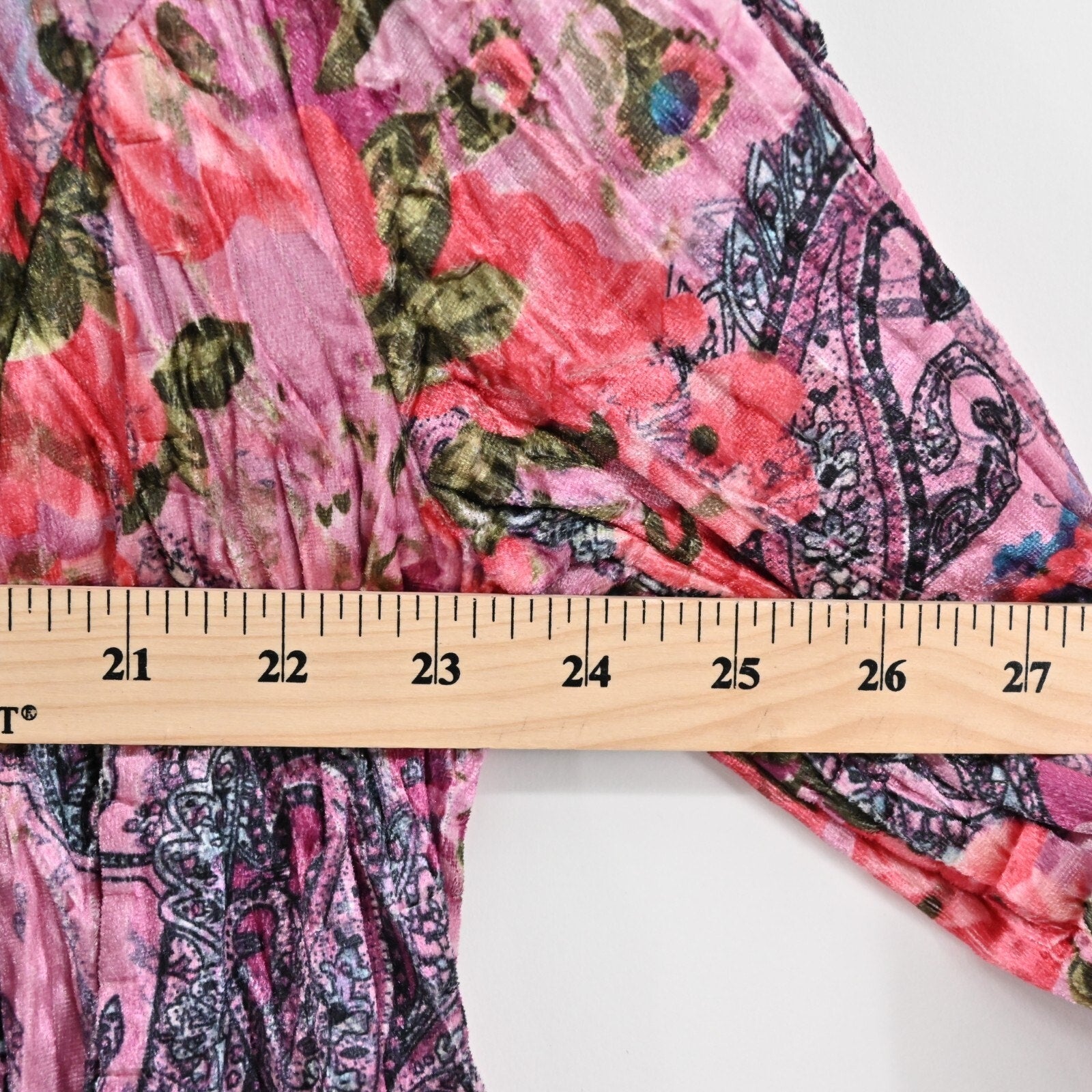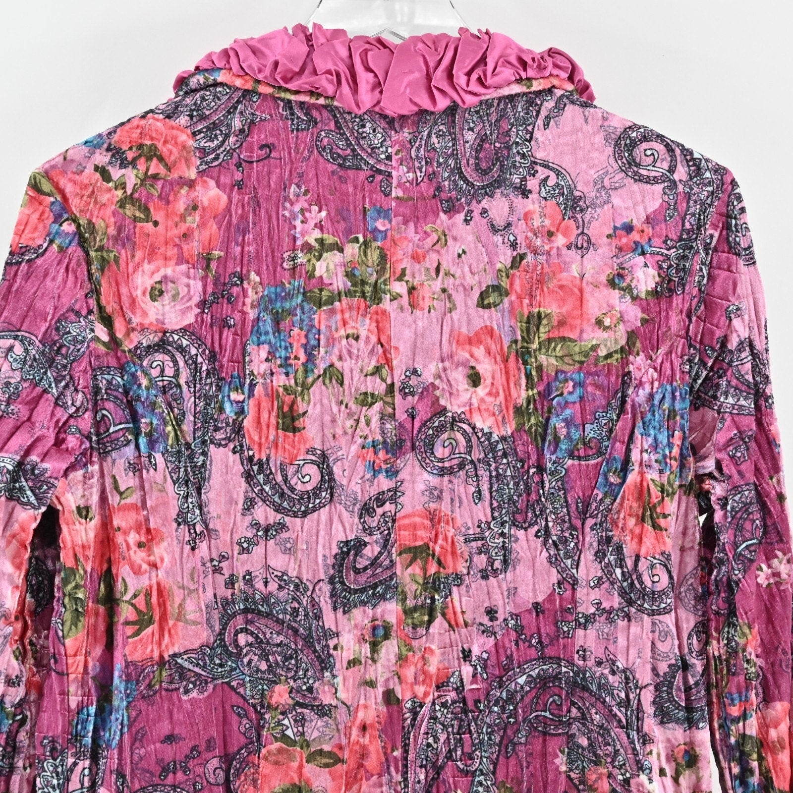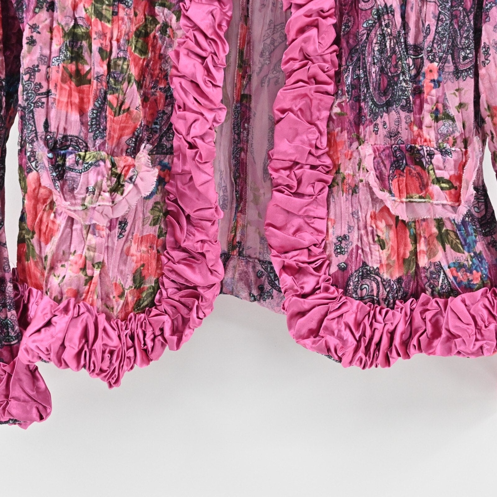 Vtg FANTAZIA Womens Velvet Jacket Size M Pink Floral Paisley Crinkle Ruffle Y2k