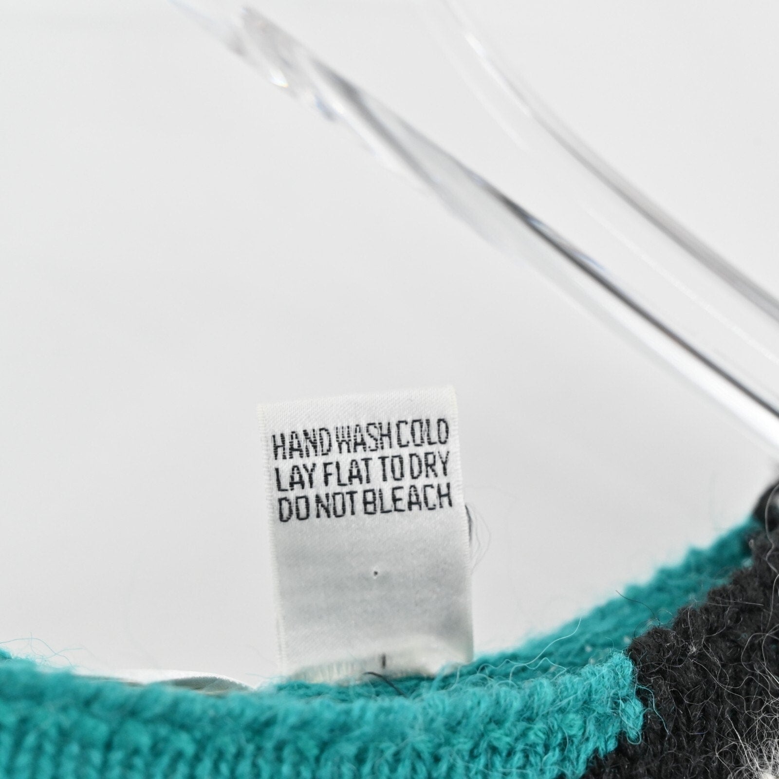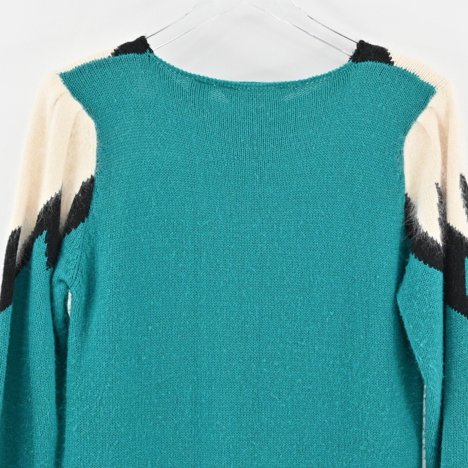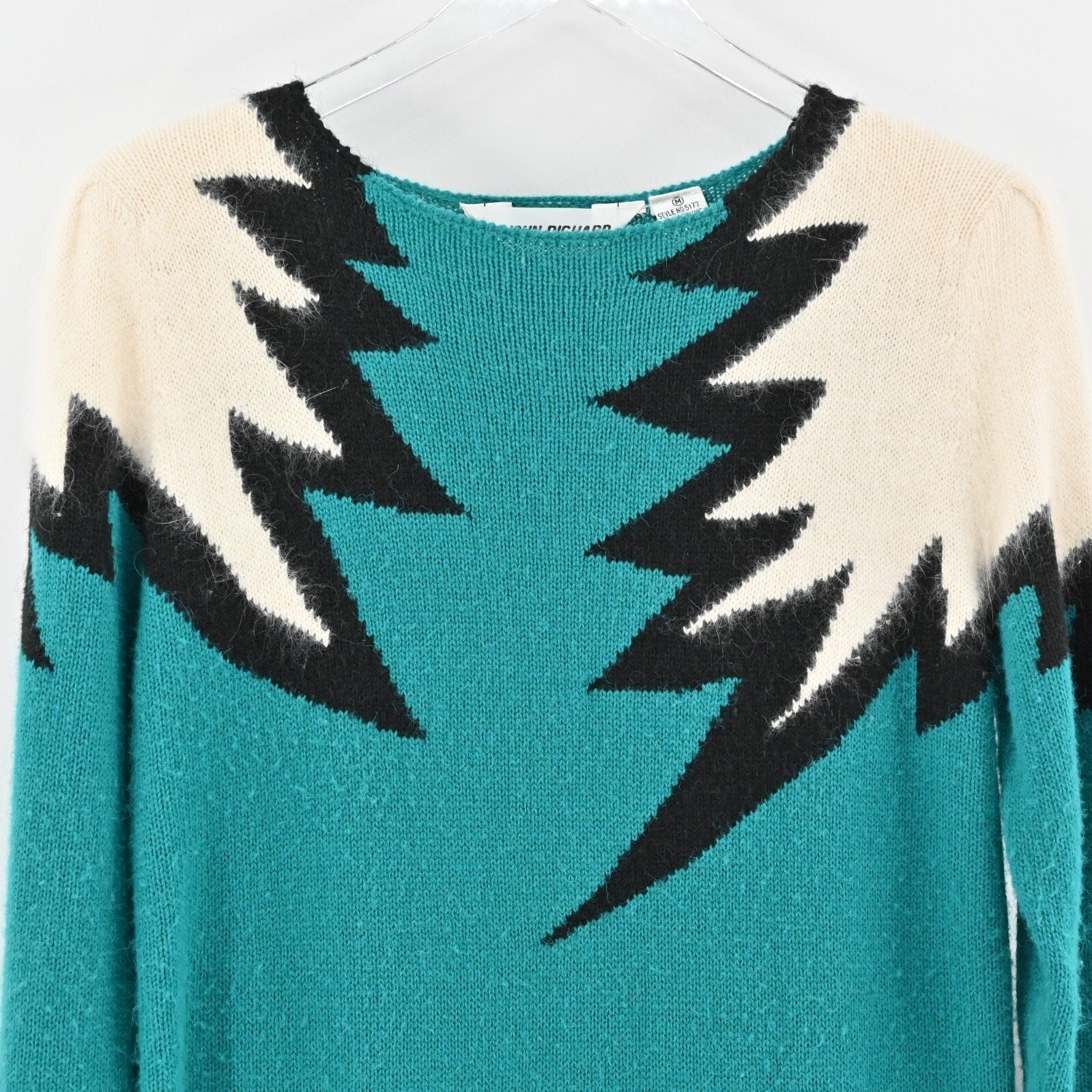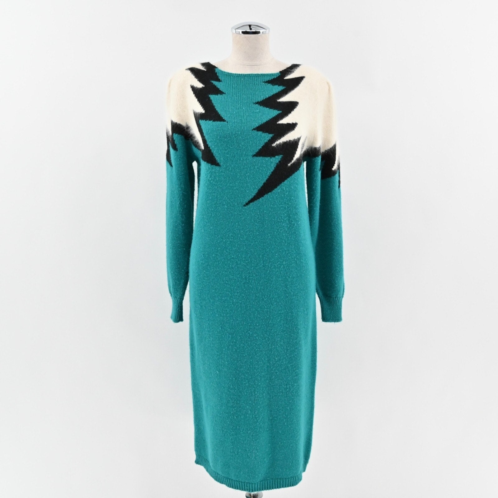 Vtg JOHN RICHARD Sweater Dress Angora Hair Sz M Knit Zig Zag Lightning Teal 80s