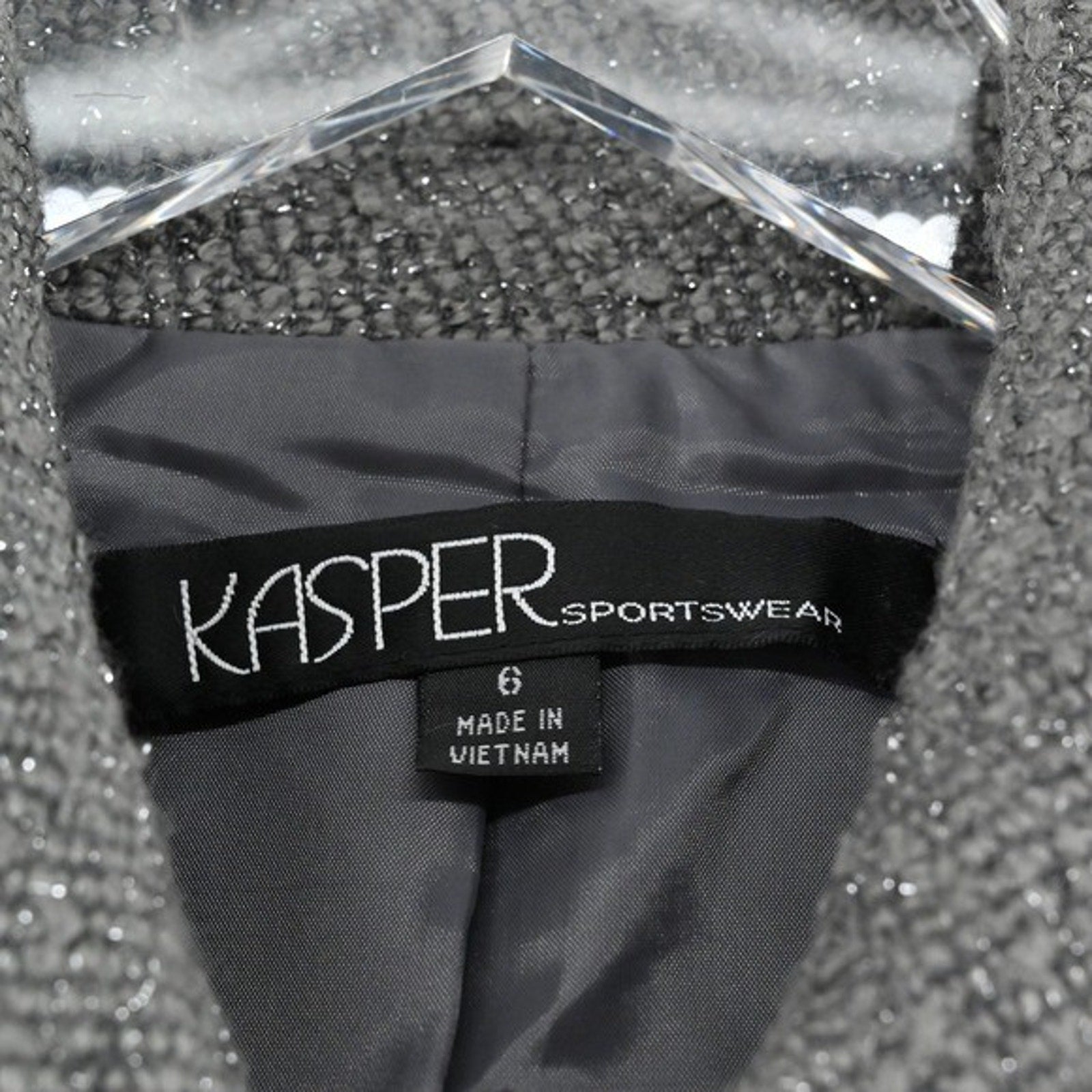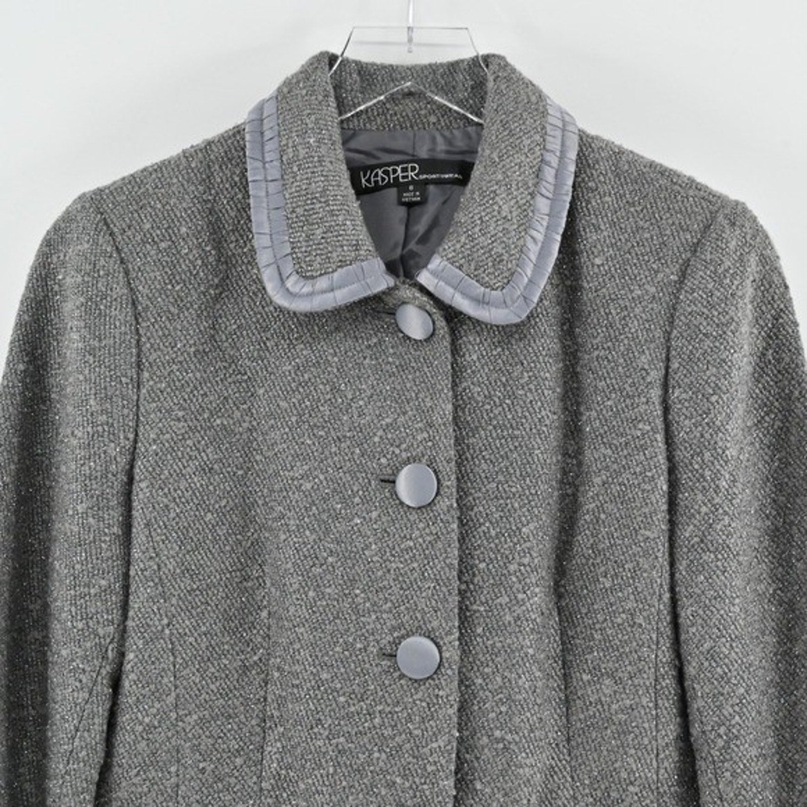 Vtg Kasper Womens Tweed Blazer Size 6 Gray Wool Metallic Career Business Jacket