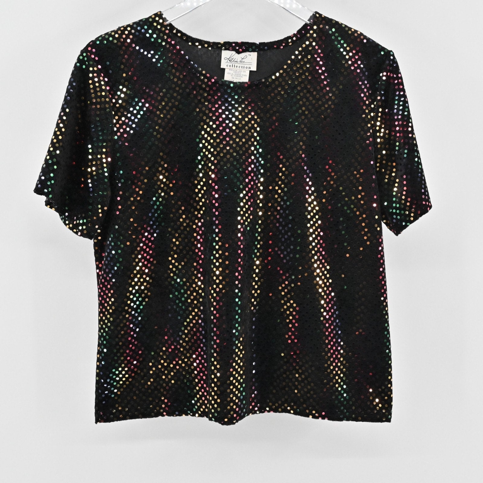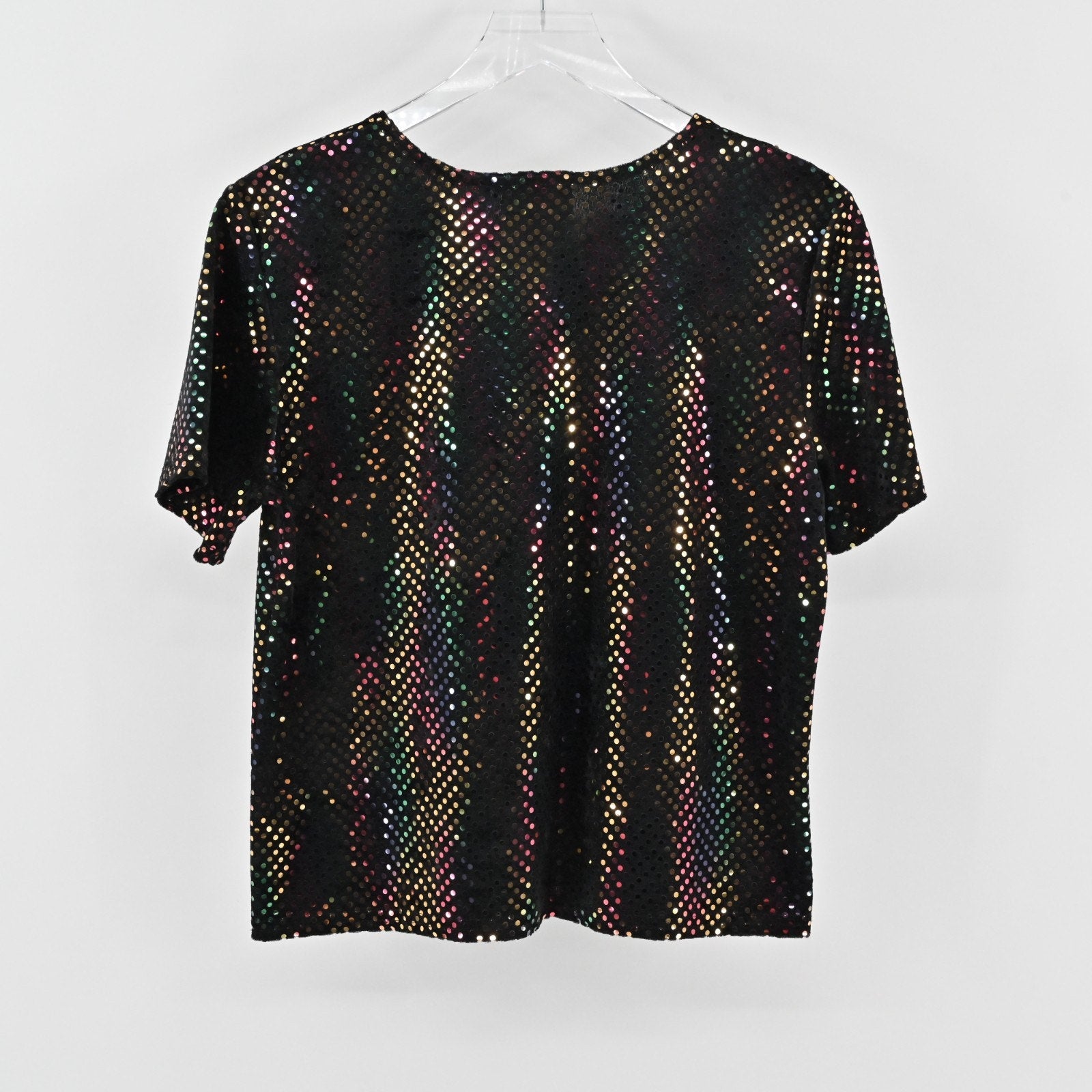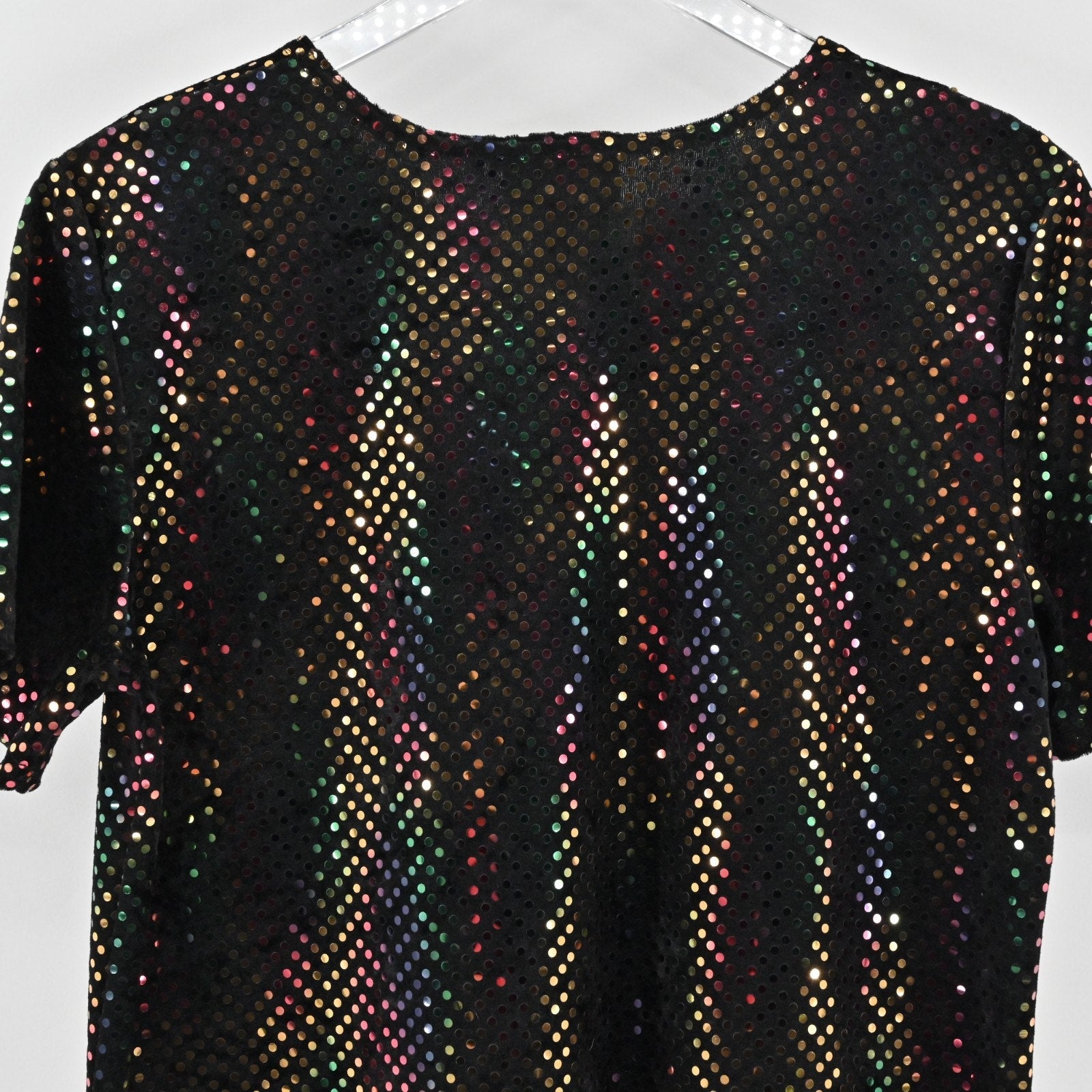 Vtg Kathie Lee Womens Rainbow Sequin Velvet Top Size M Black Retro Dopamine 80s
