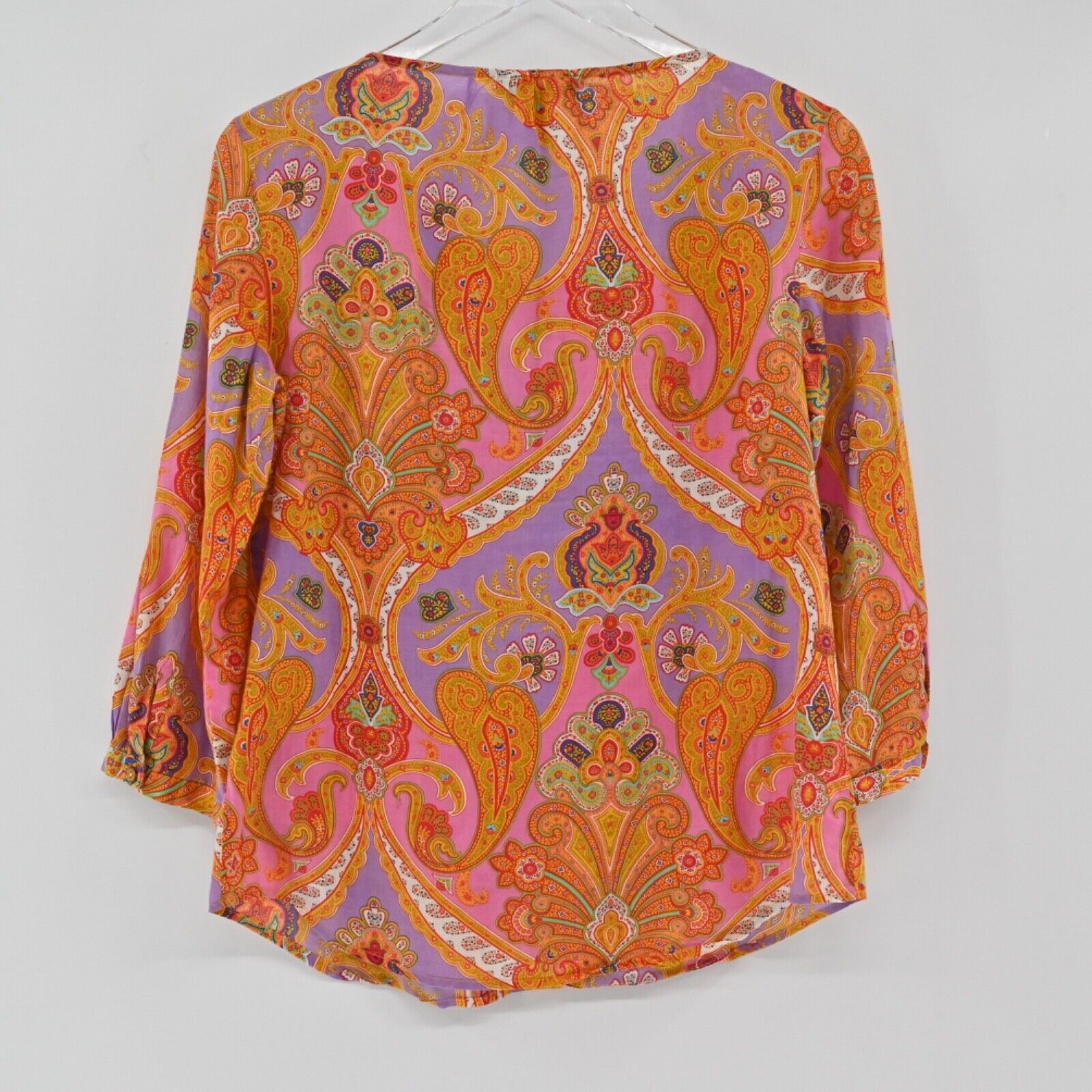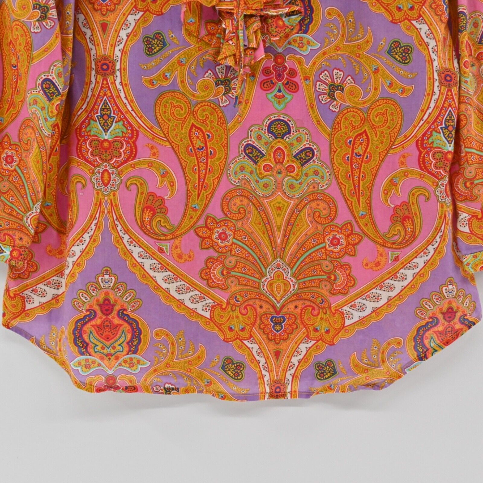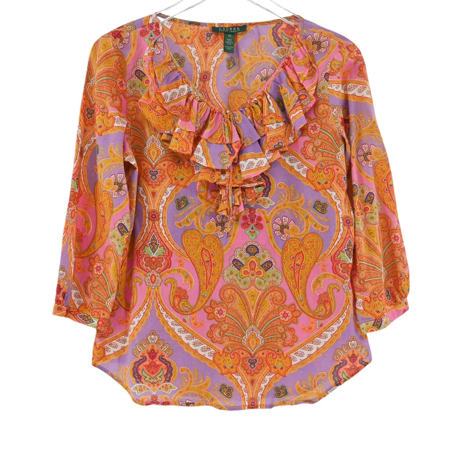 Vintage LAUREN RALPH LAUREN Top Women's Size XS Paisley 100% Cotton Ruffle Scoop Neck Tie Detail 3/4 Balloon Sleeve Button Cuffs Peasant Bohemian Boho 00’s Y2K Early 2000’s Retro