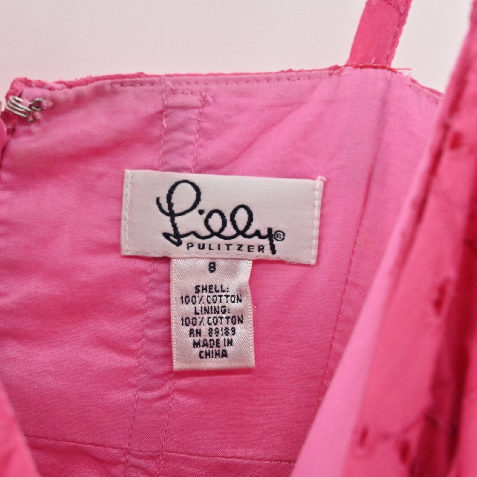 Vtg Lilly Pulitzer Pink Eyelet Dress Size 8 Sundress Summer Cotton White Label