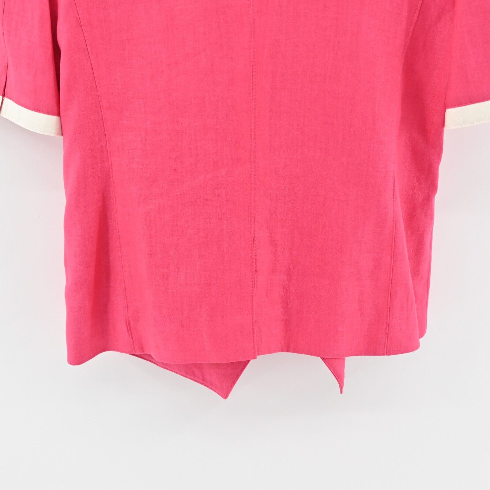 Vtg LOUIS FERAUD Blazer Womens Size 8 Pink White Trim Linen Short Sleeve Jacket
