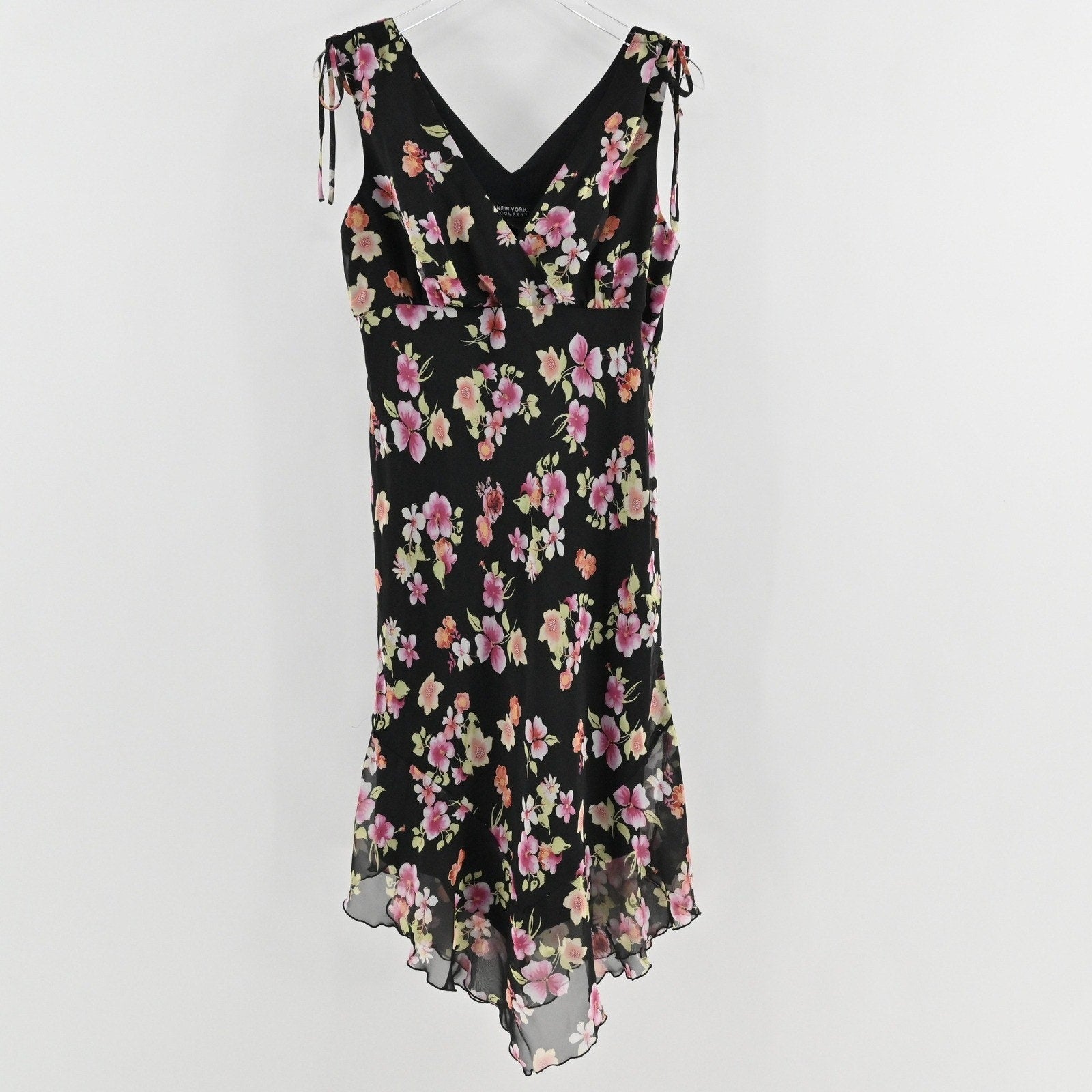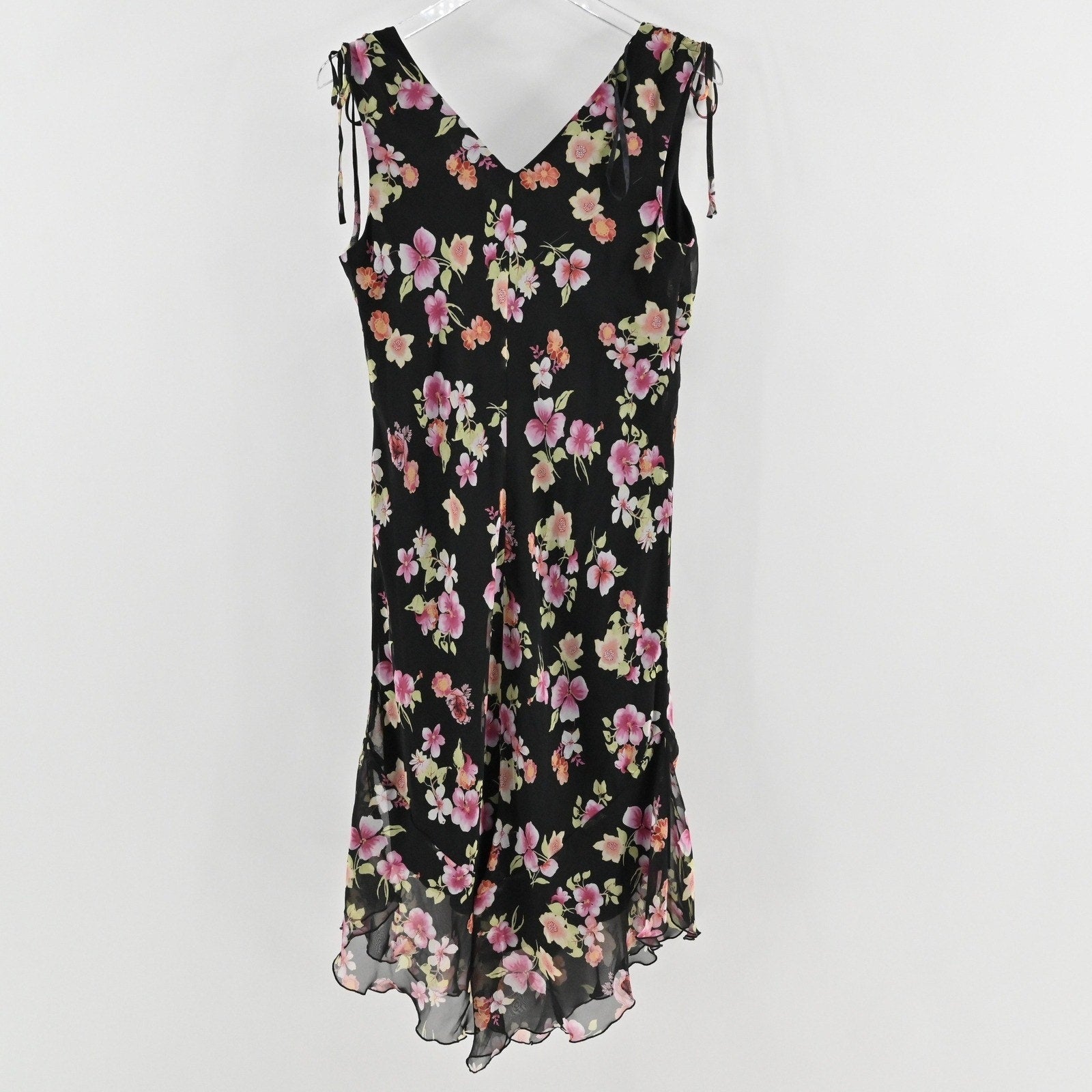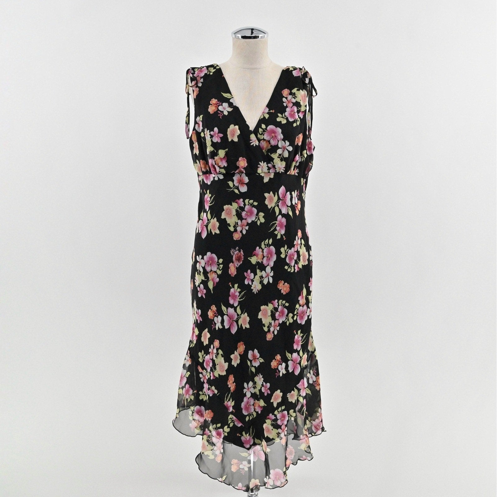 Vtg New York & Co Floral Midi Dress Size 14 Whimsigoth Fairygrunge Dark Romantic