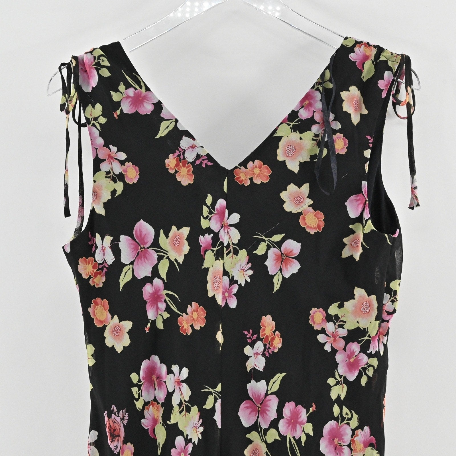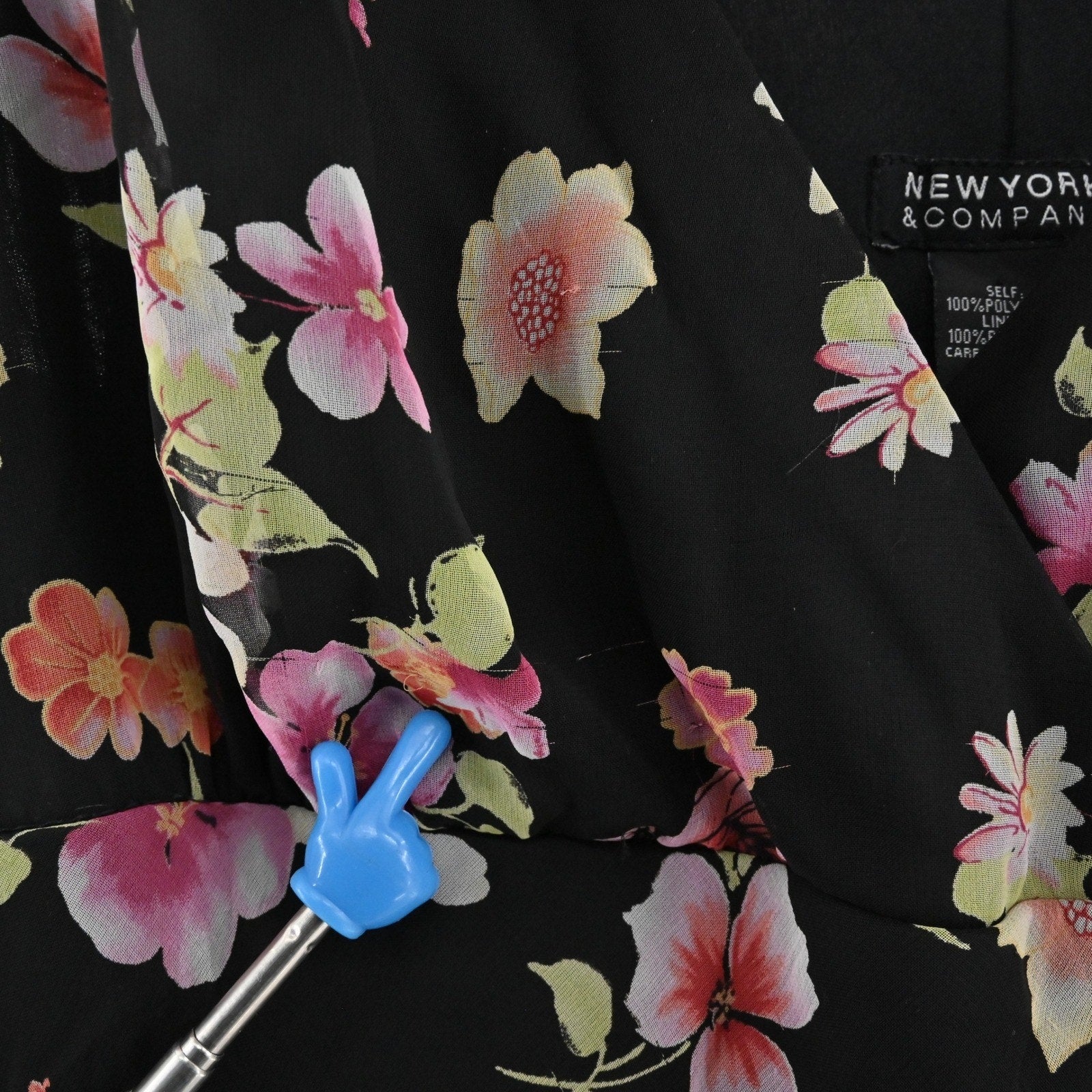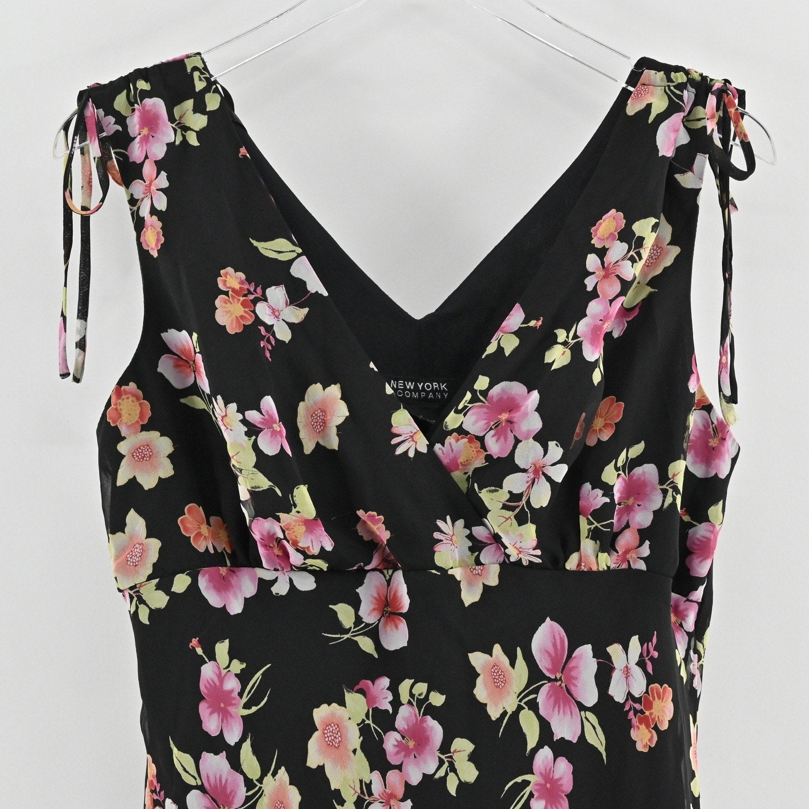 Vtg New York & Co Floral Midi Dress Size 14 Whimsigoth Fairygrunge Dark Romantic