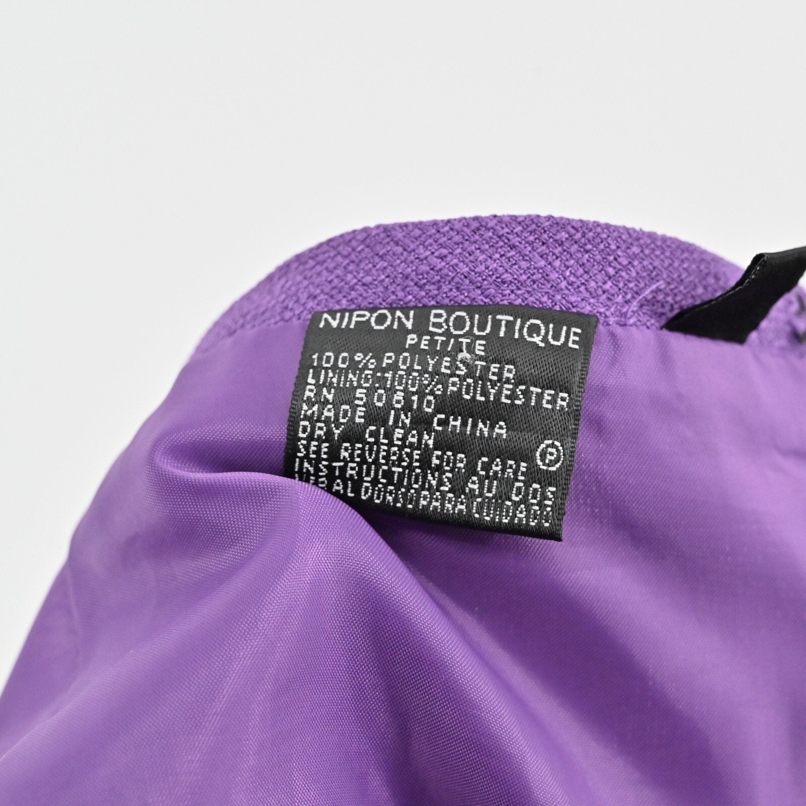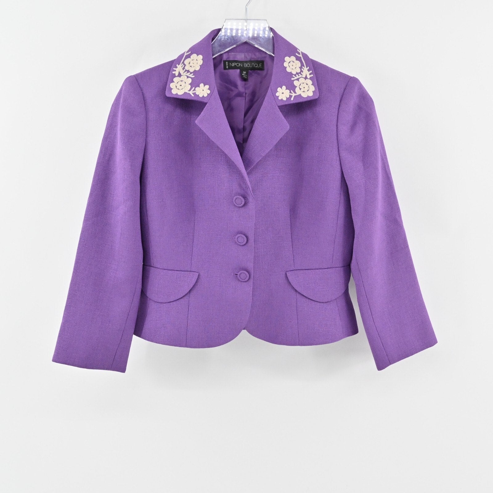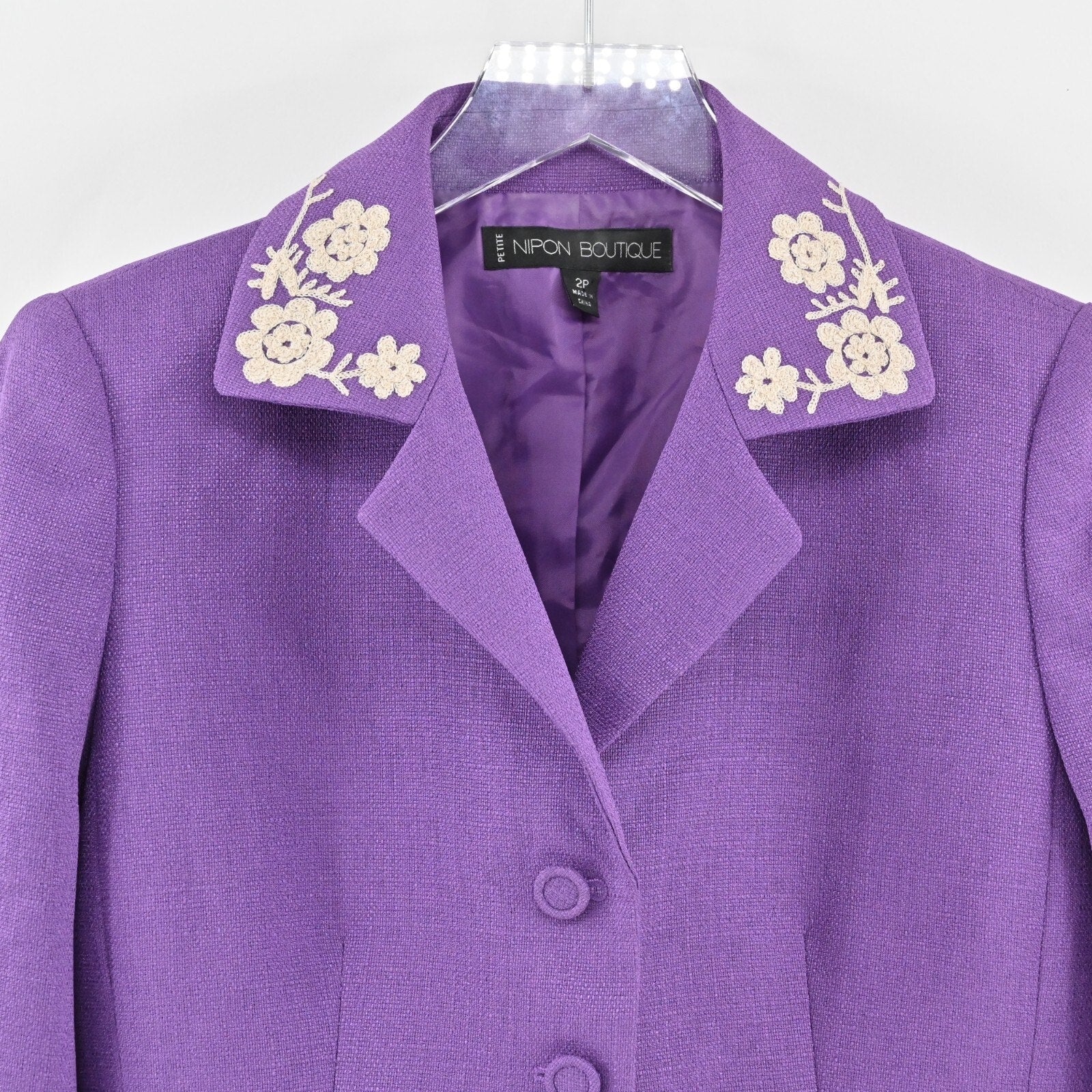 Vtg NIPON BOUTIQUE Skirt Suit Set Sz 2P Purple Floral Embroidered Art Statement