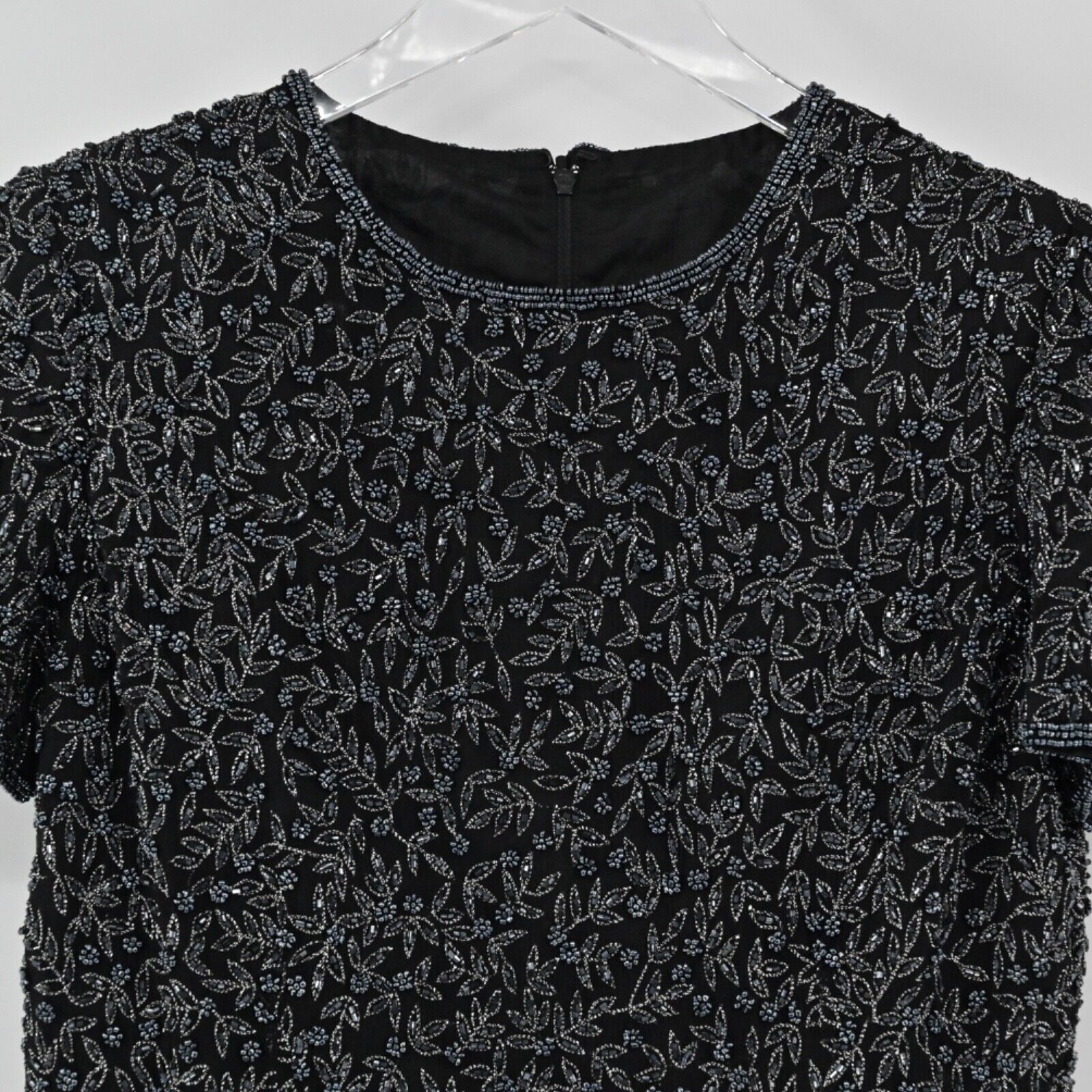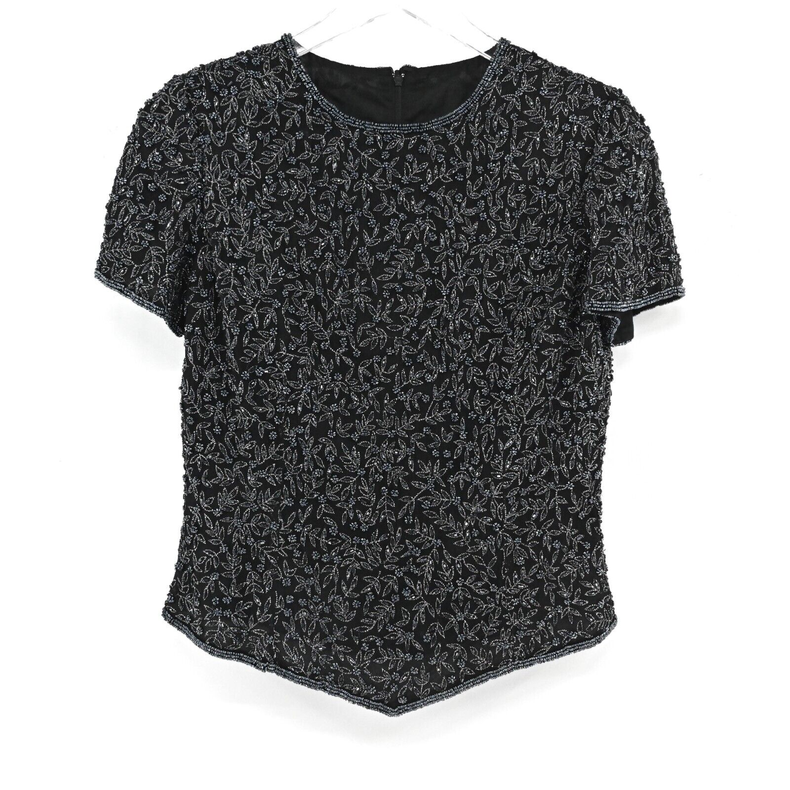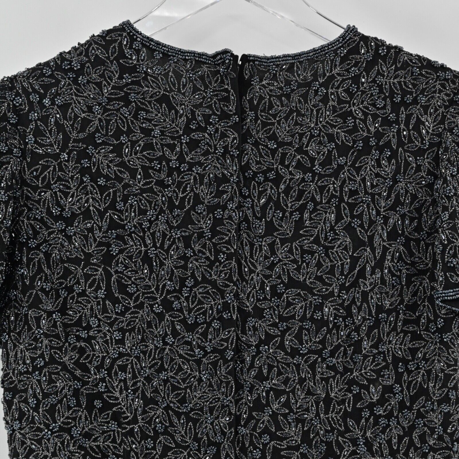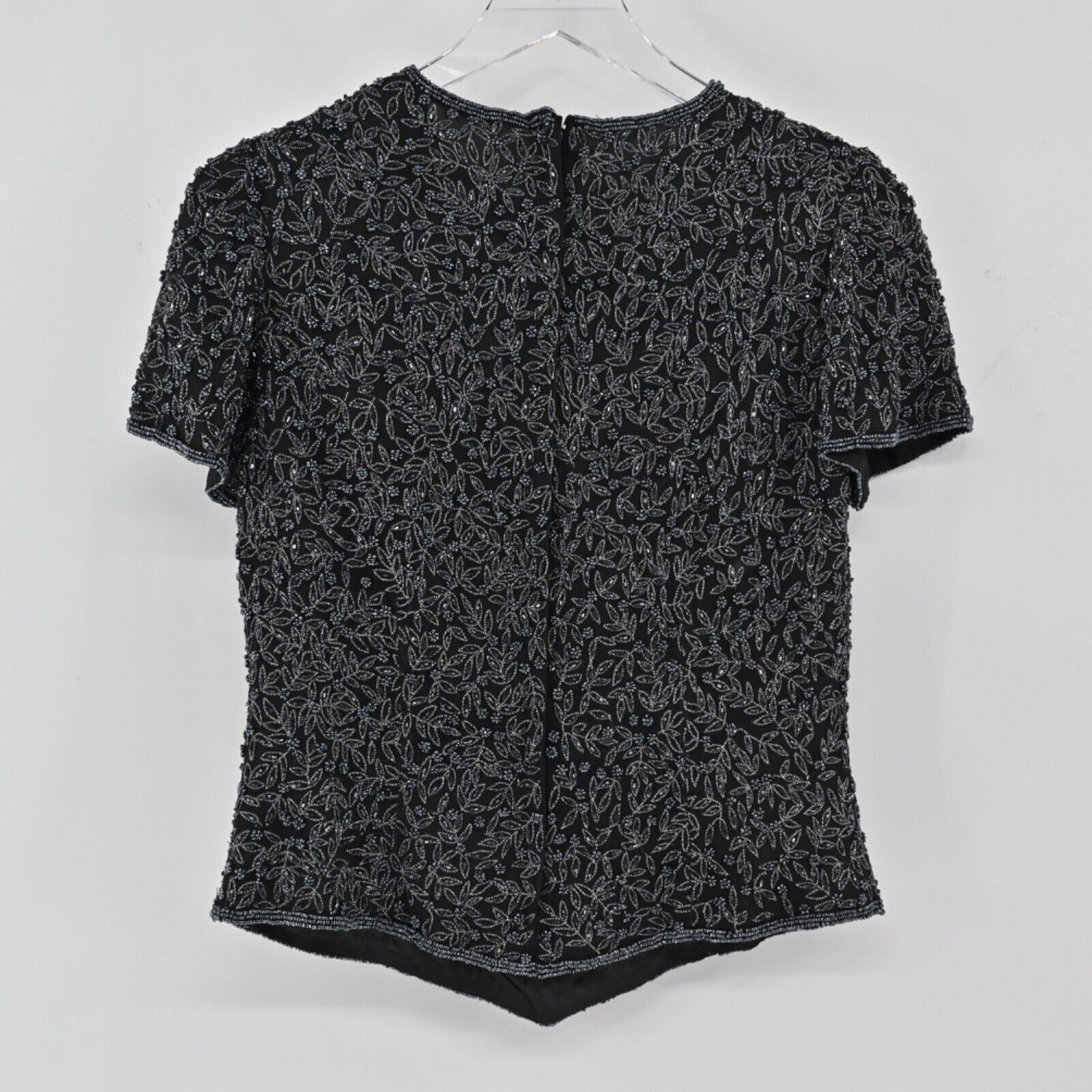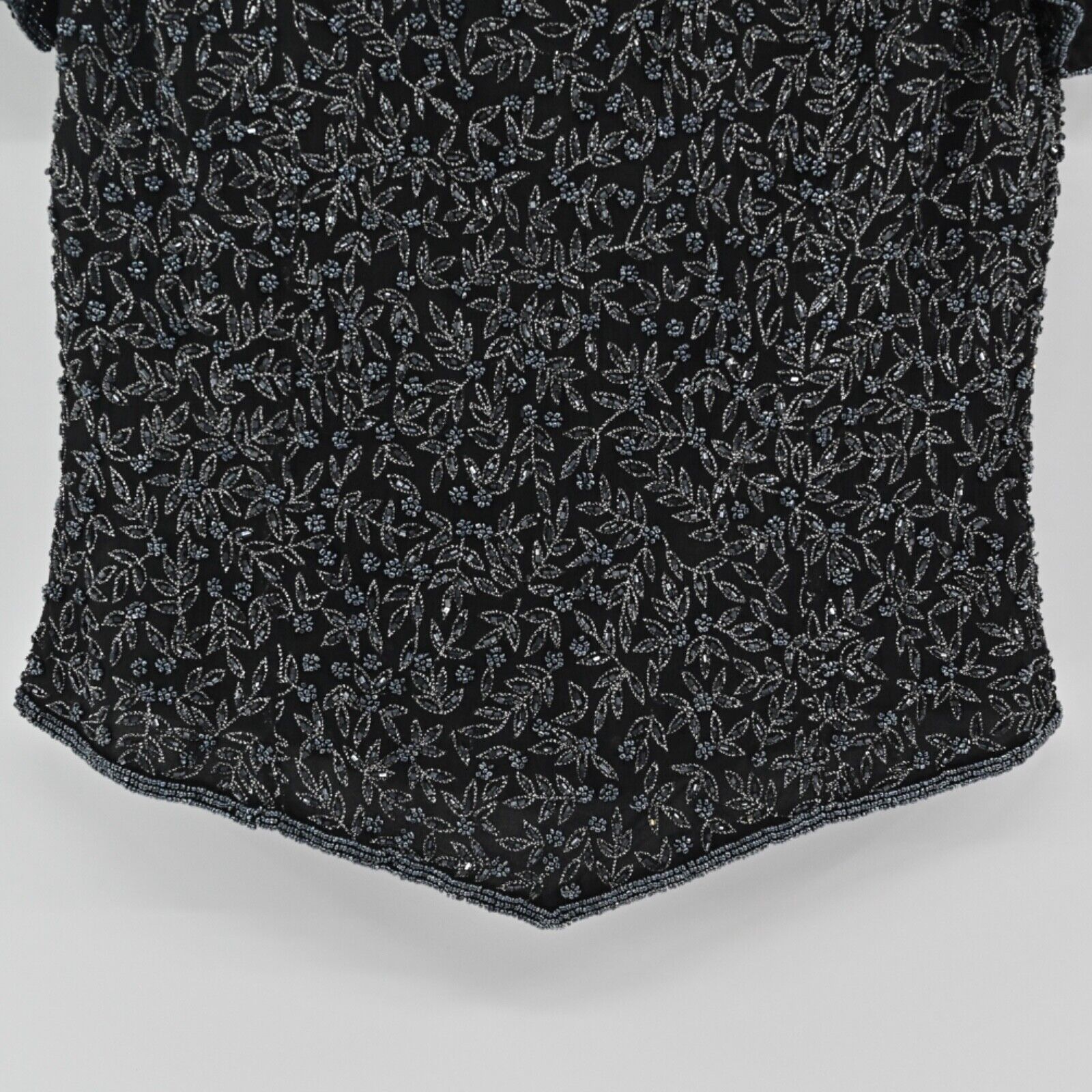 Vintage PAPELL BOUTIQUE EVENING Beaded Top Women's Size Medium Black Floral 100% Silk 80’s 1980’s Retro Glam Whimsigoth Holiday Cocktail Party