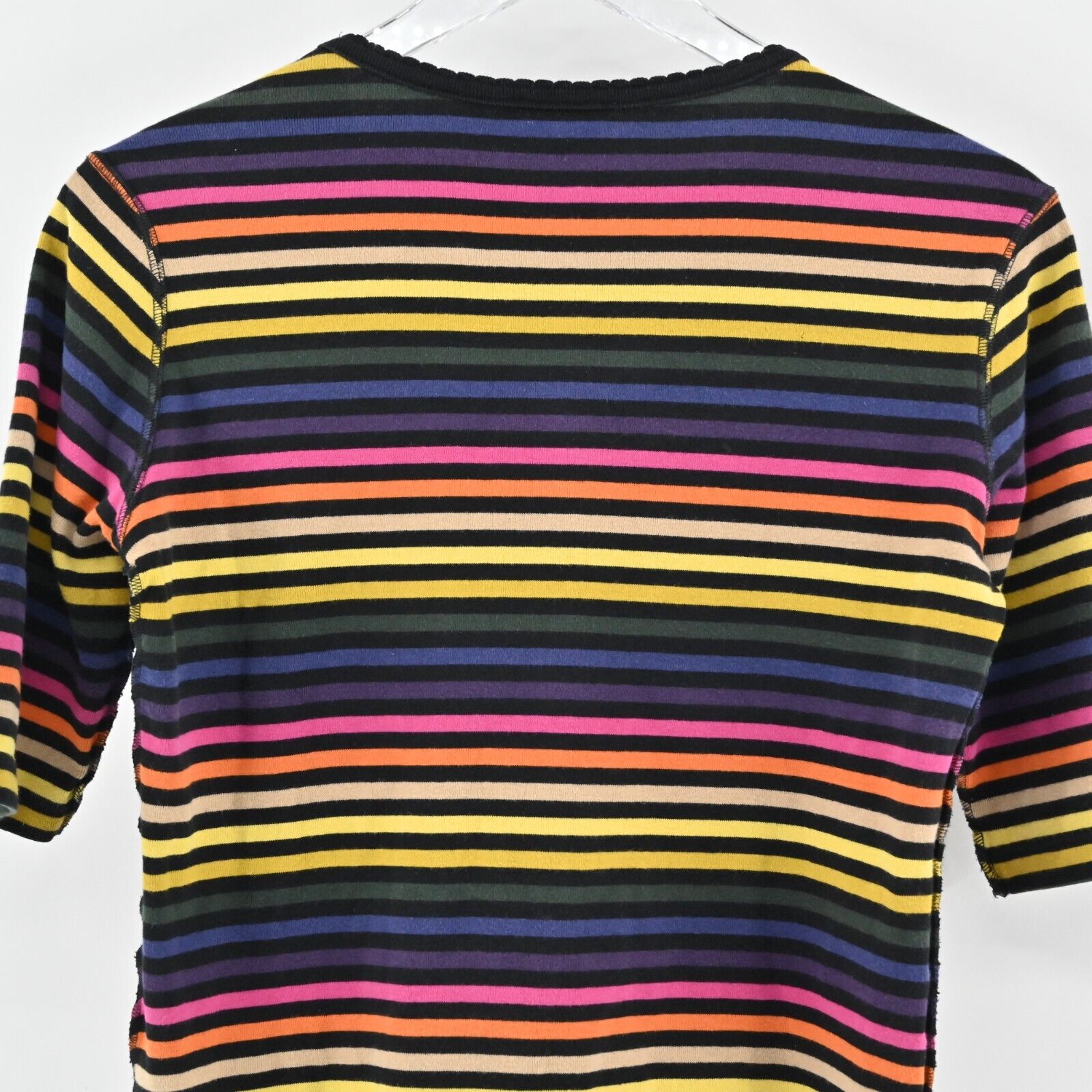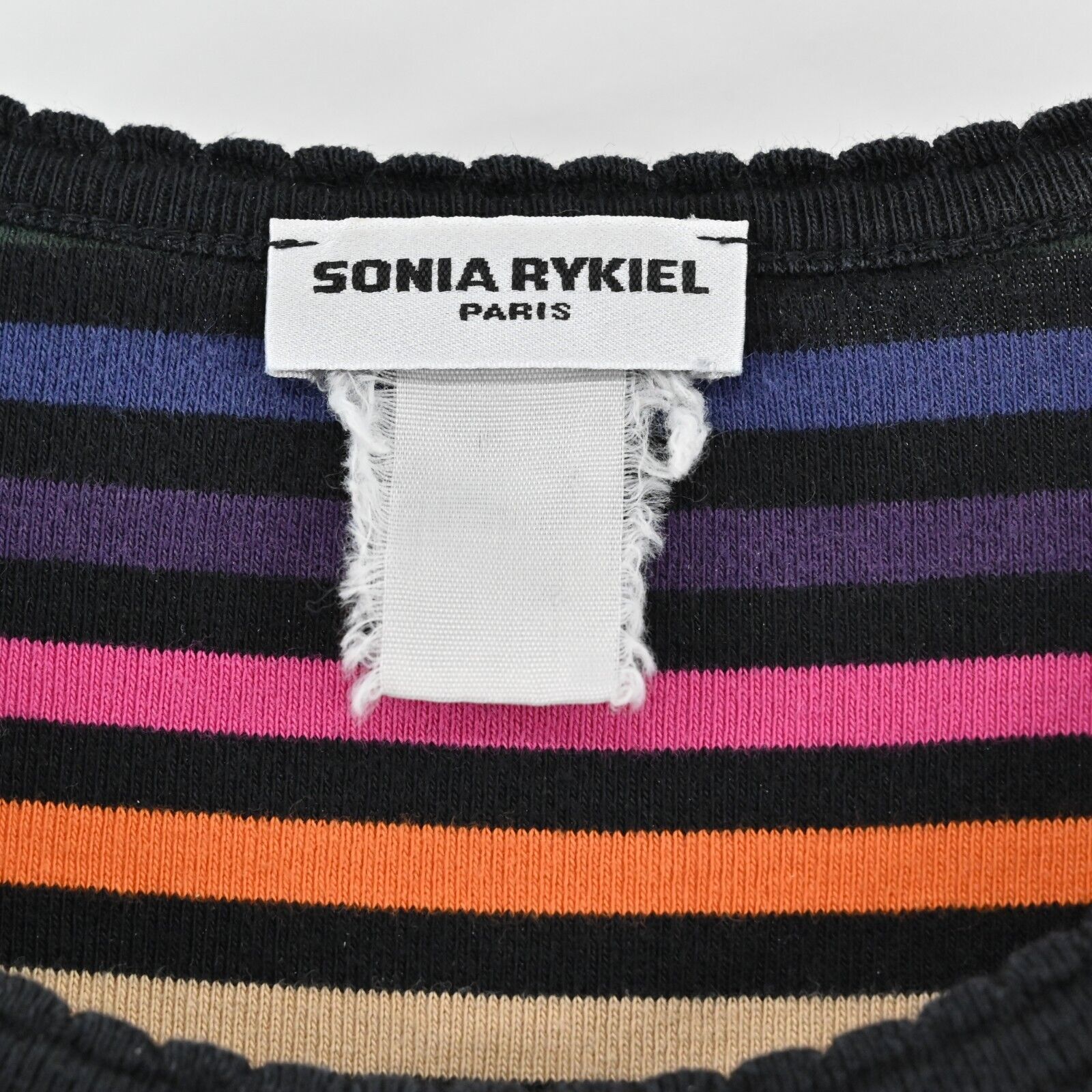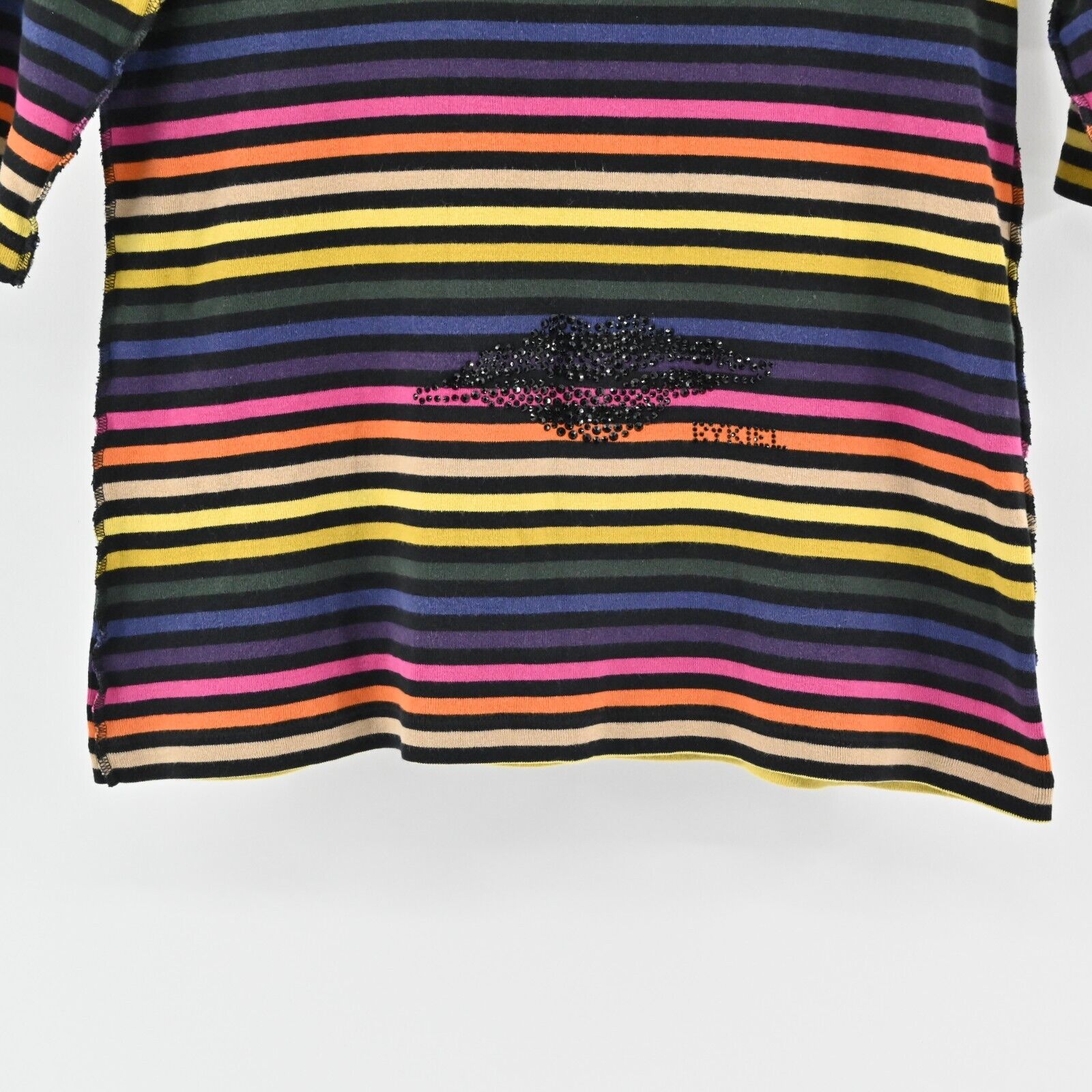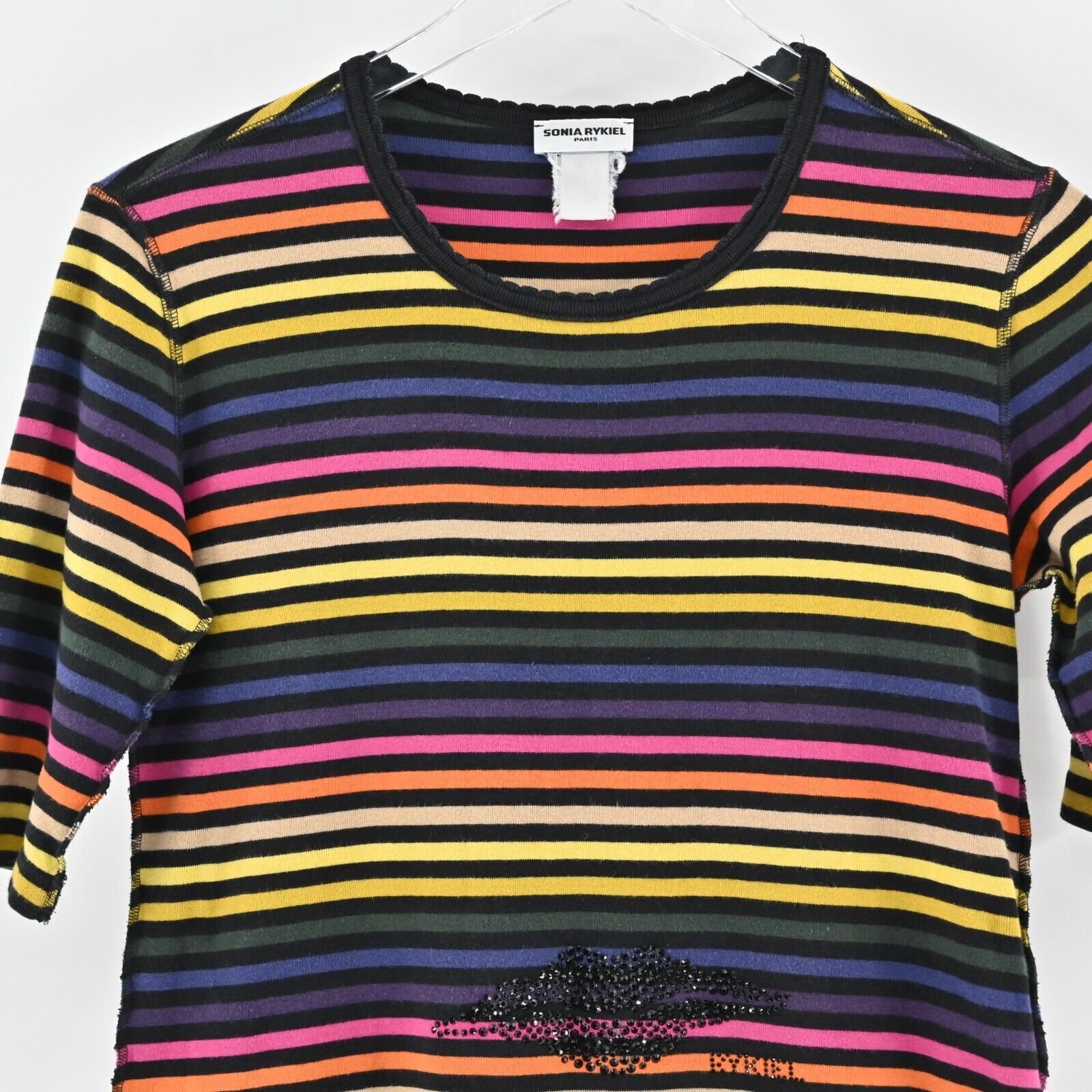 Vtg SONIA RYKIEL Top Womens Size L Multicolor Stripe Black Rhinestone Lips Logo